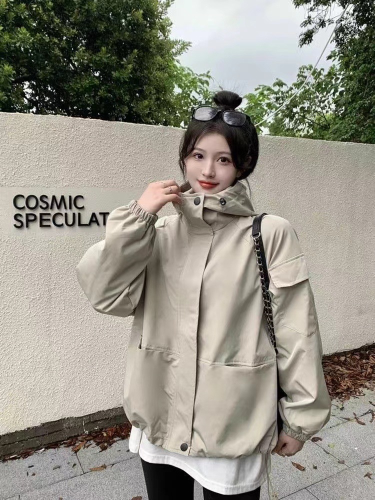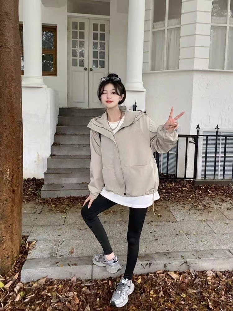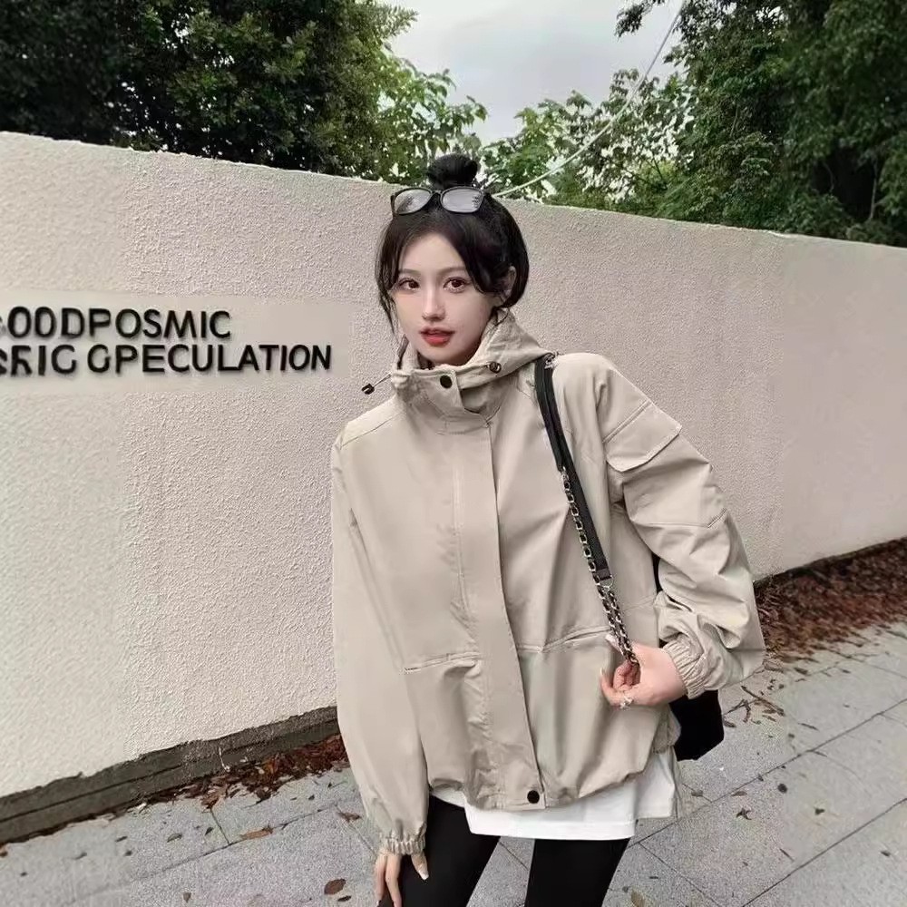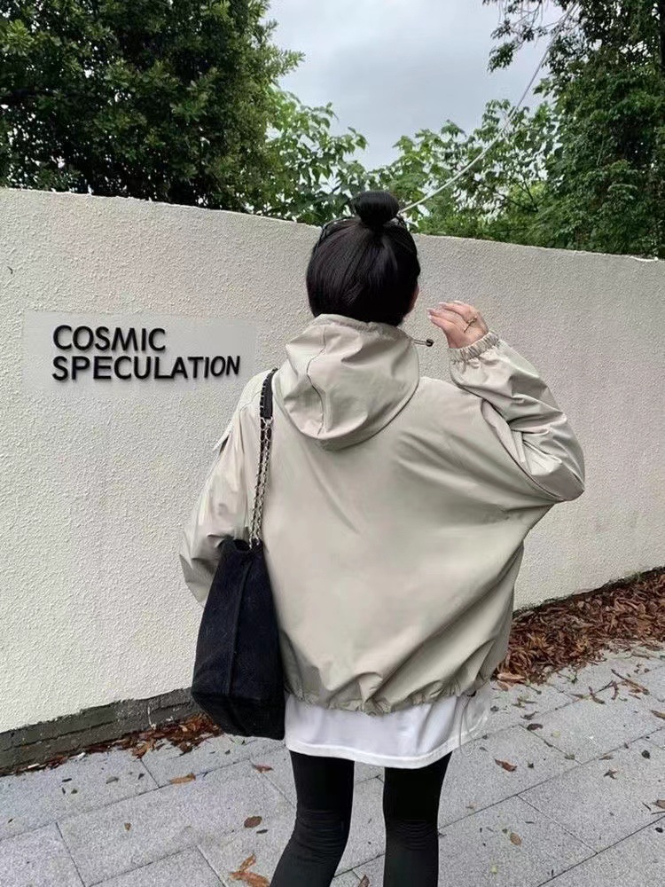 미국 스타일 후드 러쉬 재킷 여성의 봄과 가을 2024 새로운 느슨한 디자인 감각 드로우 스트링 긴 소매 재킷 탑스토어 가기