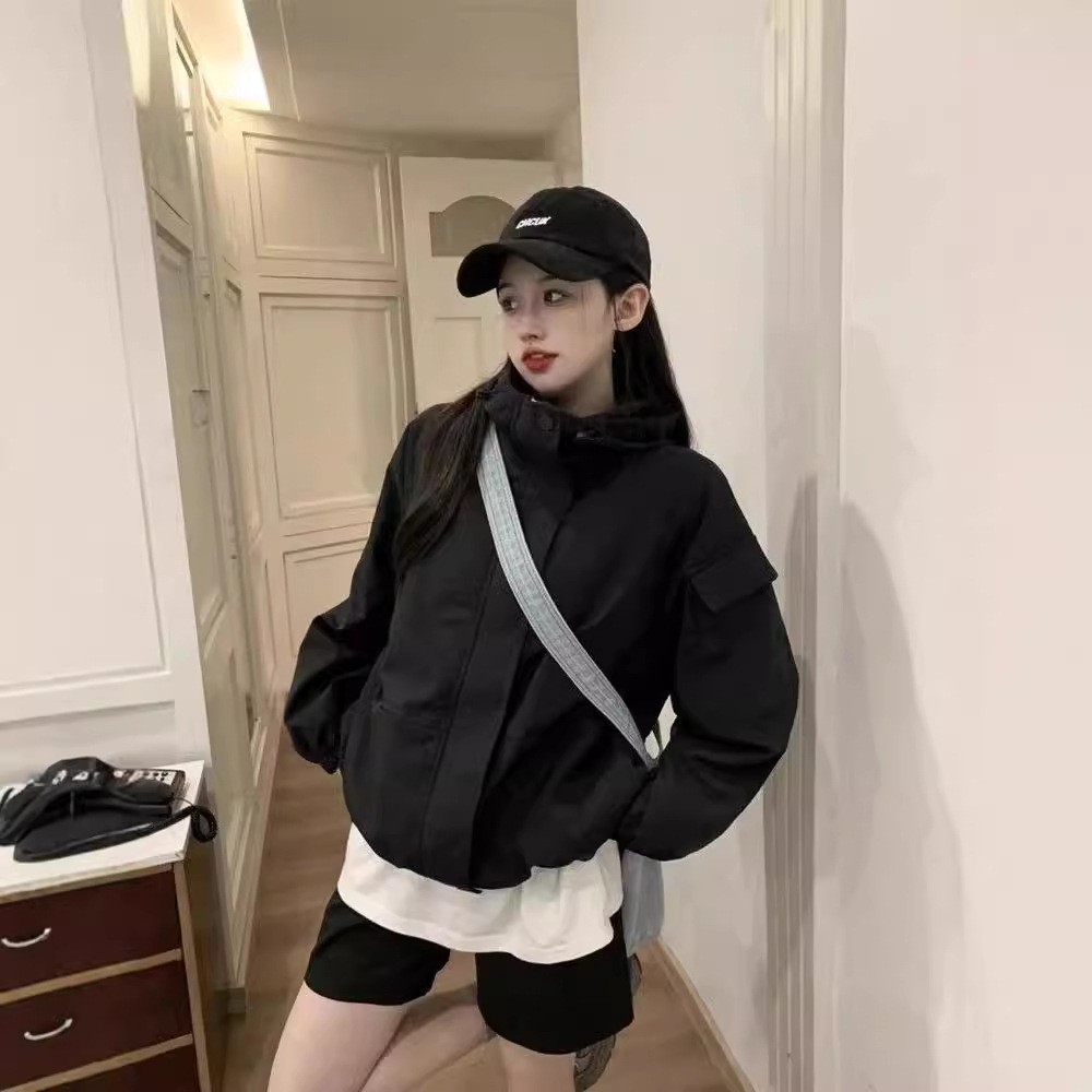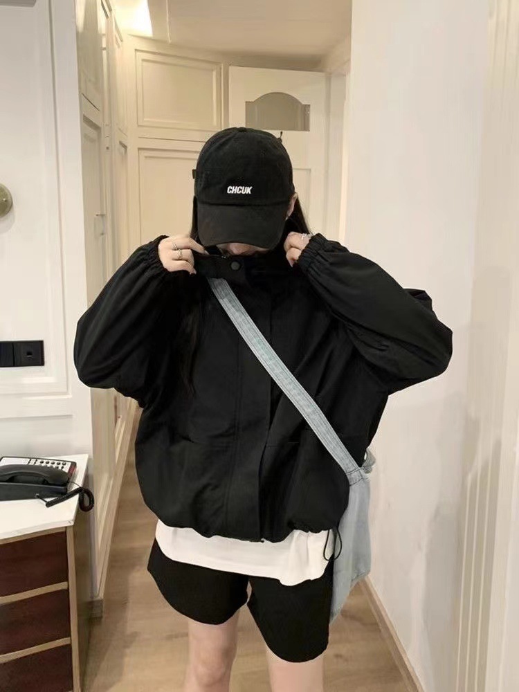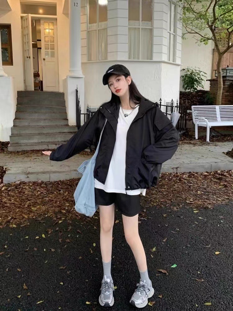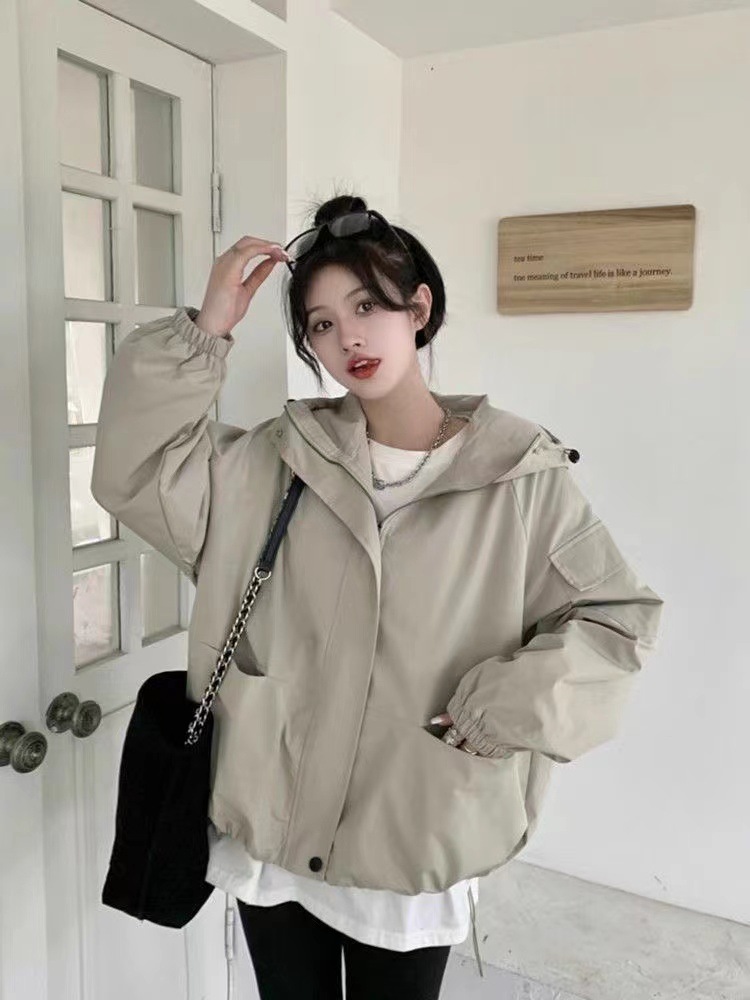 미국 스타일 후드 러쉬 재킷 여성의 봄과 가을 2024 새로운 느슨한 디자인 감각 드로우 스트링 긴 소매 재킷 탑스토어 가기