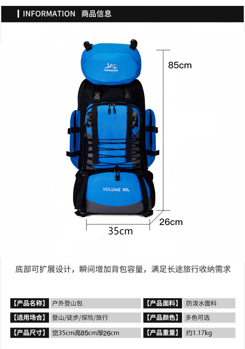 야외 여행 배낭 대용량 확장 가능한 크기 여행 배낭 남성과 여성 방수 수하물 하이킹 배낭스토어 가기