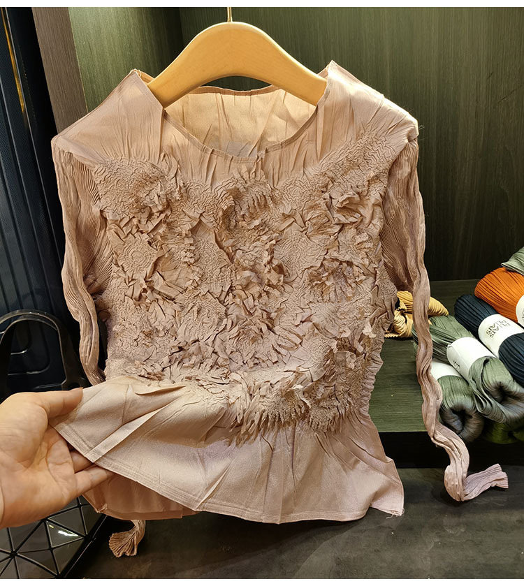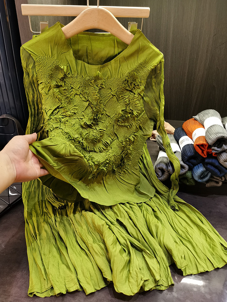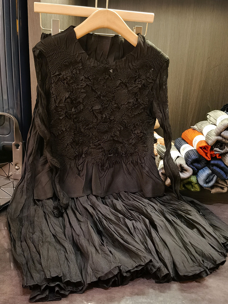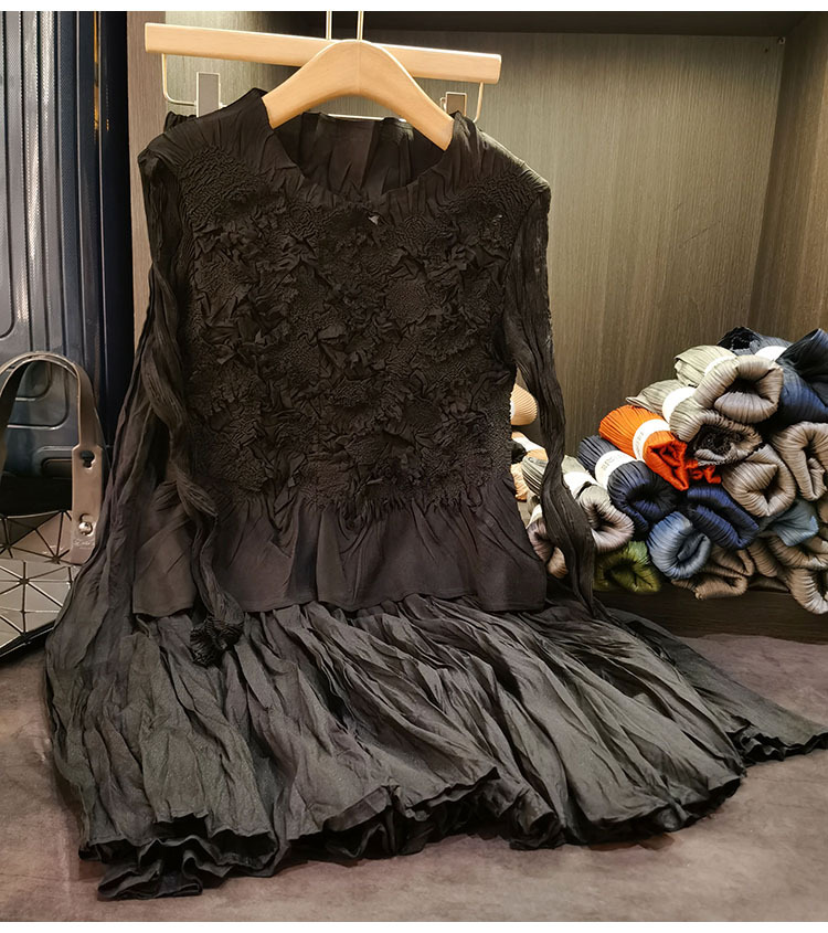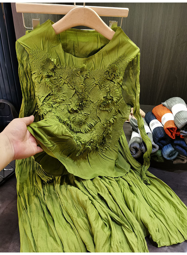 고급스러운 수제 플라워 플리츠 탑과 스커트 투피스 세트, 여성 가을 신상 패셔너블 슈트