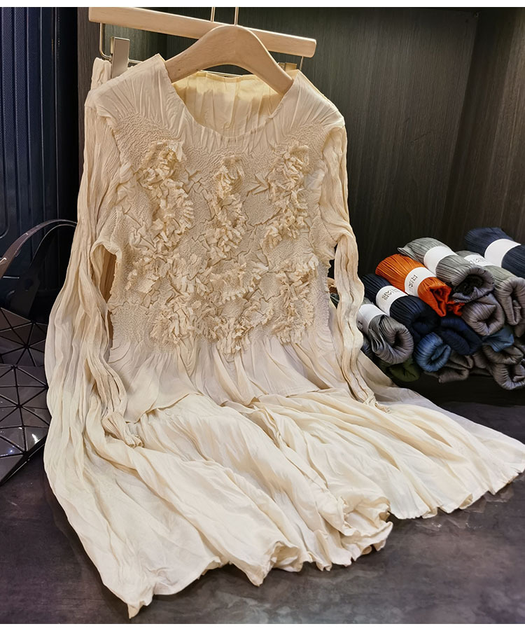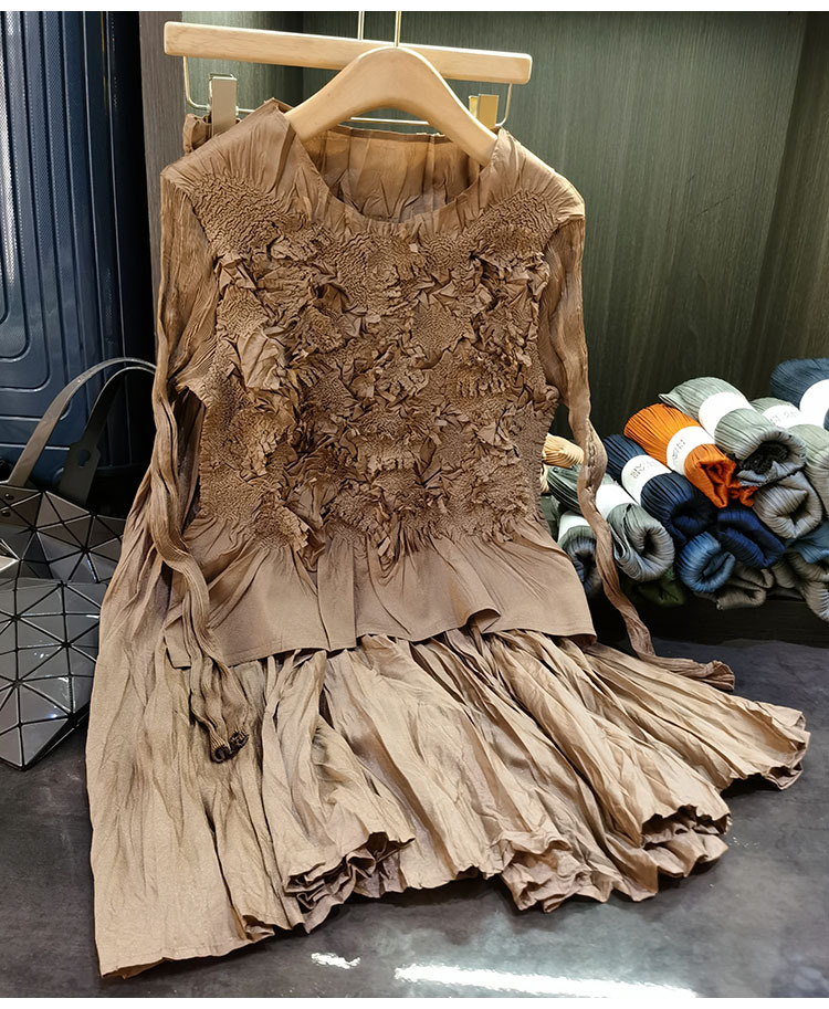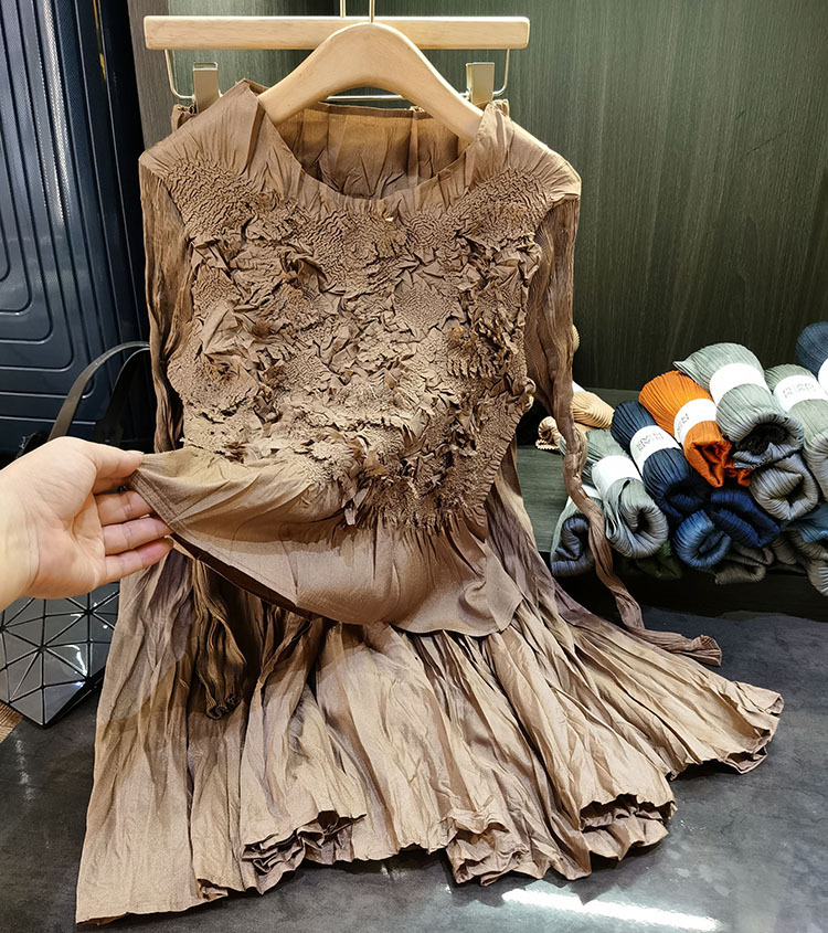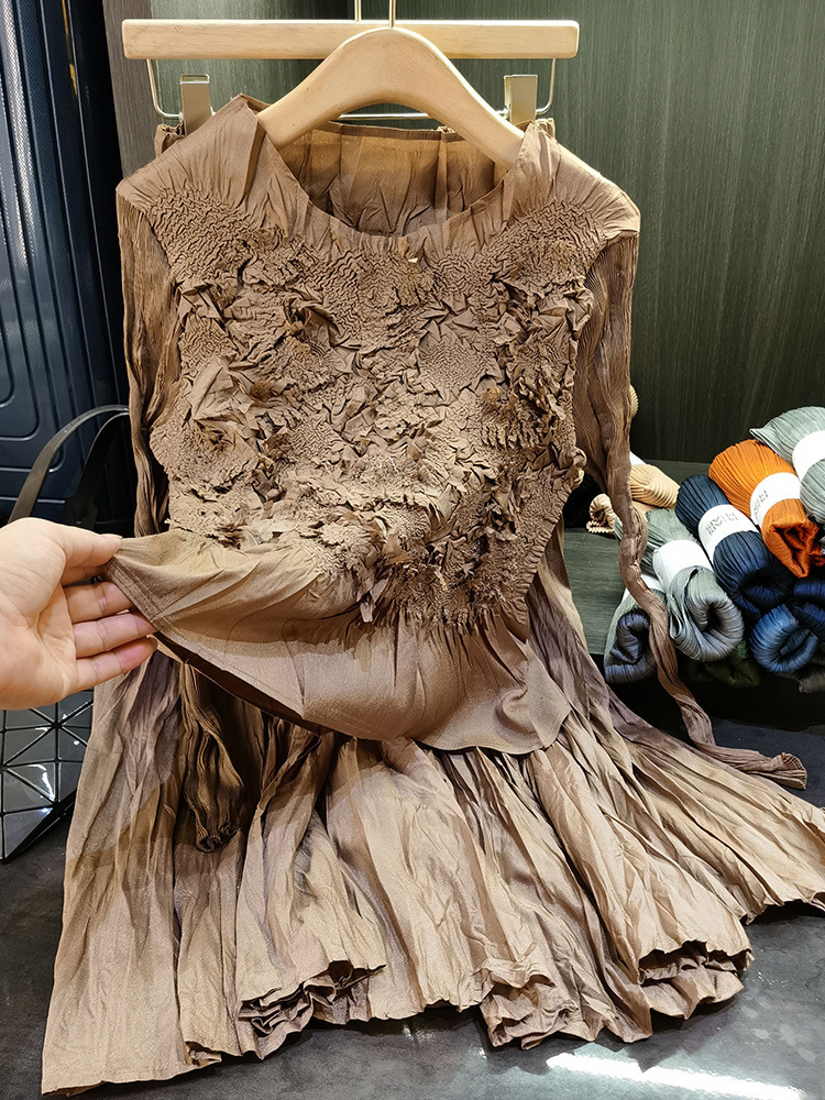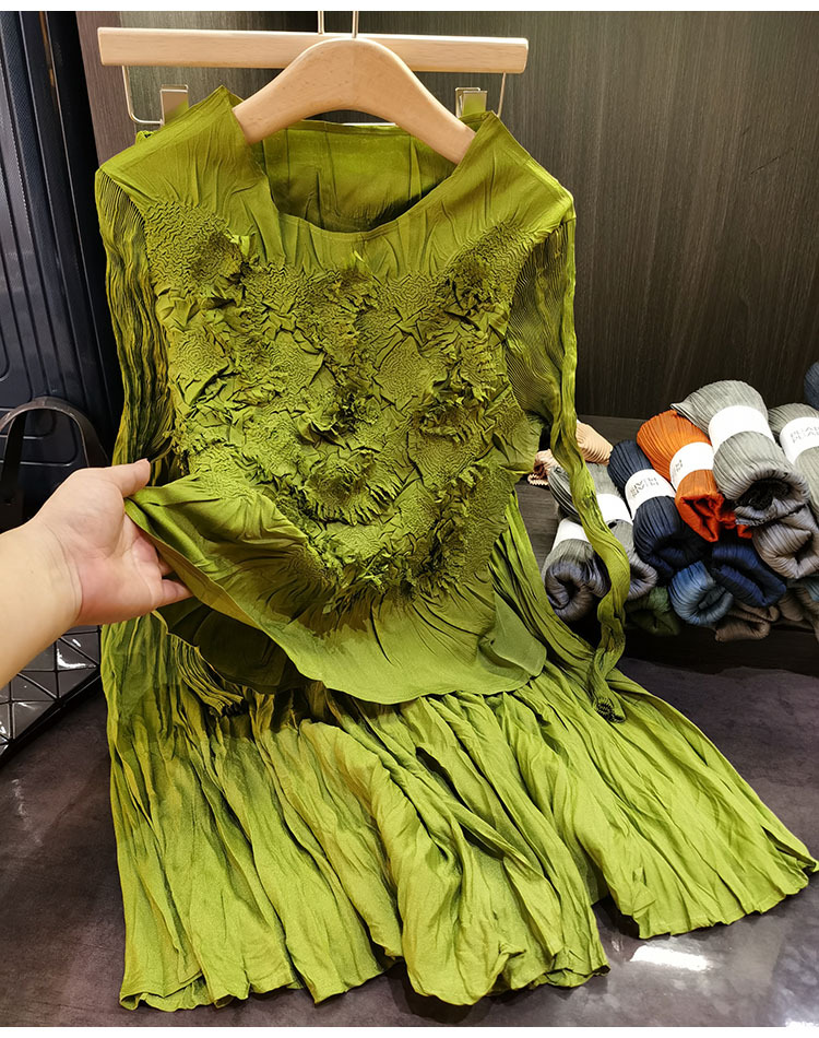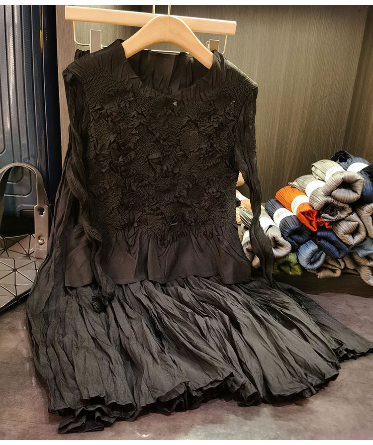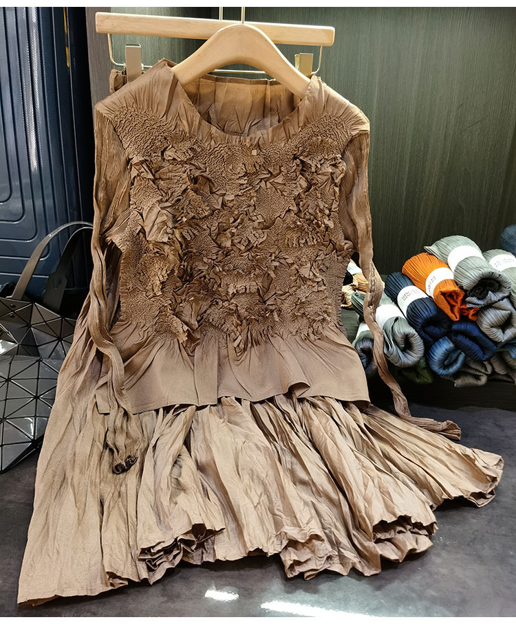 고급스러운 수제 플라워 플리츠 탑과 스커트 투피스 세트, 여성 가을 신상 패셔너블 슈트스토어 가기