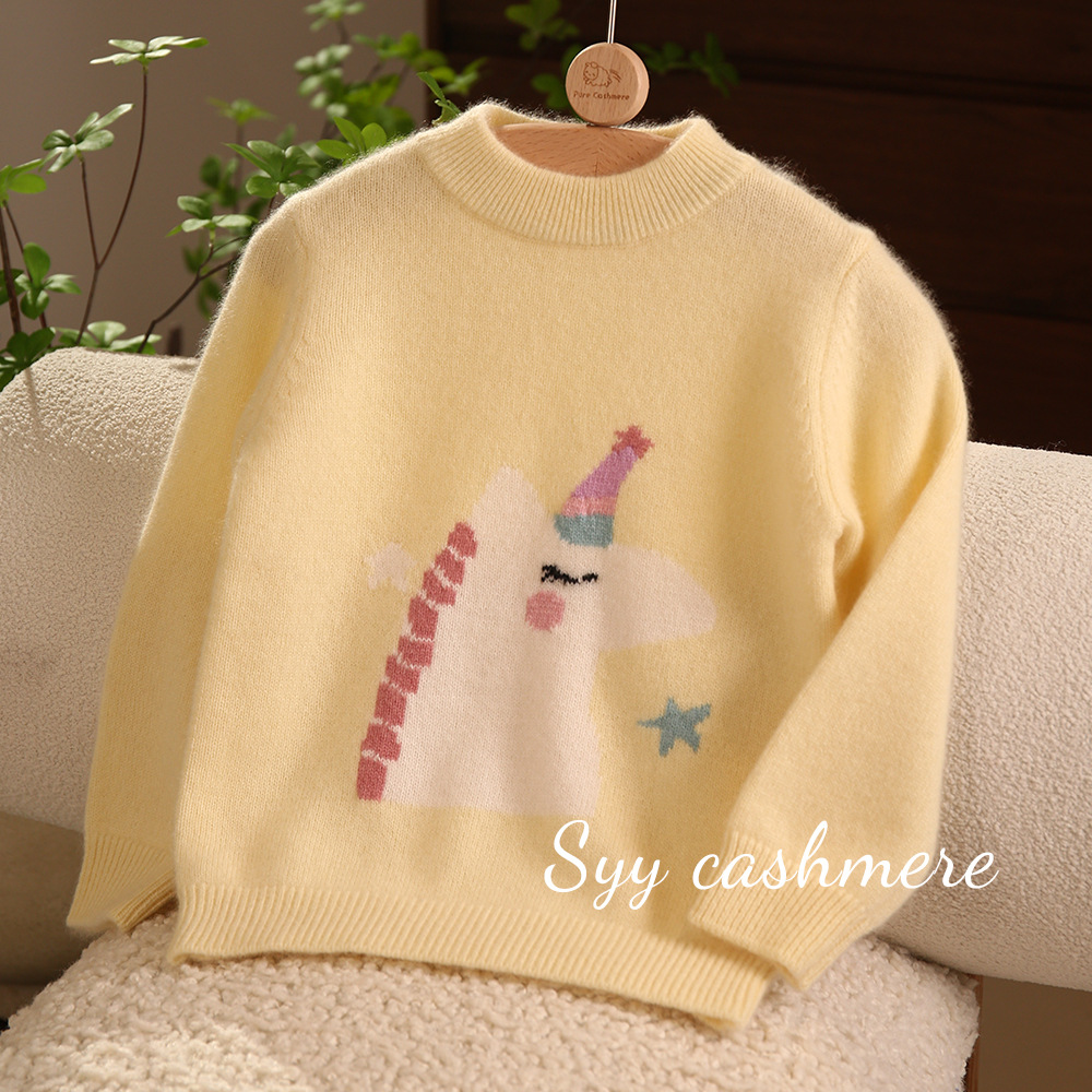 양과 양의 수 유니콘 만화 아기 두꺼운 따뜻한 스웨터 100 순수 캐시미어 소년과 소녀 바늘스토어 가기