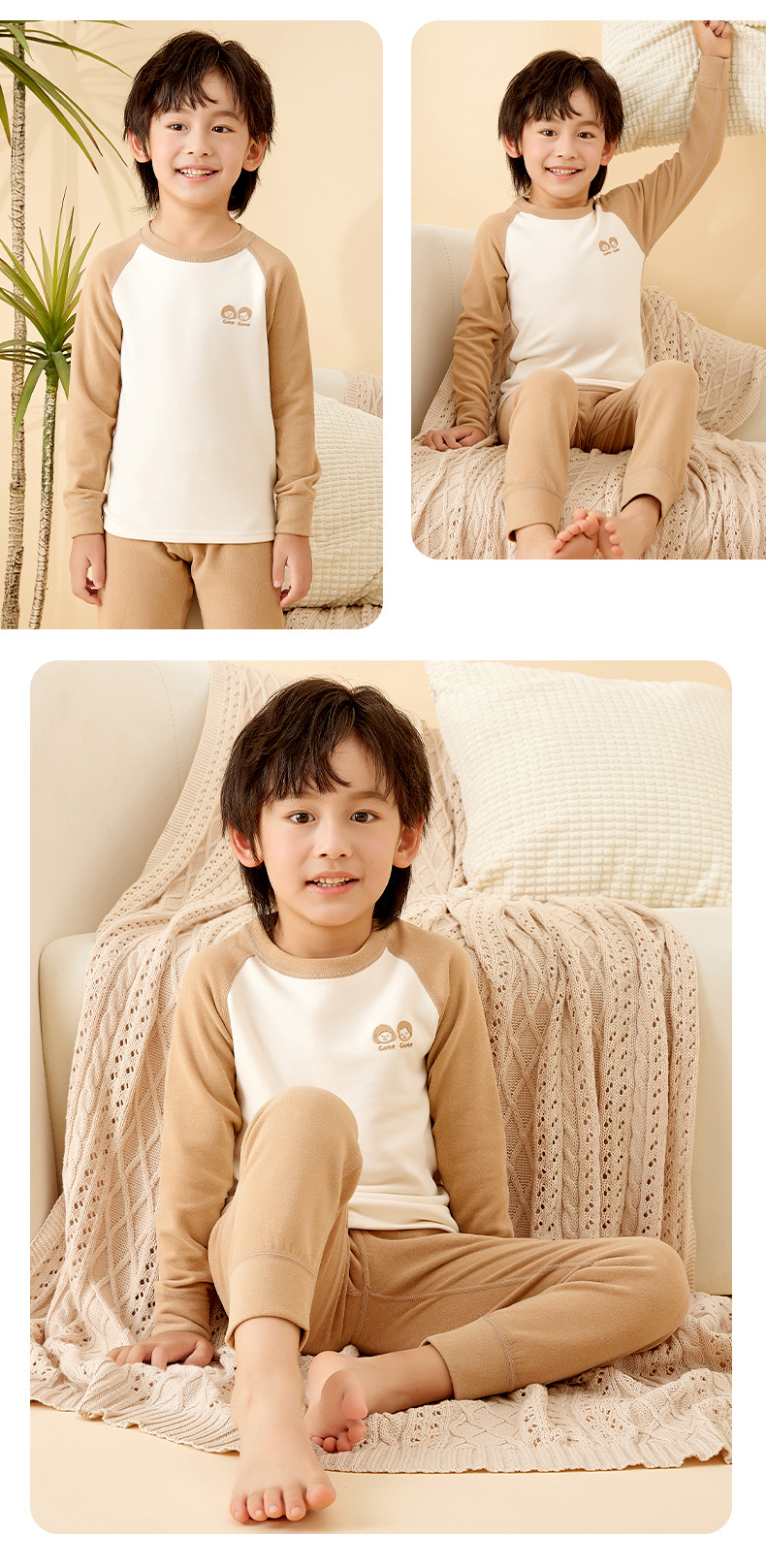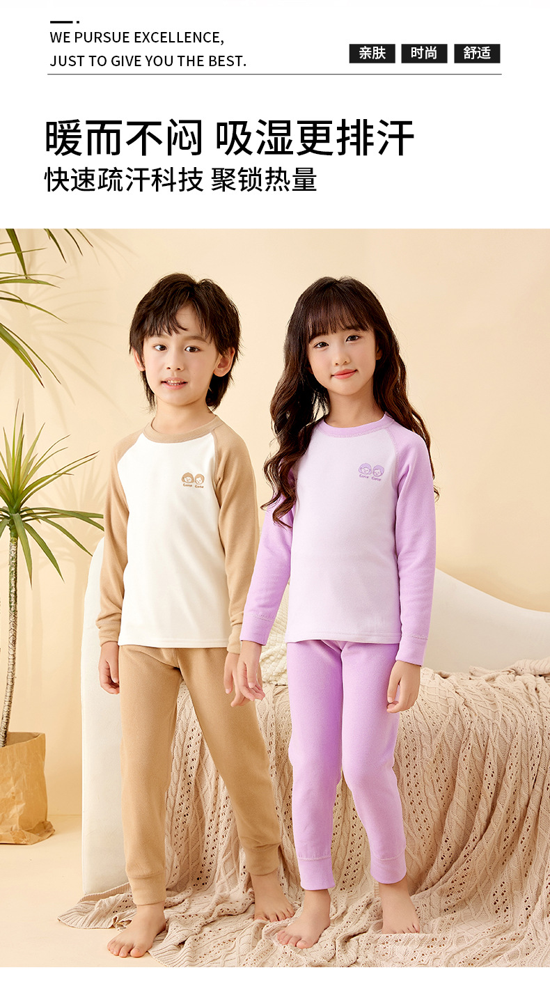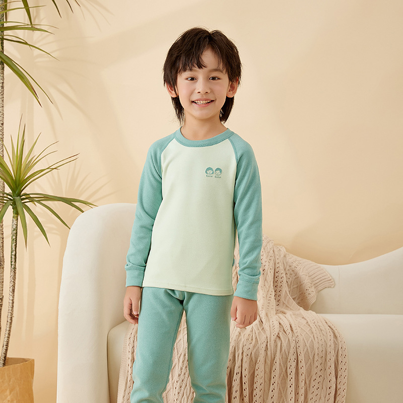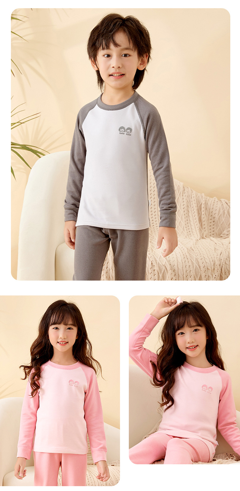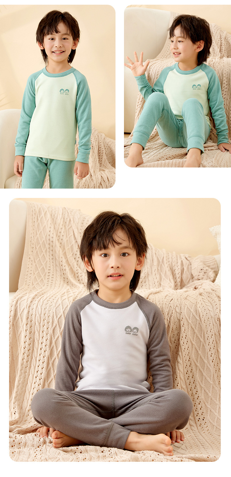영유아 따뜻한 잠옷, 뼈없는 아동용 잠옷, 가을 겨울 기본 레이어 A급 기모 중대형 아동용 보온 속옷 세트