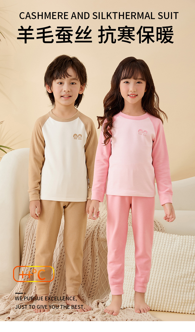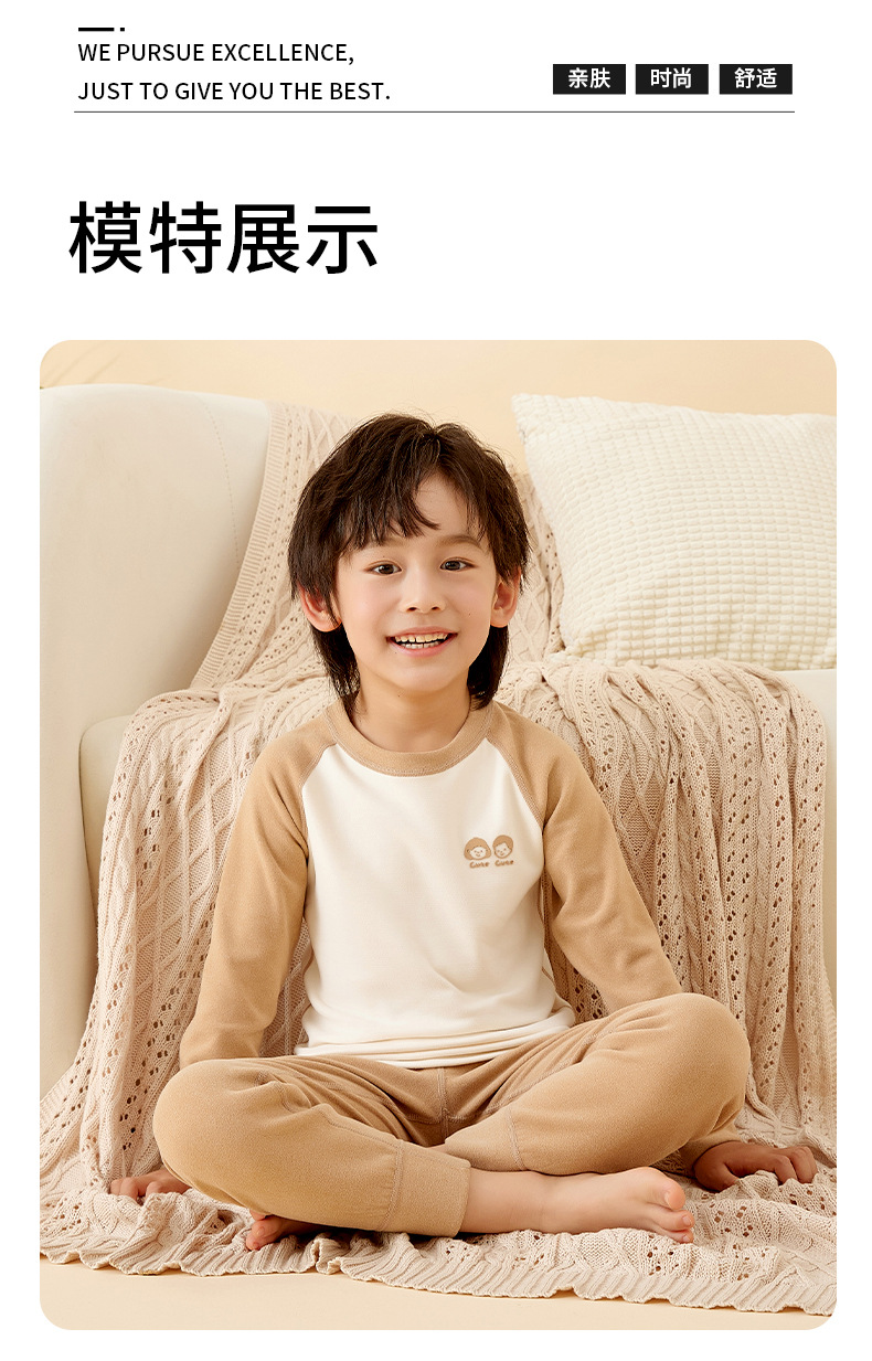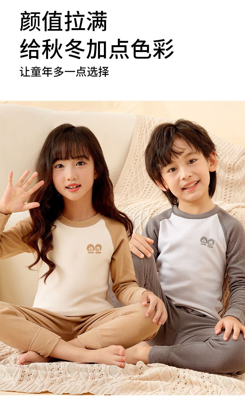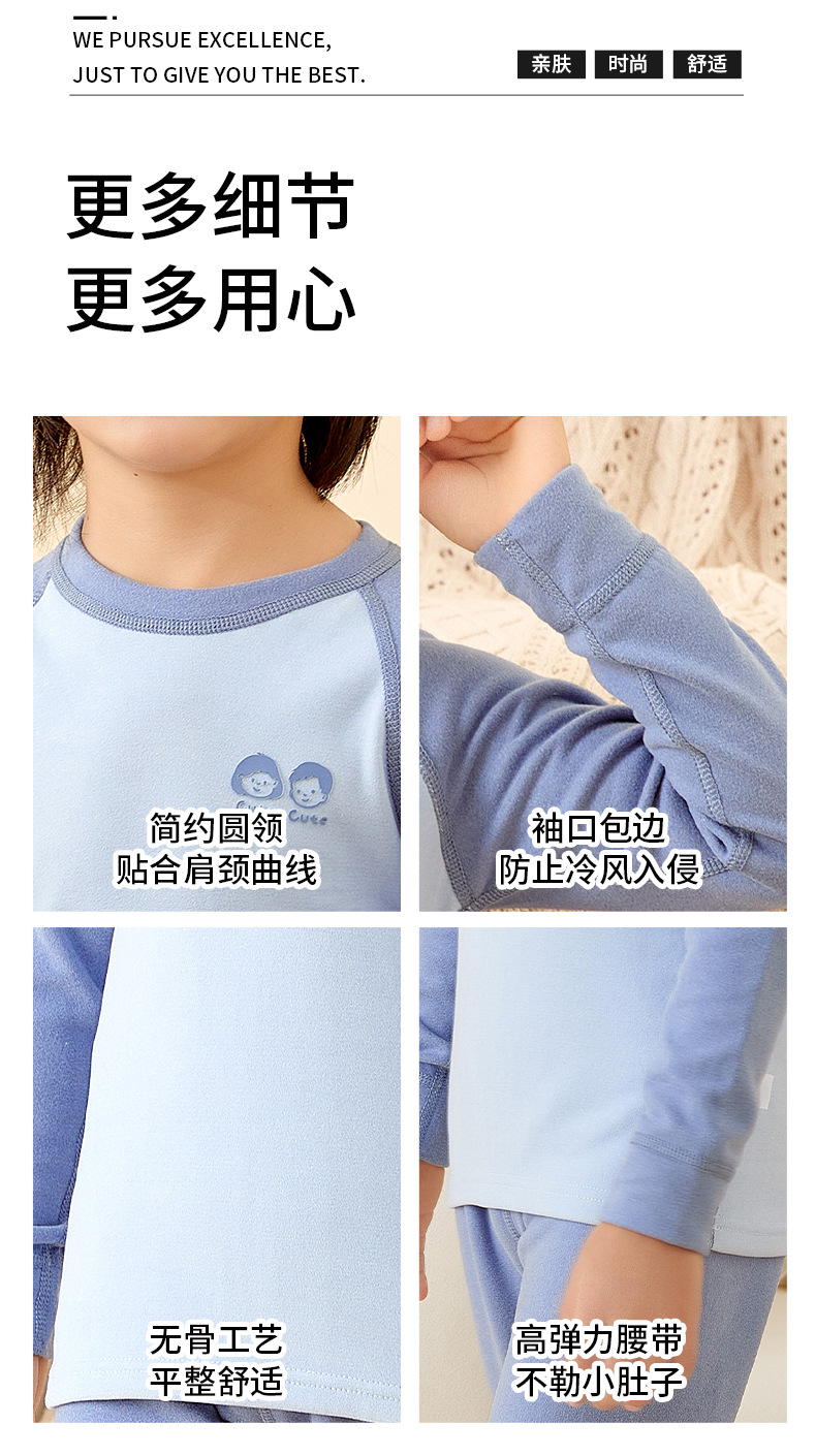 영유아 따뜻한 잠옷, 뼈없는 아동용 잠옷, 가을 겨울 기본 레이어 A급 기모 중대형 아동용 보온 속옷 세트