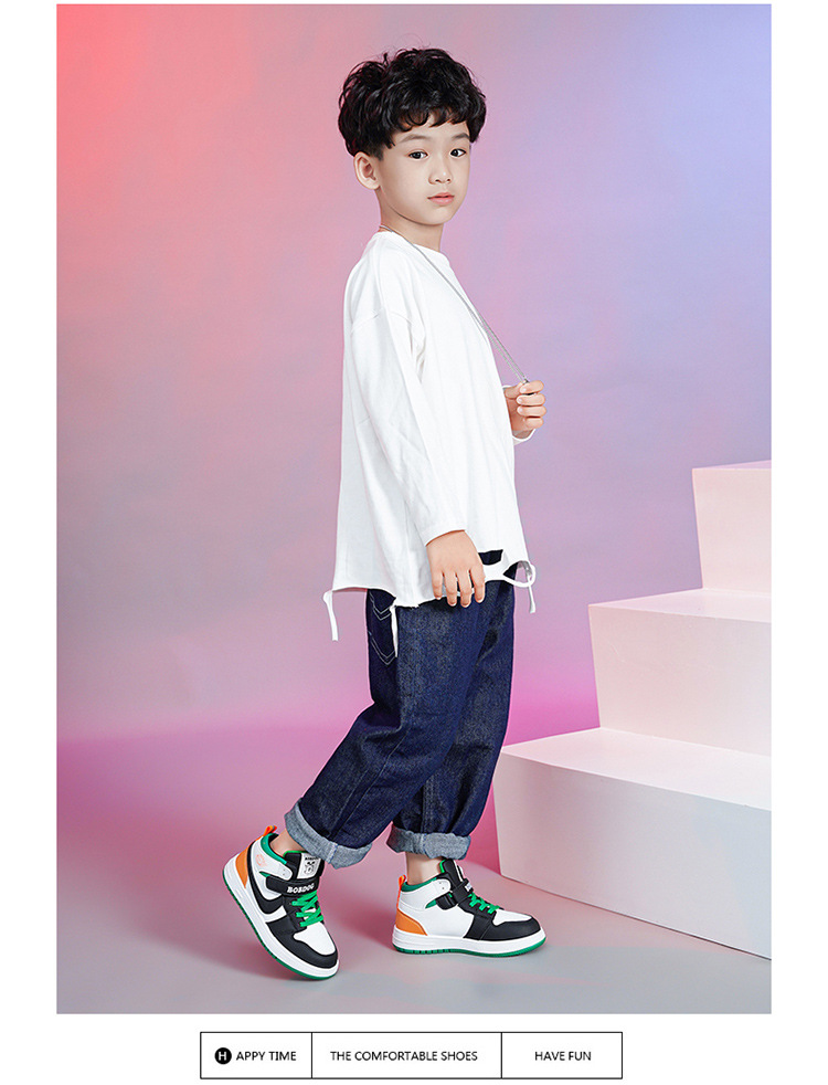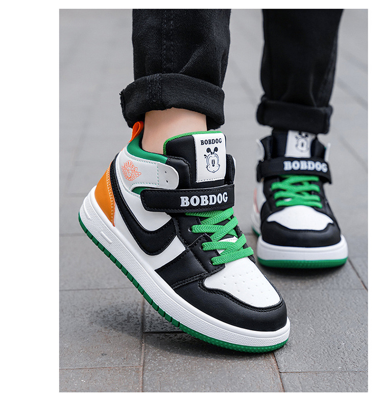 바부 콩 어린이 신발 소년 신발 가을 새 가죽 방수 하이 탑 스니커를위한 큰 어린이와 소녀 운동화 트렌디스토어 가기