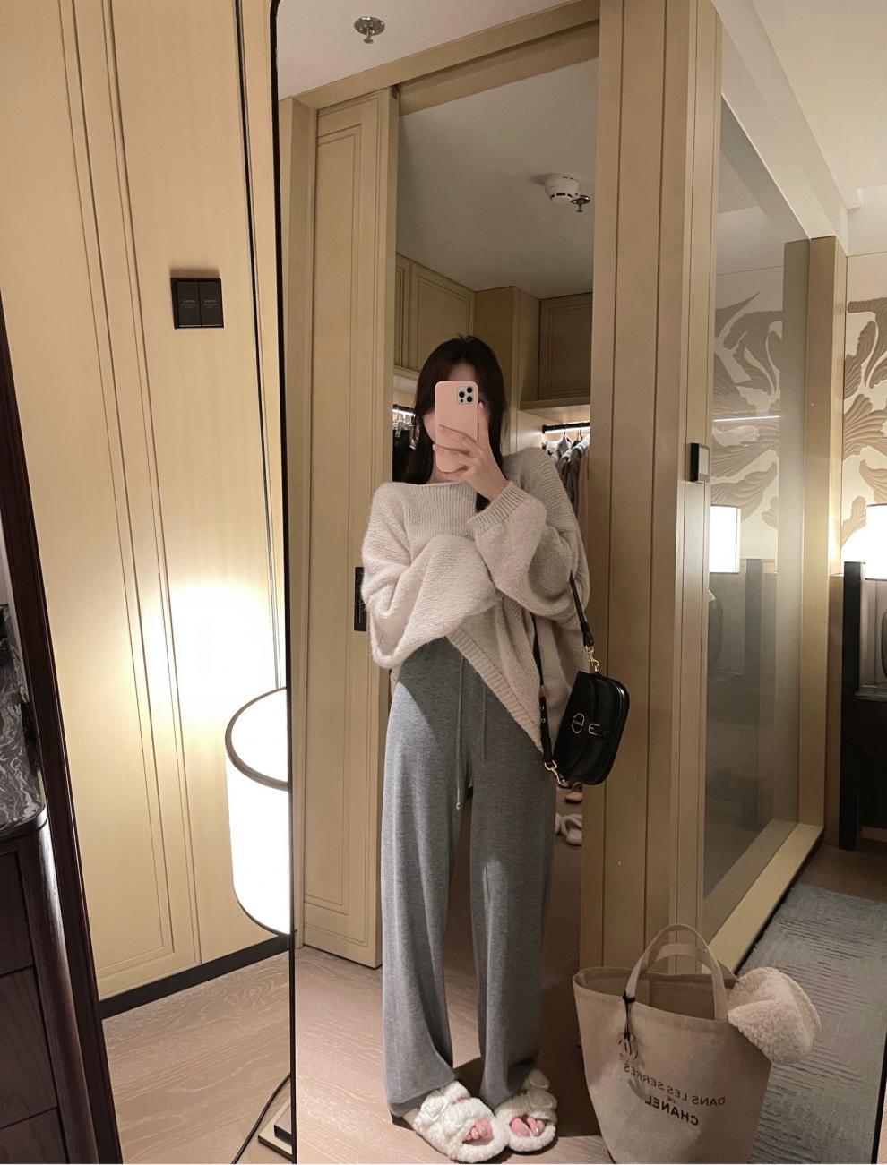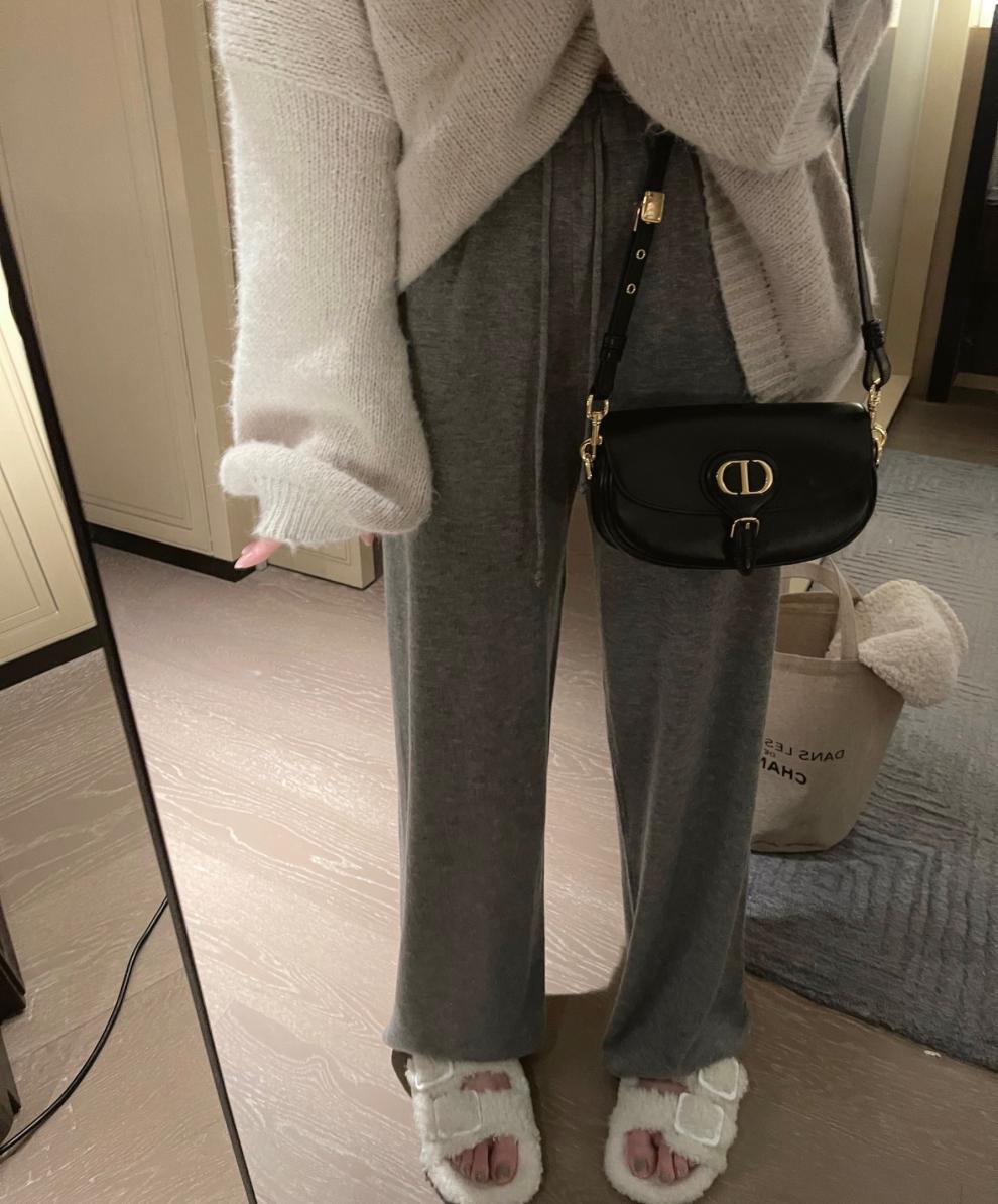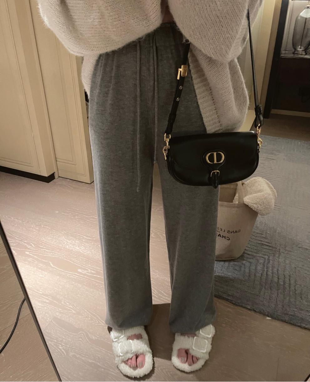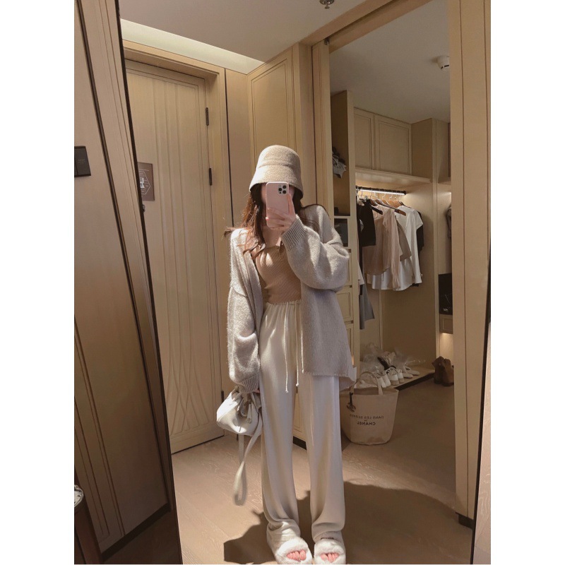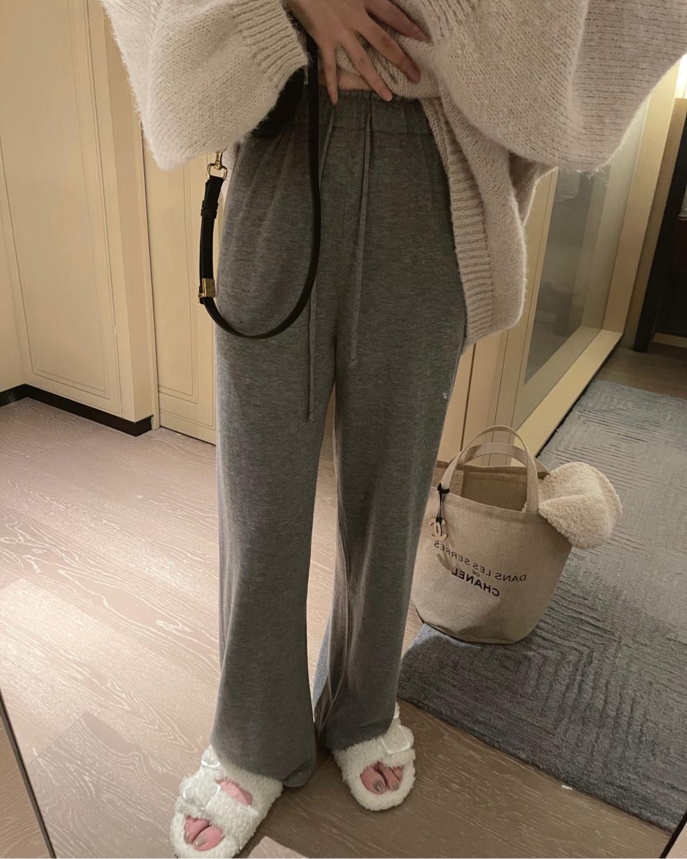 가을과 겨울에 편안한 1 초! 새로운 하이 웨이스트 울 탄성 허리 슬리밍 울 바닥 걸레 와이드 레그 스트레이트 바지 트렌디 한스토어 가기