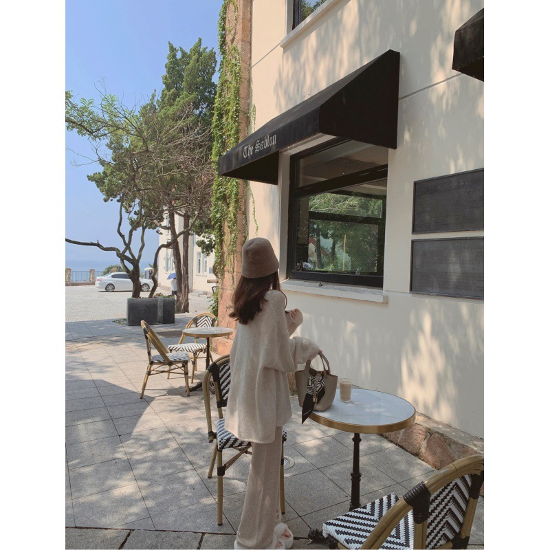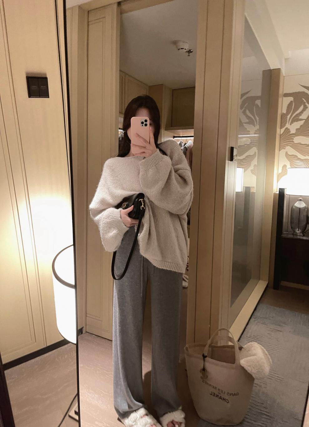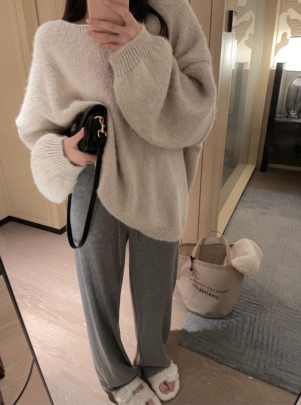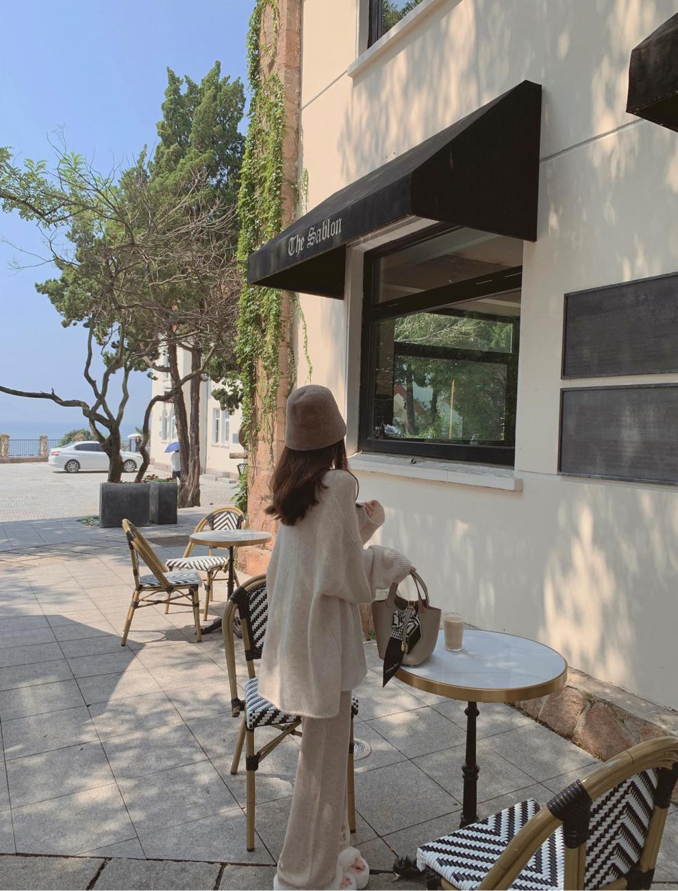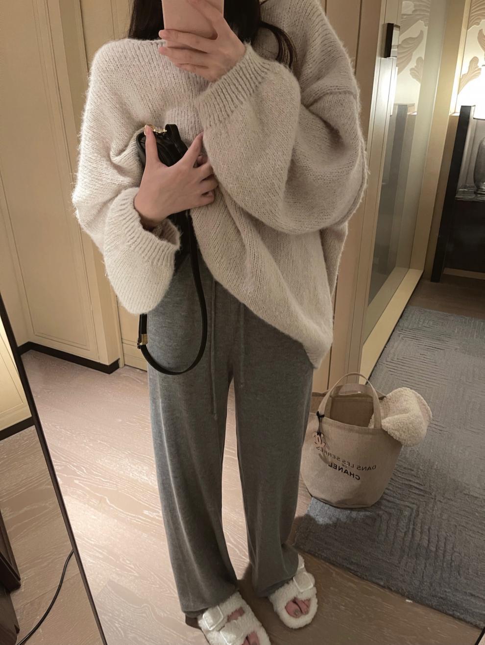가을과 겨울에 편안한 1 초! 새로운 하이 웨이스트 울 탄성 허리 슬리밍 울 바닥 걸레 와이드 레그 스트레이트 바지 트렌디 한스토어 가기