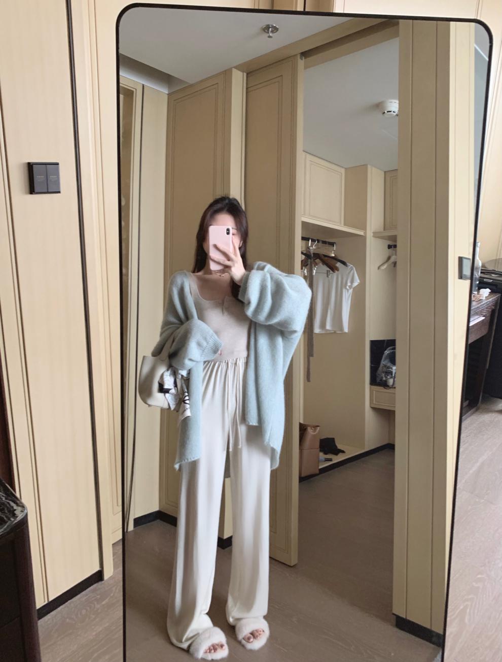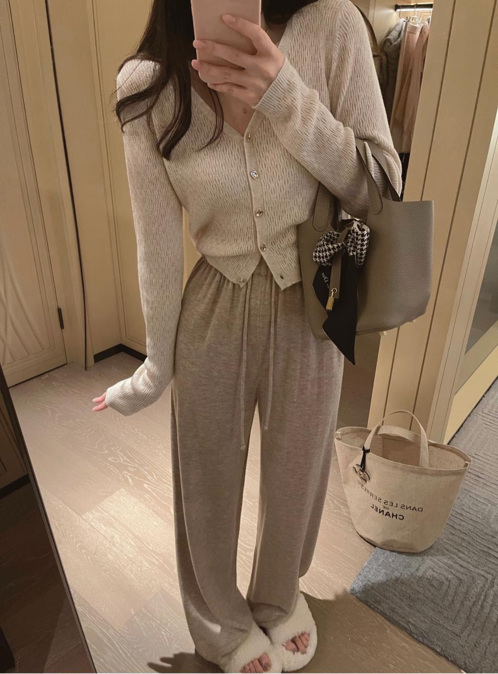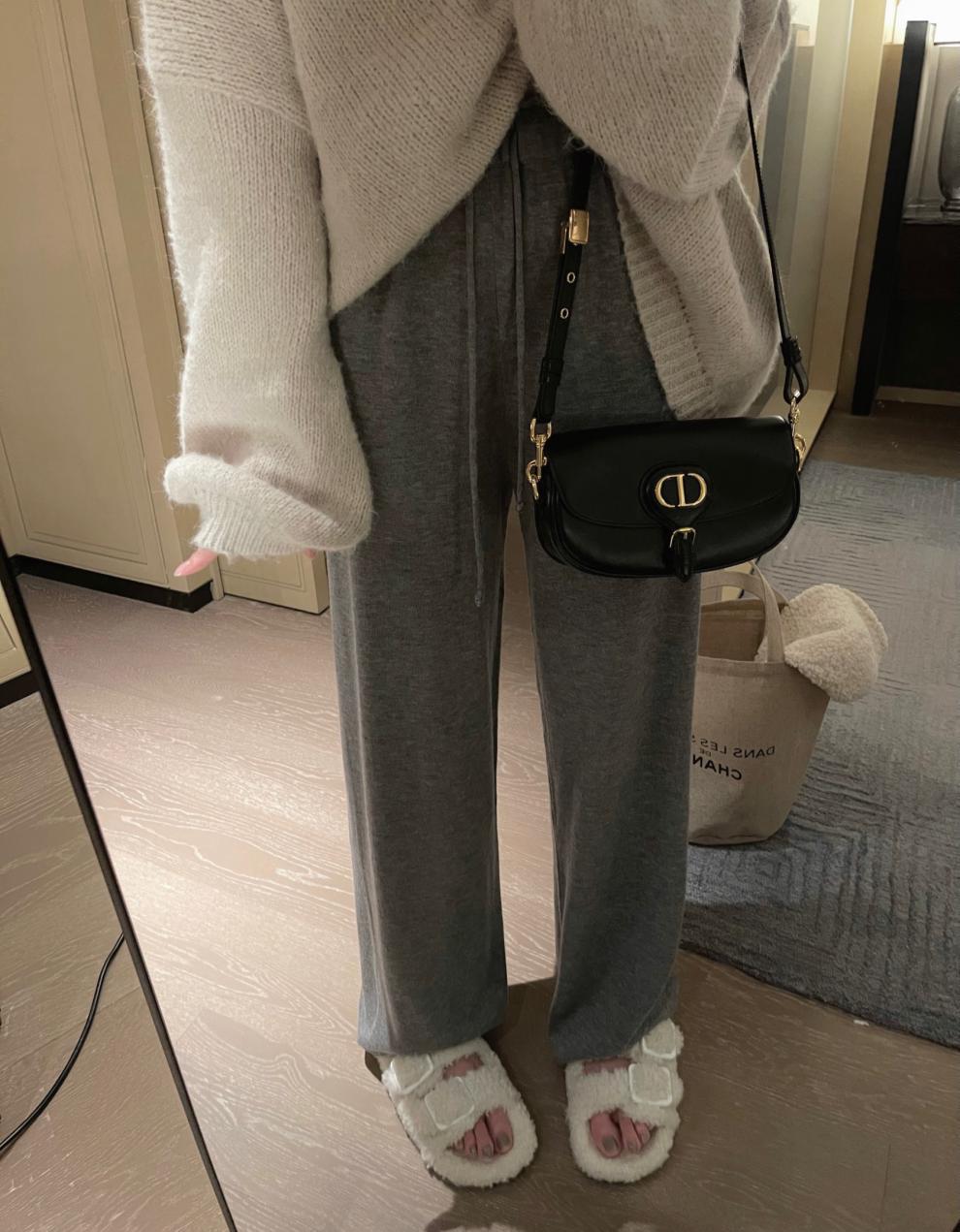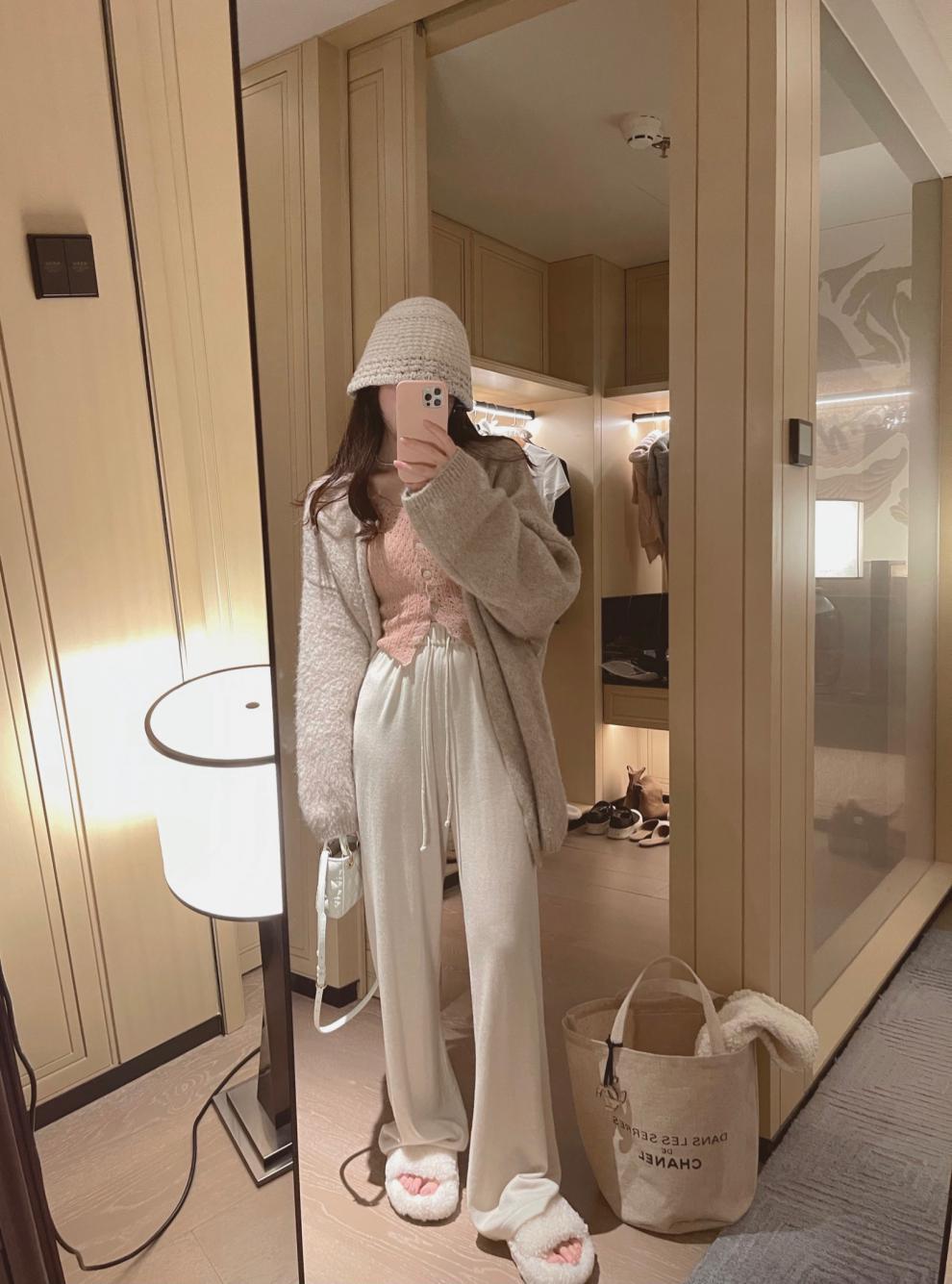 가을과 겨울에 편안한 1 초! 새로운 하이 웨이스트 울 탄성 허리 슬리밍 울 바닥 걸레 와이드 레그 스트레이트 바지 트렌디 한스토어 가기