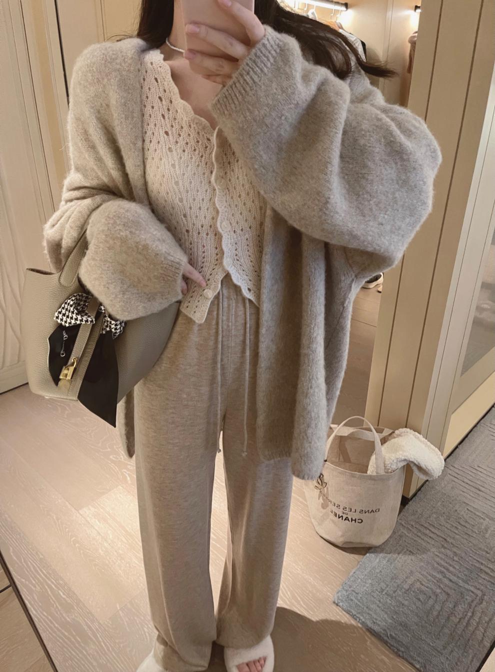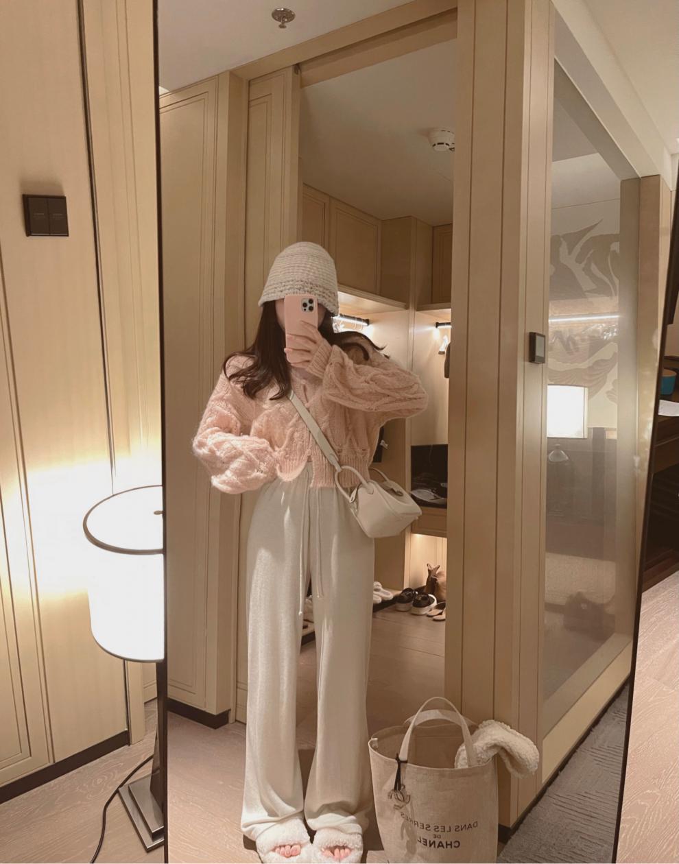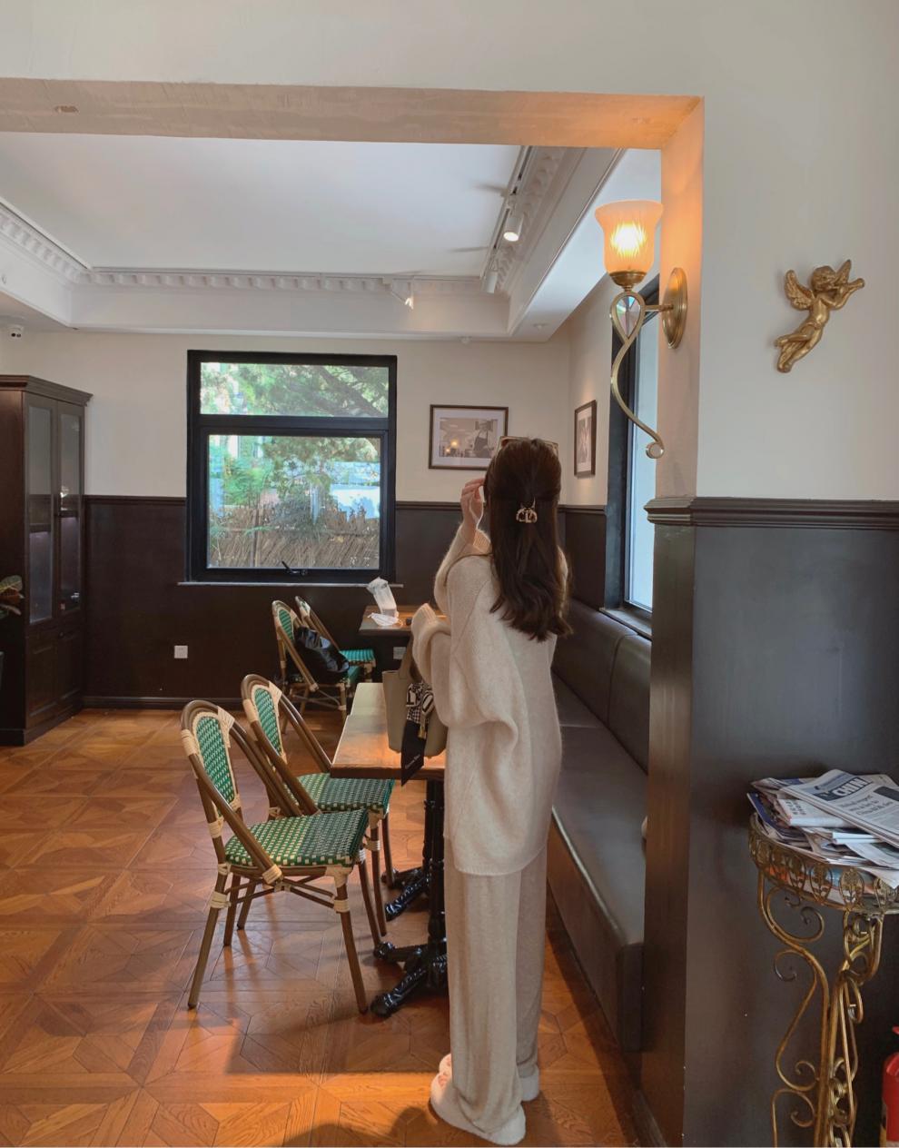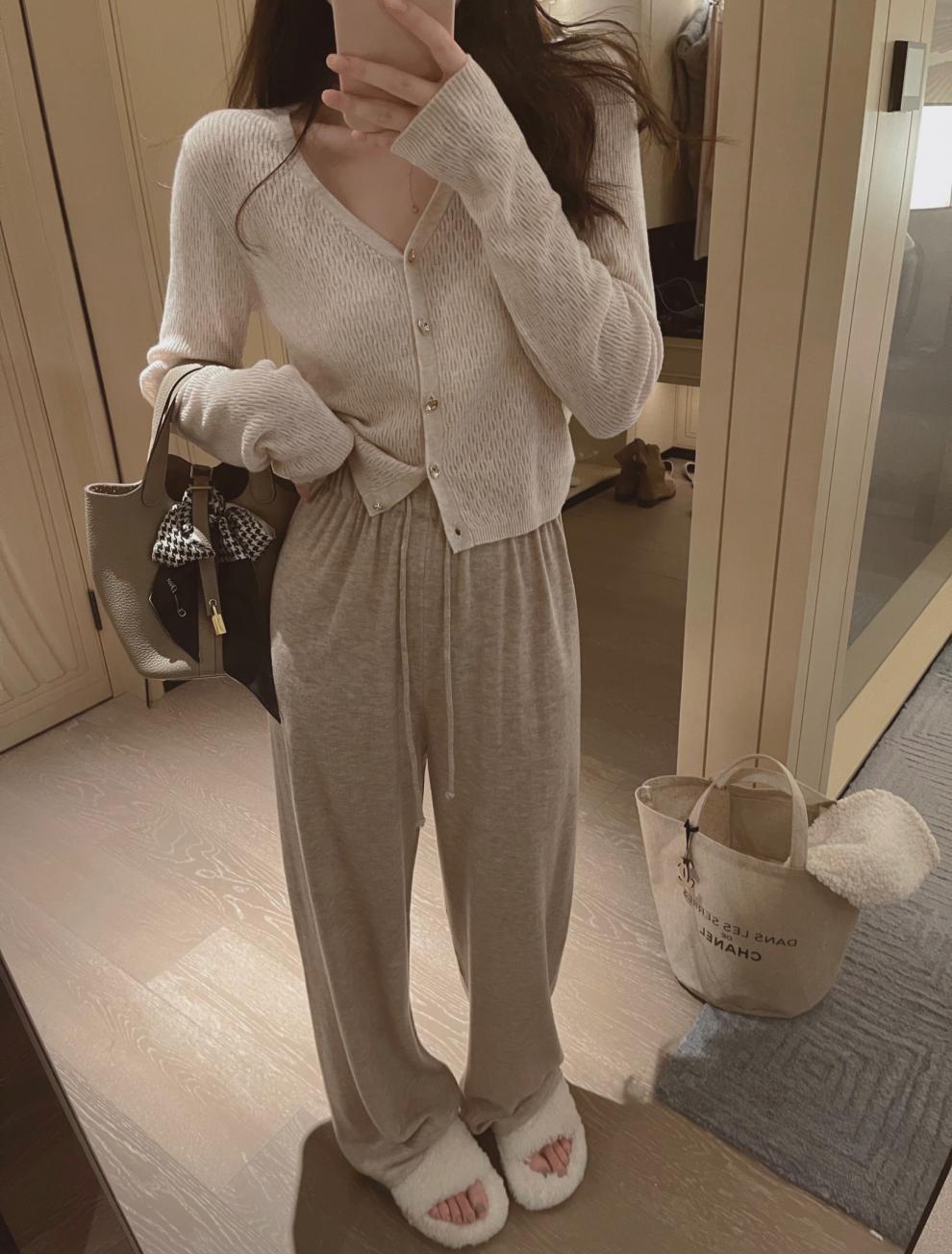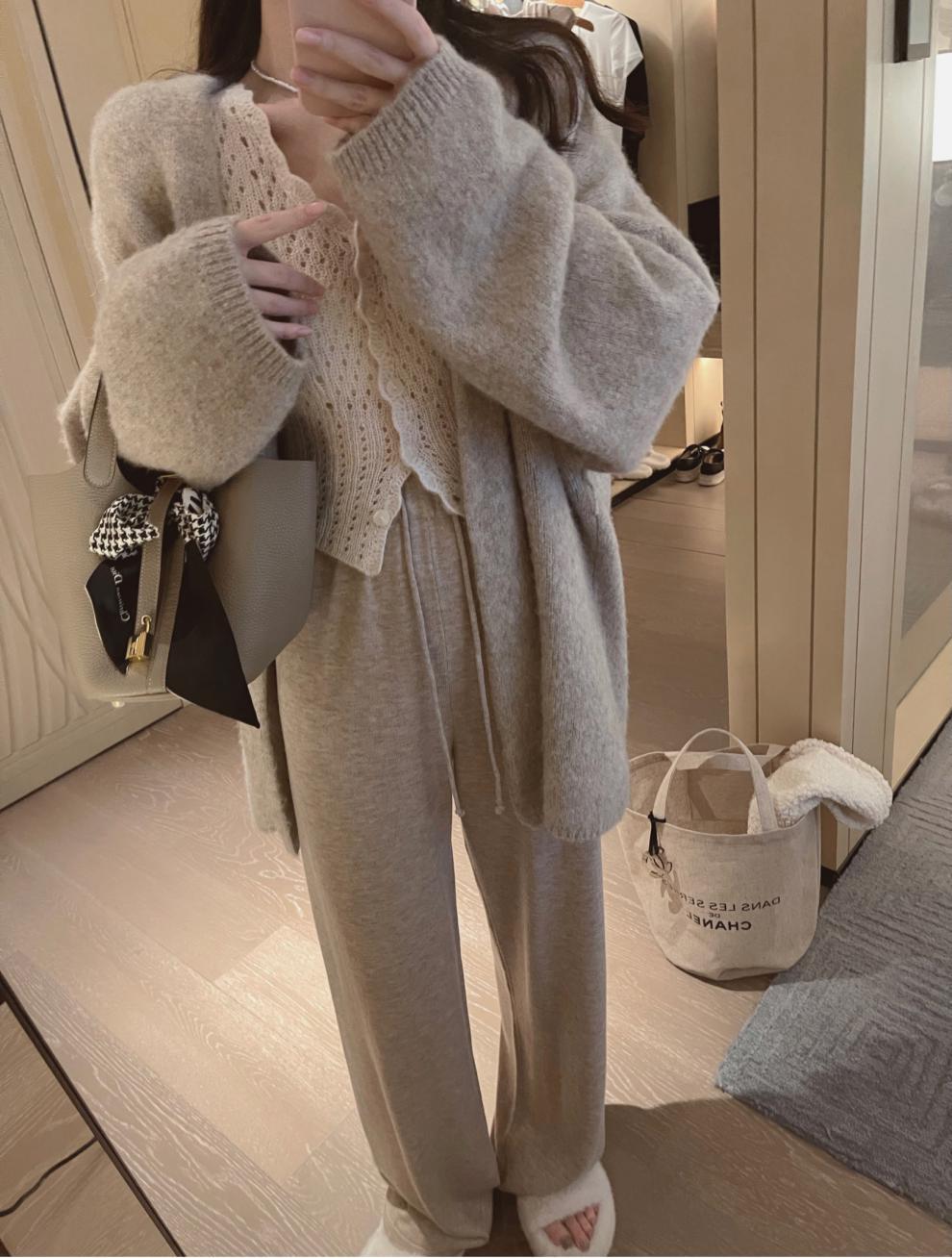 가을과 겨울에 편안한 1 초! 새로운 하이 웨이스트 울 탄성 허리 슬리밍 울 바닥 걸레 와이드 레그 스트레이트 바지 트렌디 한스토어 가기