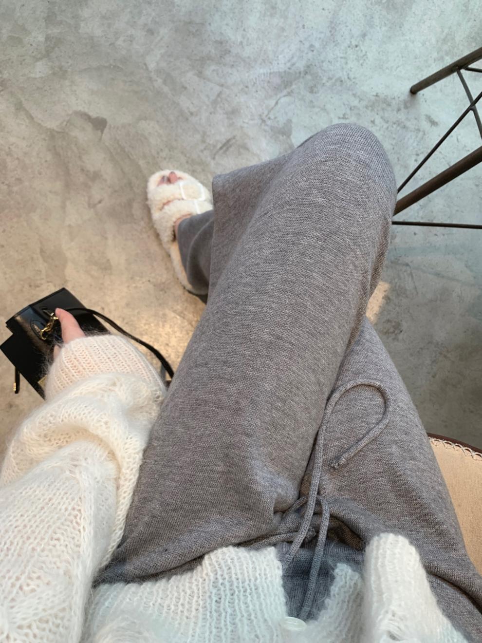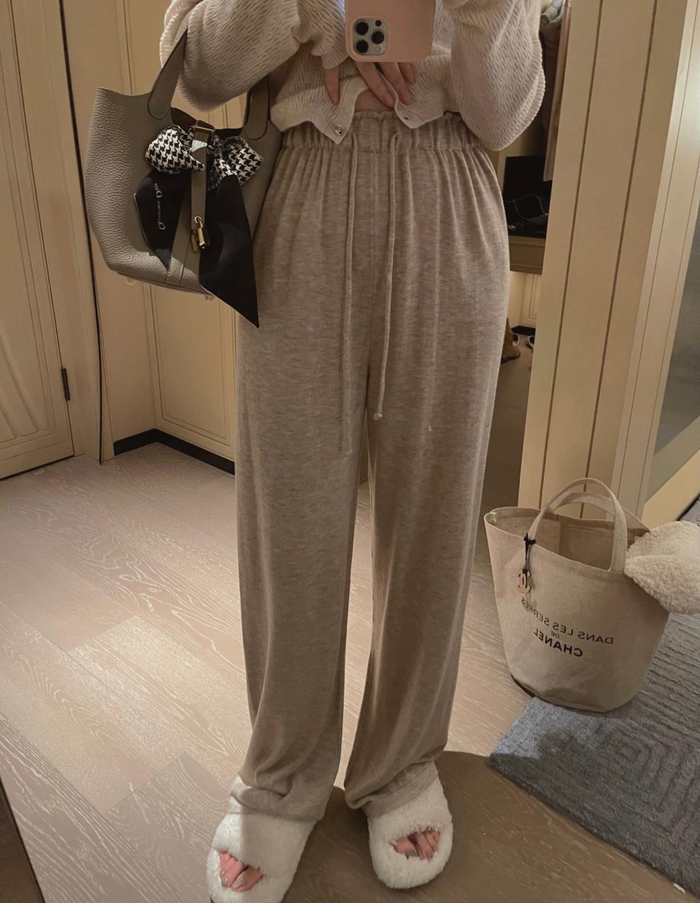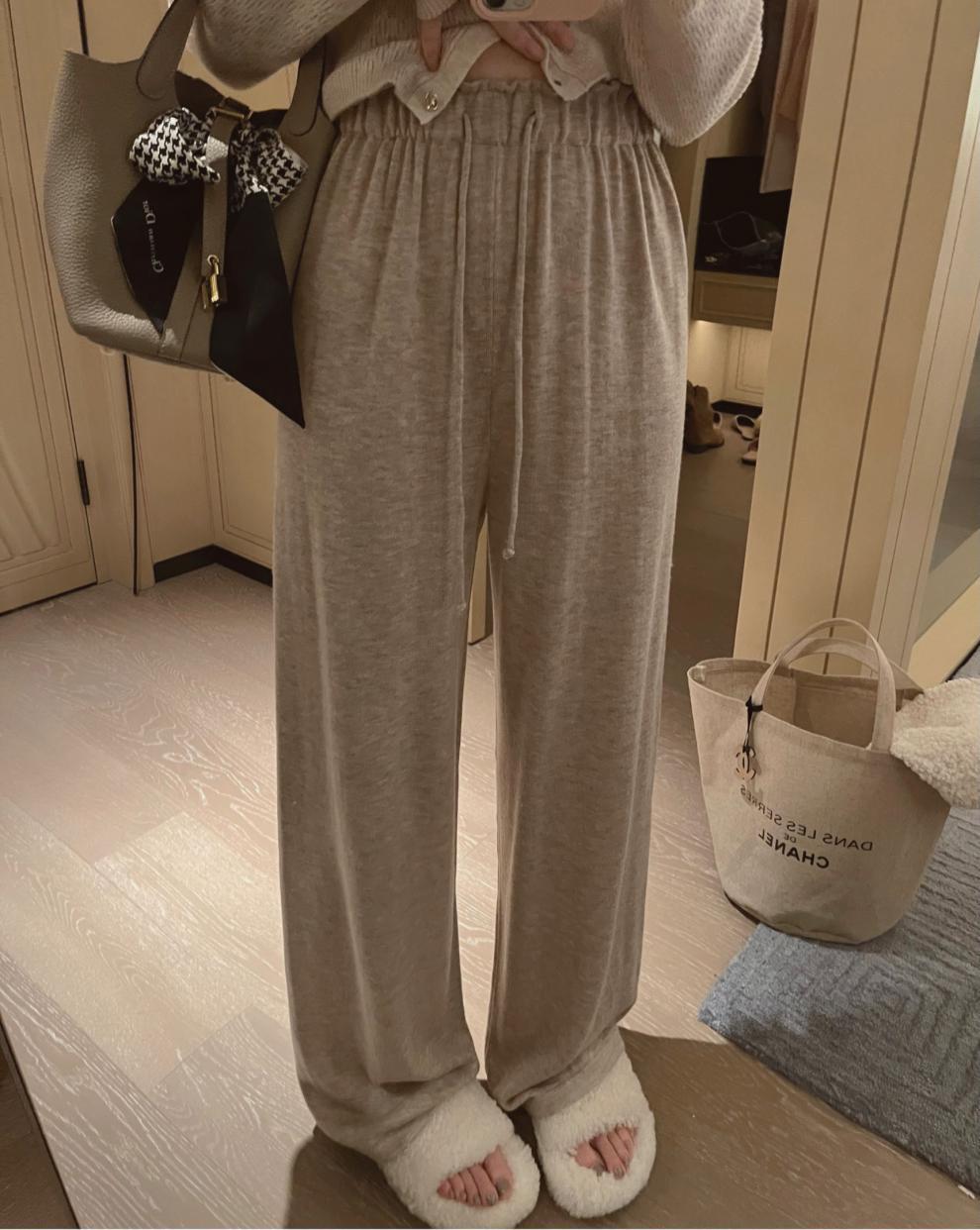 가을과 겨울에 편안한 1 초! 새로운 하이 웨이스트 울 탄성 허리 슬리밍 울 바닥 걸레 와이드 레그 스트레이트 바지 트렌디 한