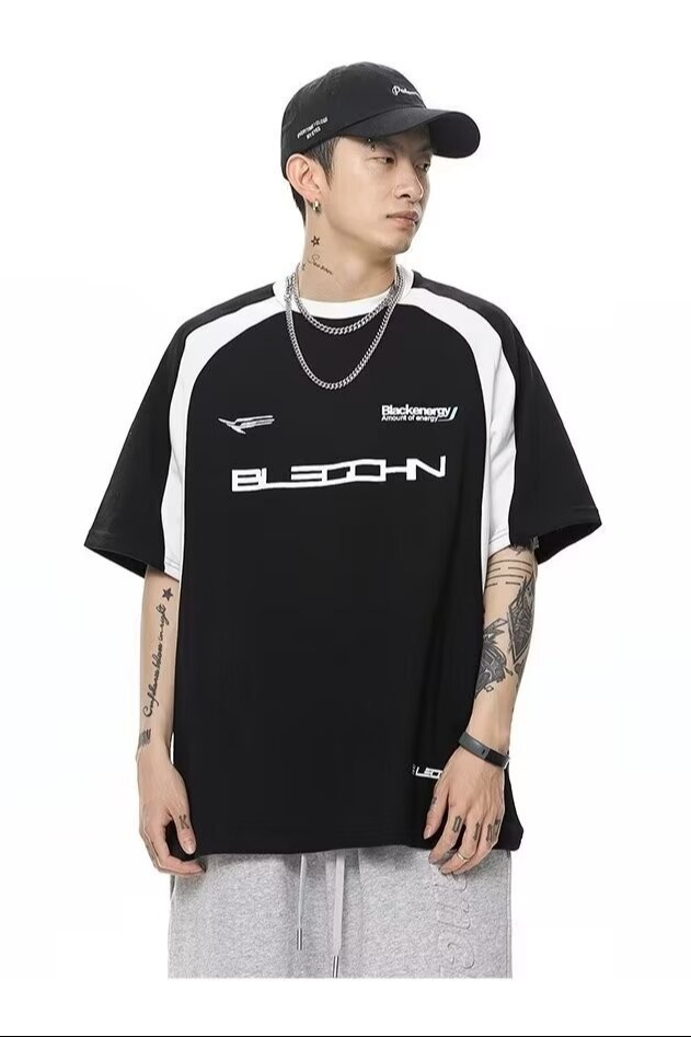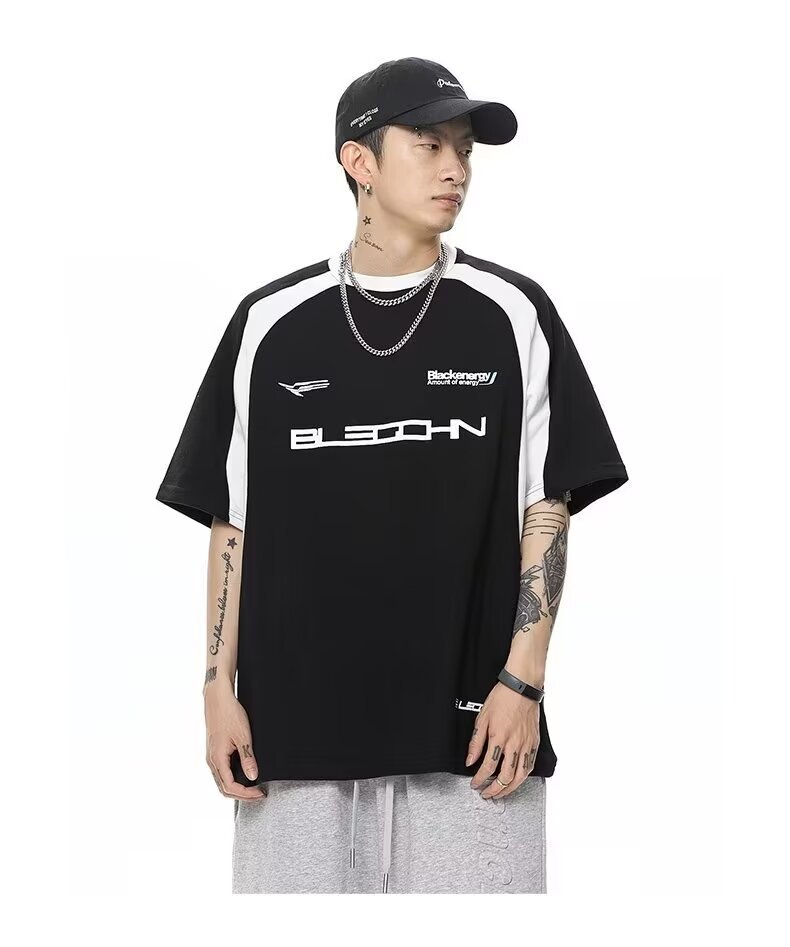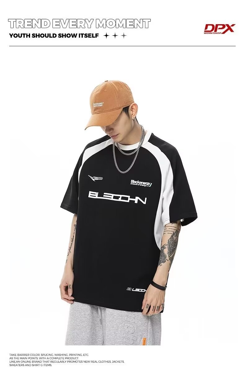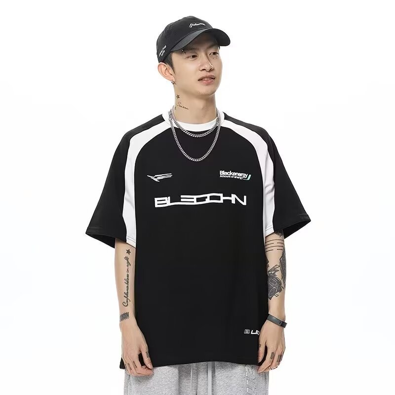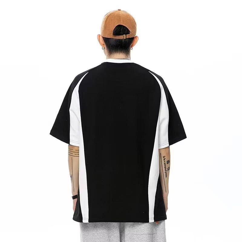 폴로 셔츠 남성 반팔 여름 일본 스타일 트렌디 브랜드 헤비 코튼 티셔츠 대학 스타일 대비 컬러 느슨한 반소매 티셔츠스토어 가기