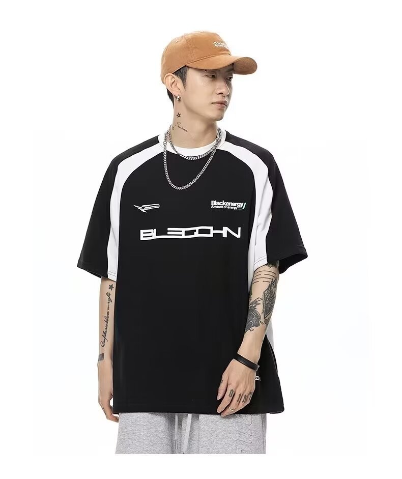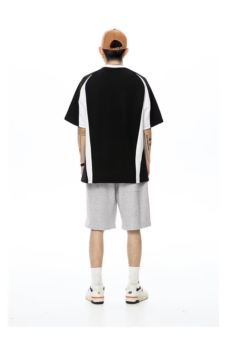 폴로 셔츠 남성 반팔 여름 일본 스타일 트렌디 브랜드 헤비 코튼 티셔츠 대학 스타일 대비 컬러 느슨한 반소매 티셔츠