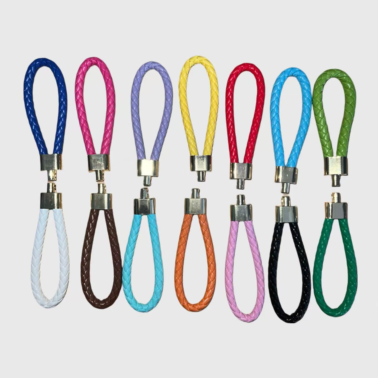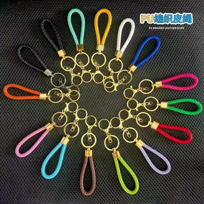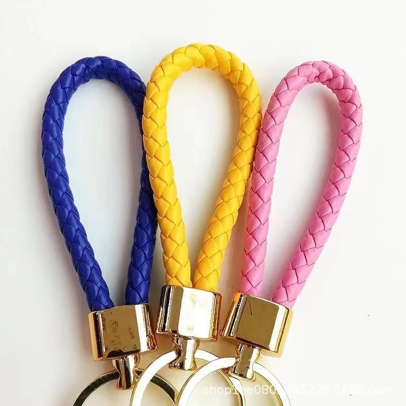 공장 도매 짠 합금 가죽 로프 키 반지 펜던트 가죽 로프 가죽 로프 PU 소재 작은 선물 키 체인 가죽 로프