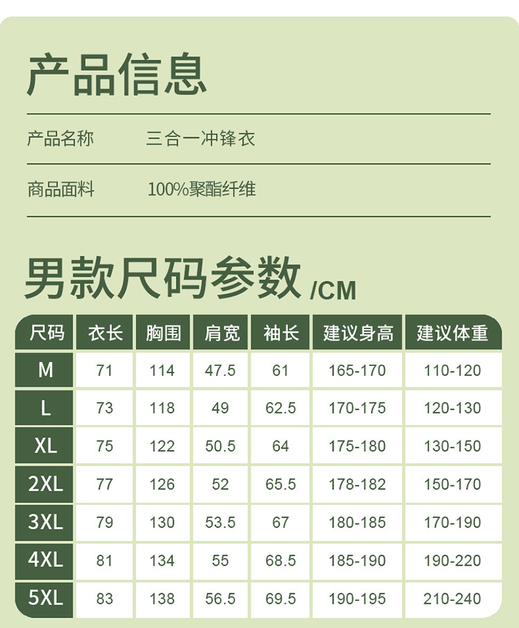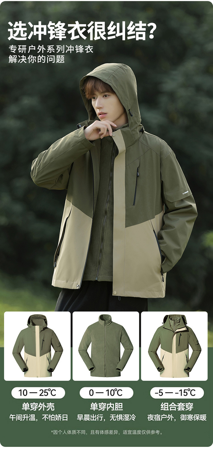 야외 3 대 1 남성용 방풍 따뜻한 옷 색상 연마 이동식 투피스 옷 맞춤형스토어 가기