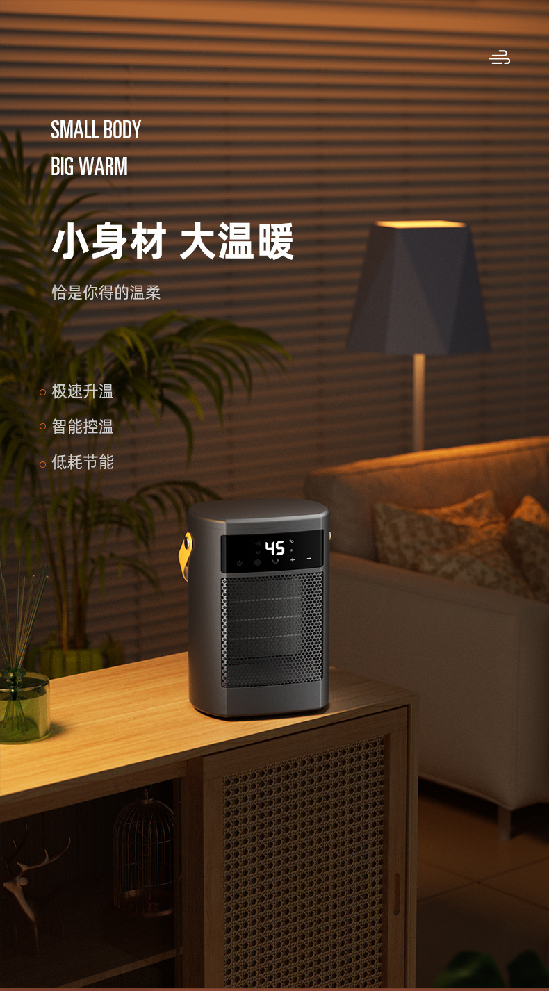 새로운 국경 히터 가정용 작은 떨림 헤드 원격 제어 히터 사무실 데스크탑 고전력 전기 히터 디지털 디스플레이