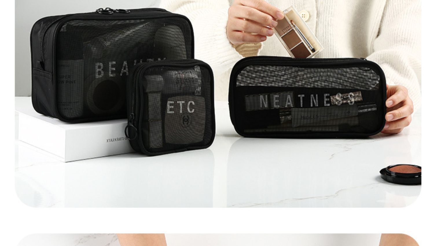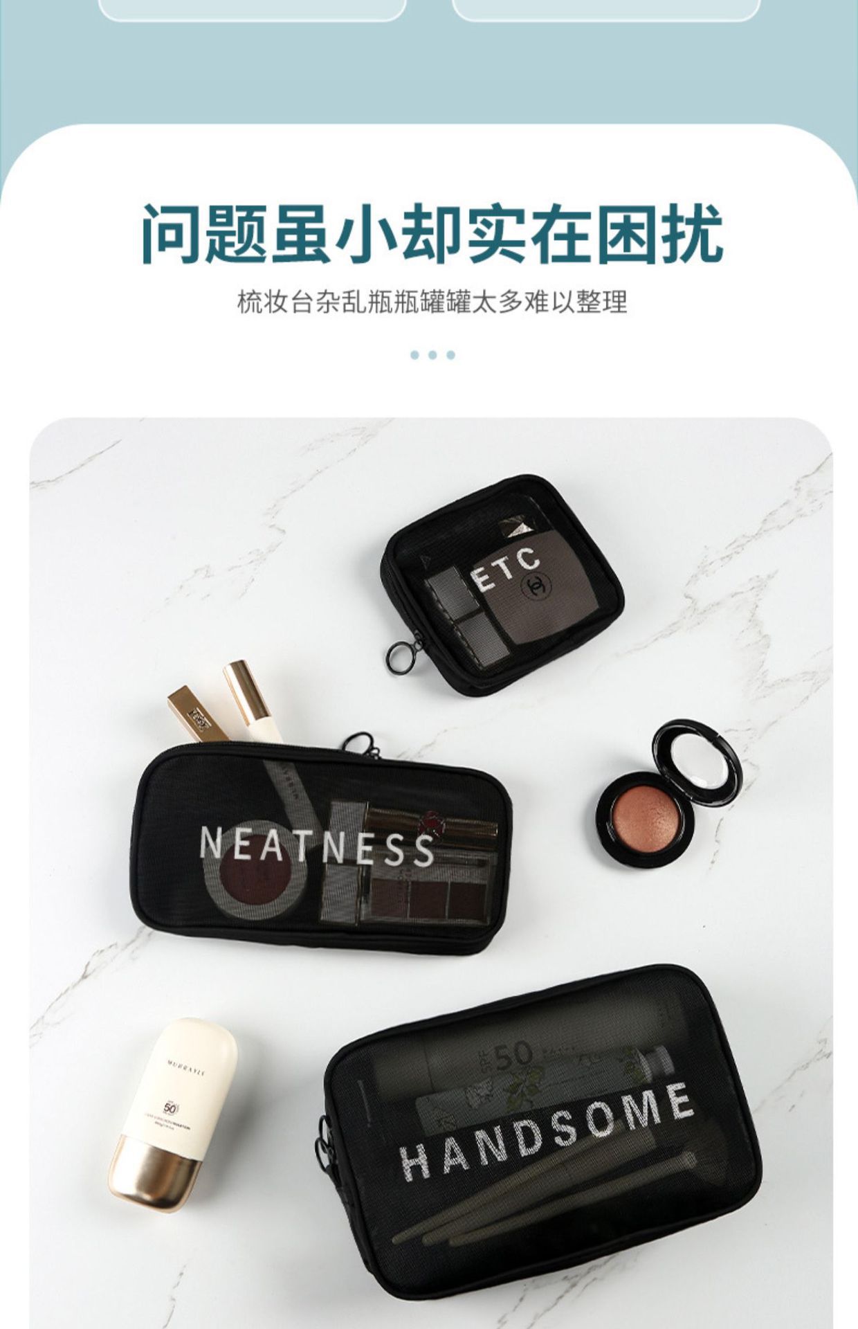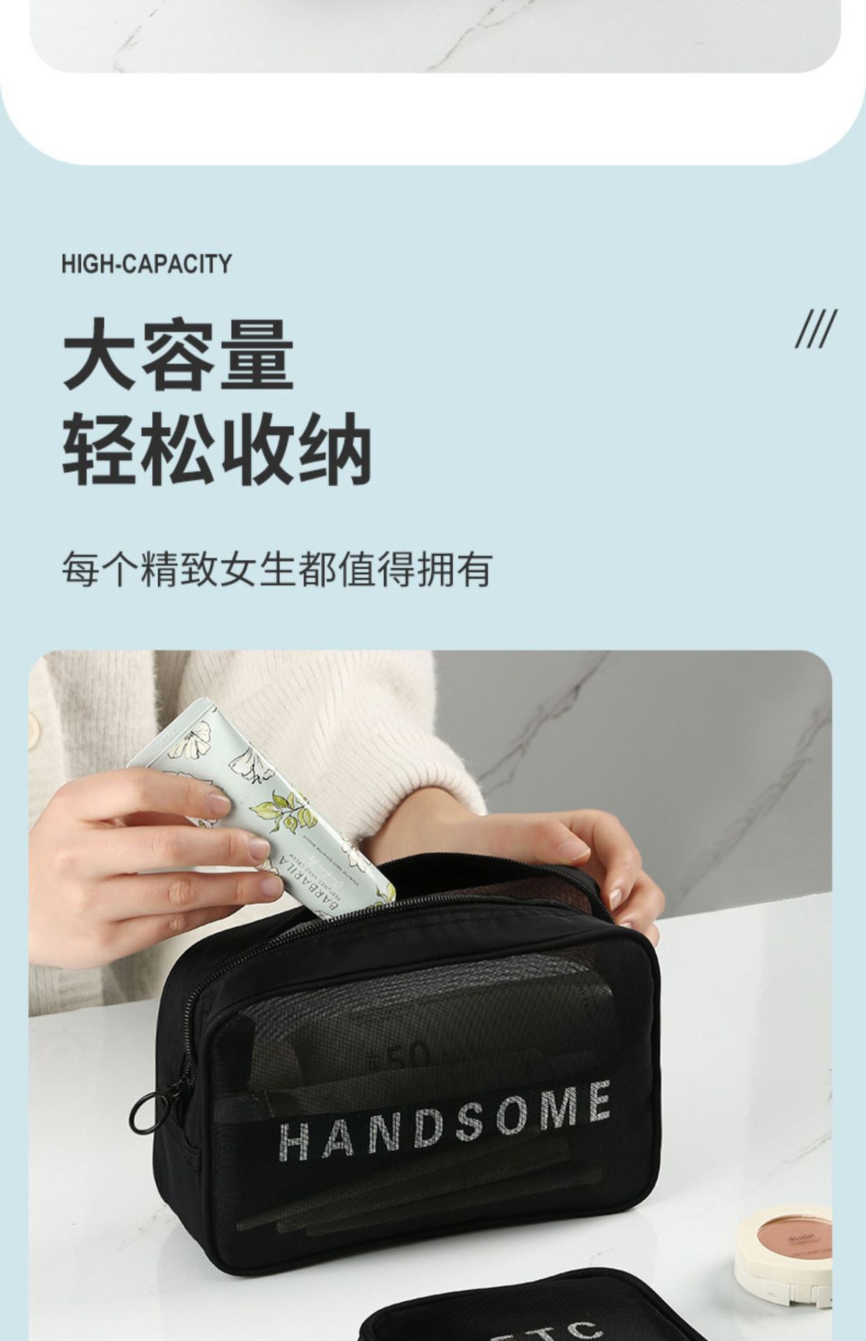 가정용 대용량 메쉬 화장품 가방 여행용 휴대용 세면도구 및 스킨케어 제품 보관 가방 제조업체 도매 재고스토어 가기