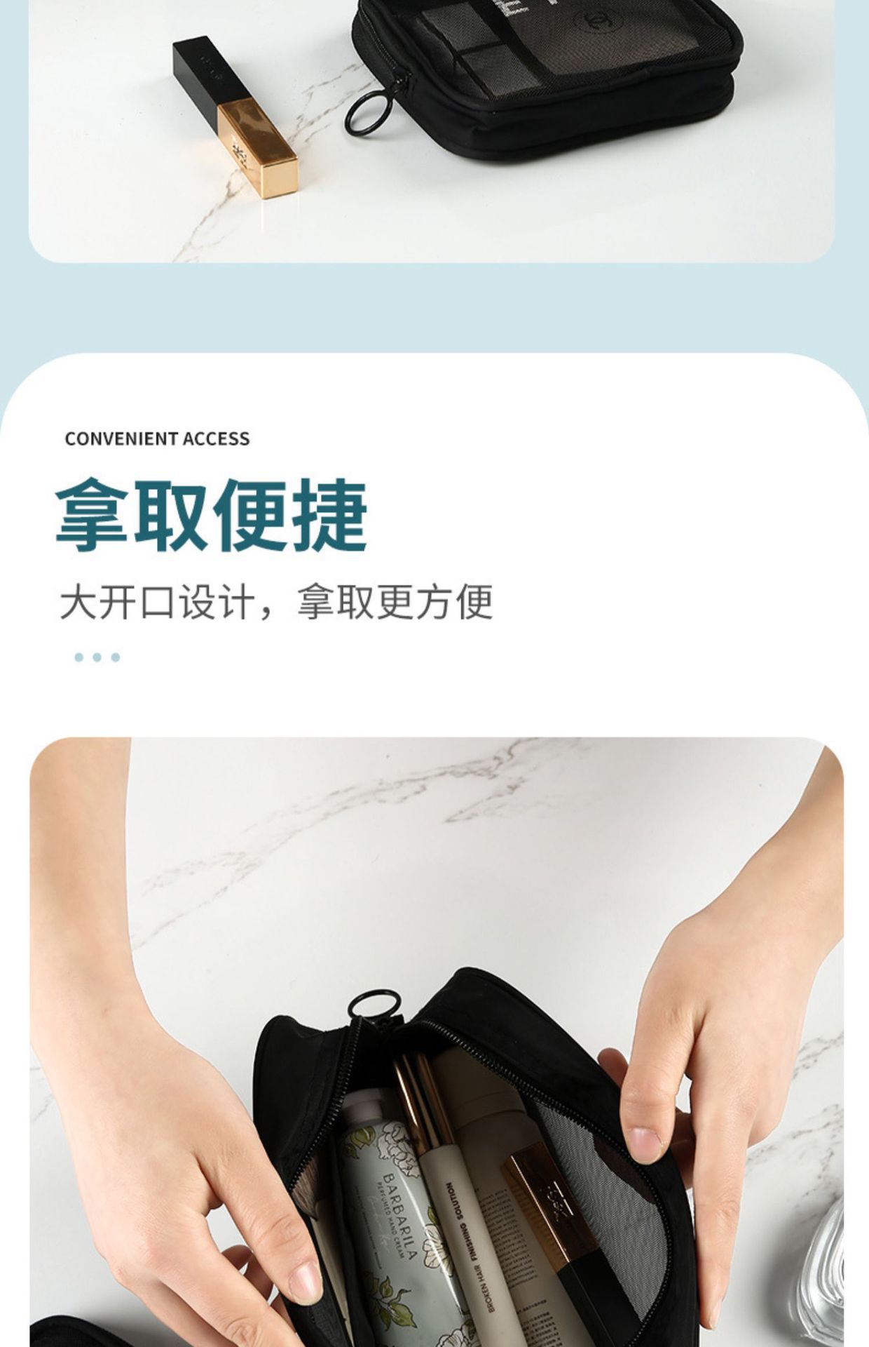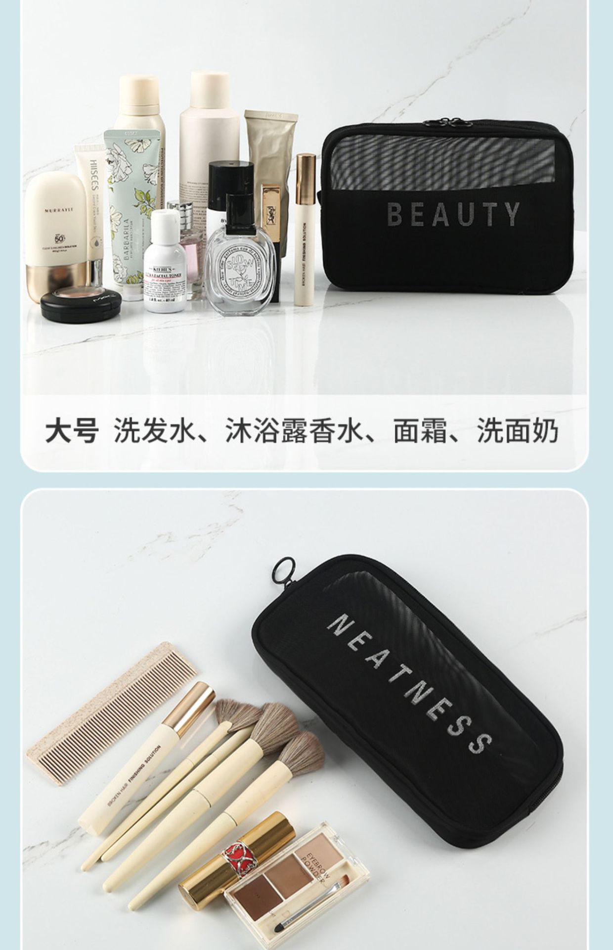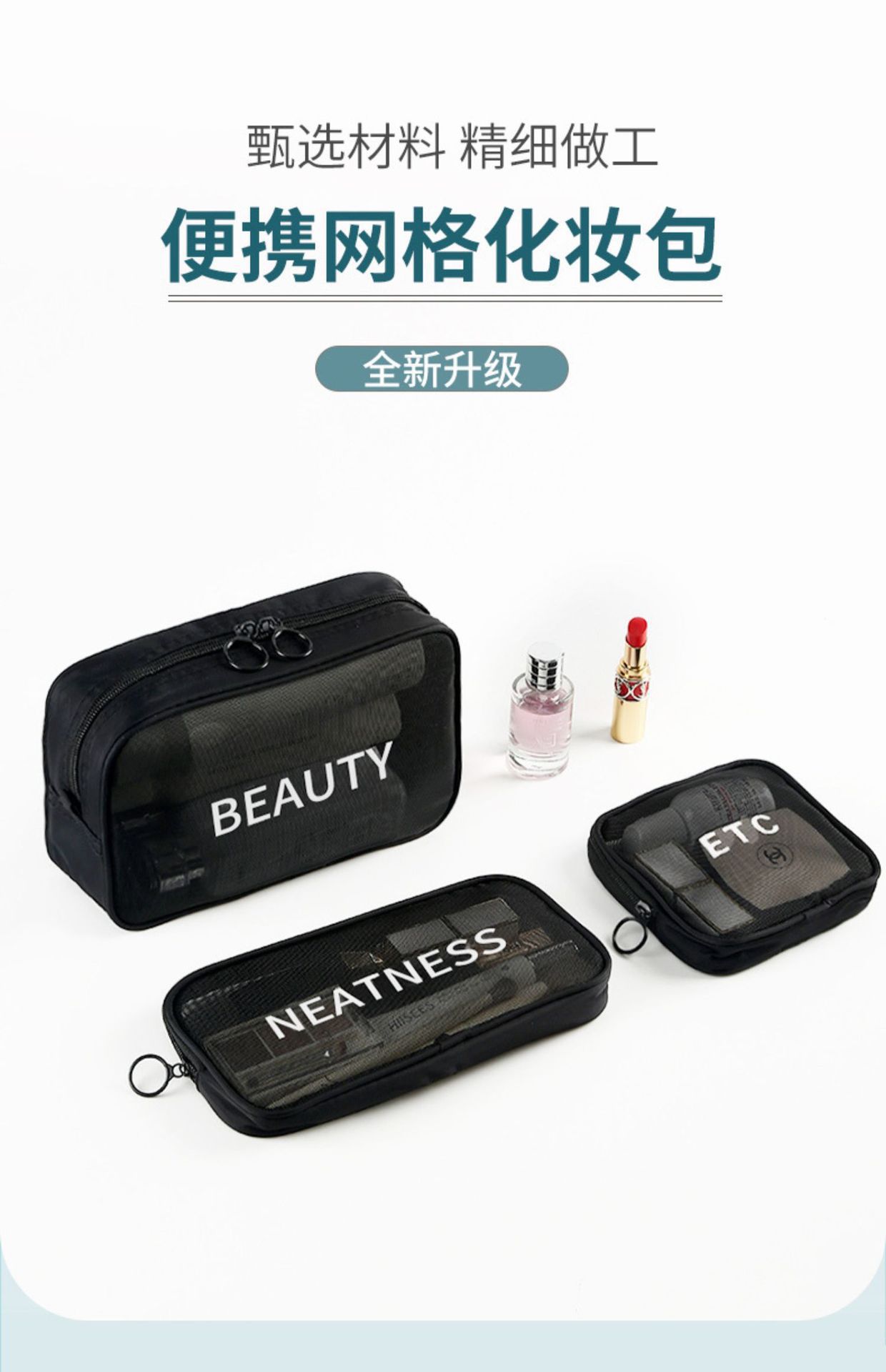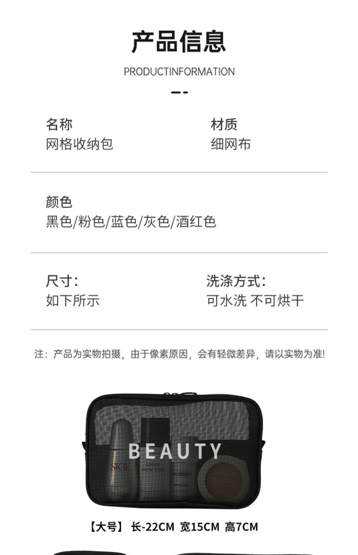 가정용 대용량 메쉬 화장품 가방 여행용 휴대용 세면도구 및 스킨케어 제품 보관 가방 제조업체 도매 재고