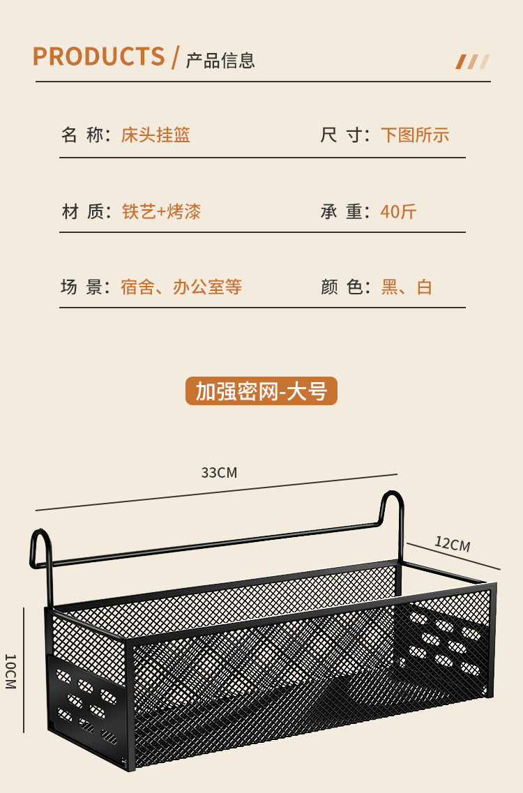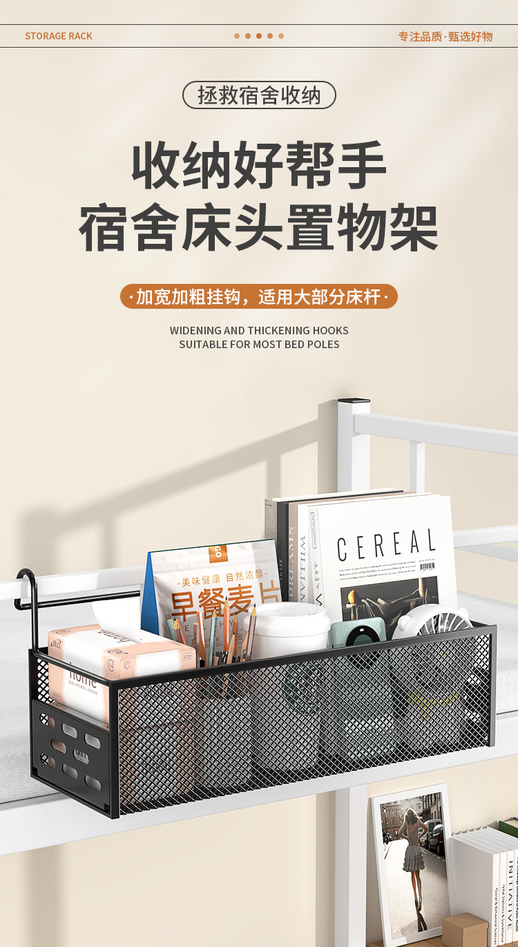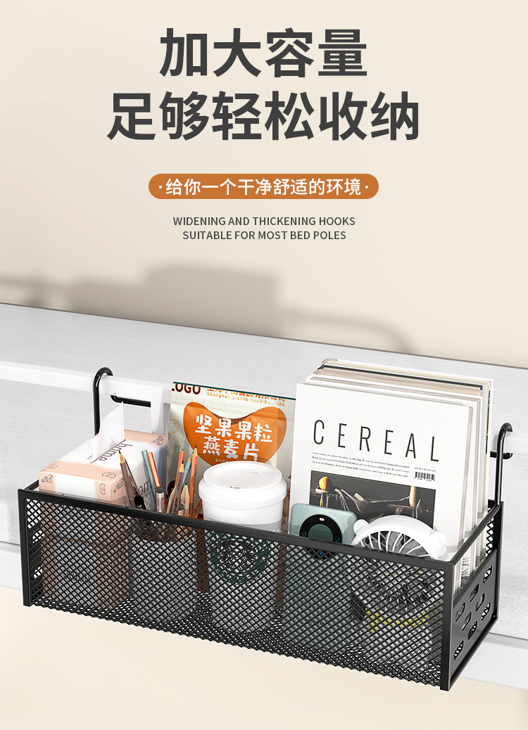 여성 기숙사 대학생을위한 기숙사 침구 보관 랙 상위 침대 아티팩트 보관 랙 침대 측면 교수형 바구니 보관 좋은 것들