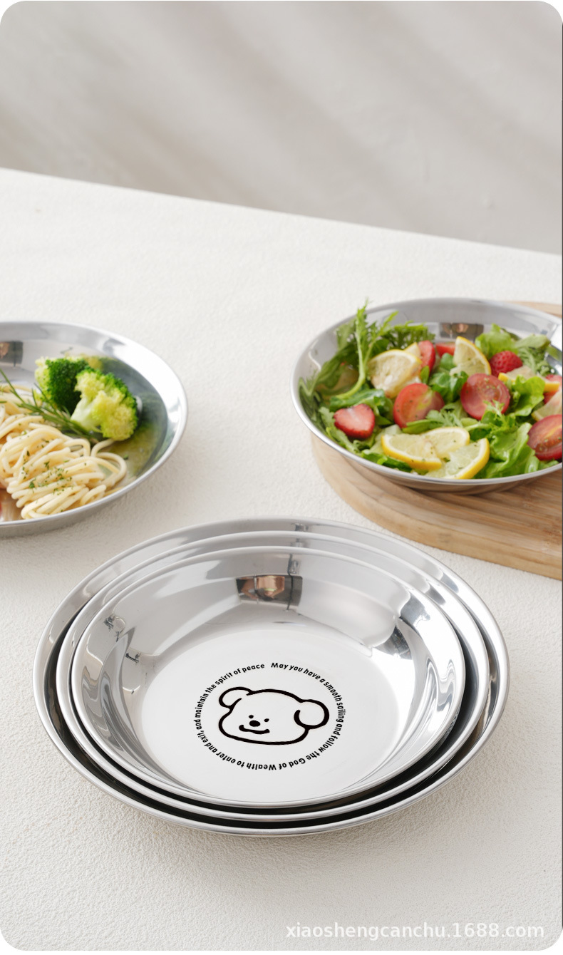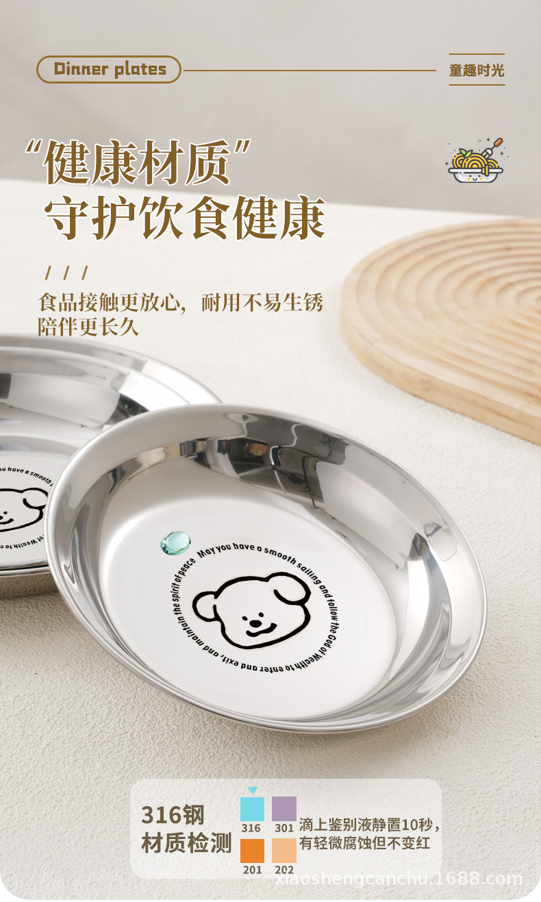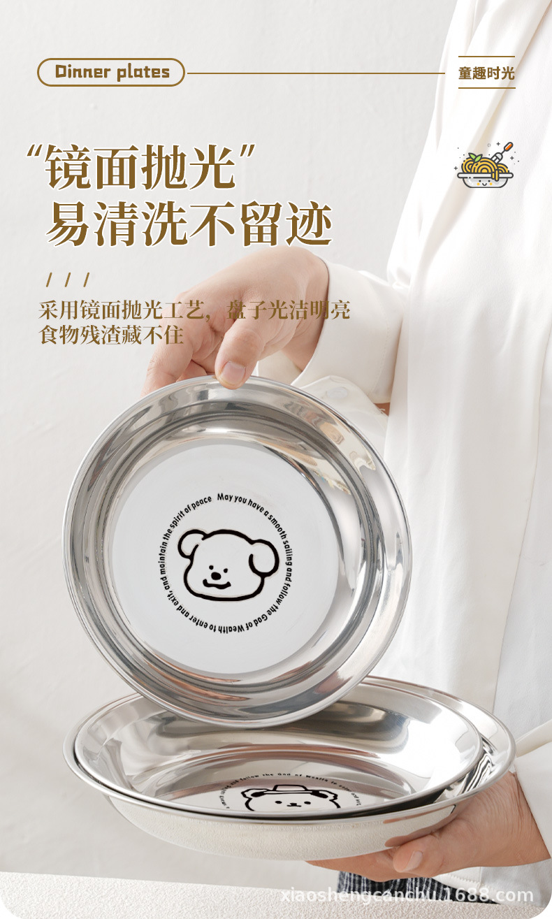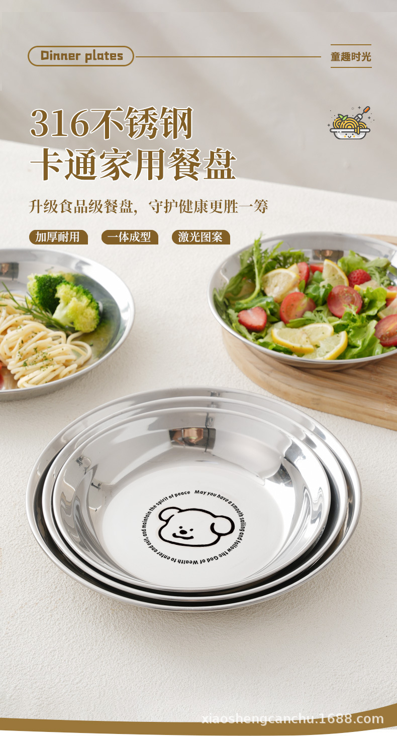 304 스테인레스 스틸 플레이트 귀여운 가정용 어린이 베이비 디너 플레이트 식품 학년 베이비 식기 두꺼운 디스크