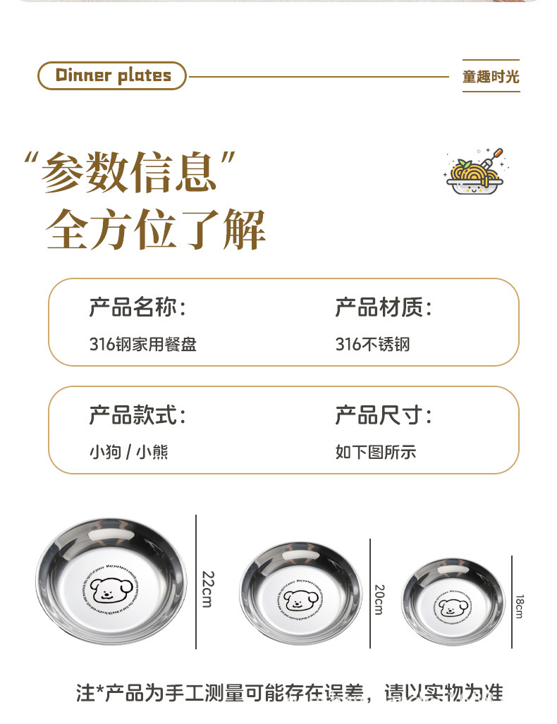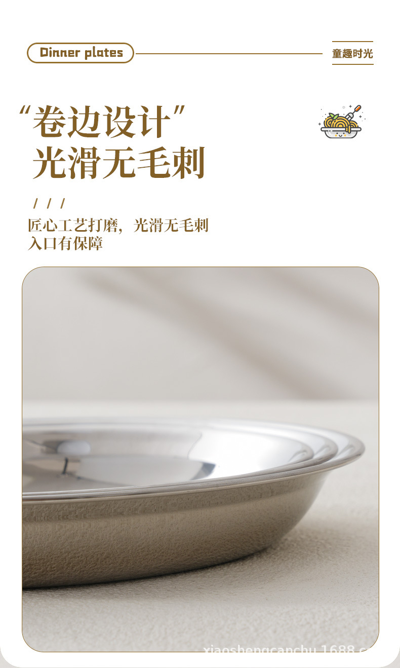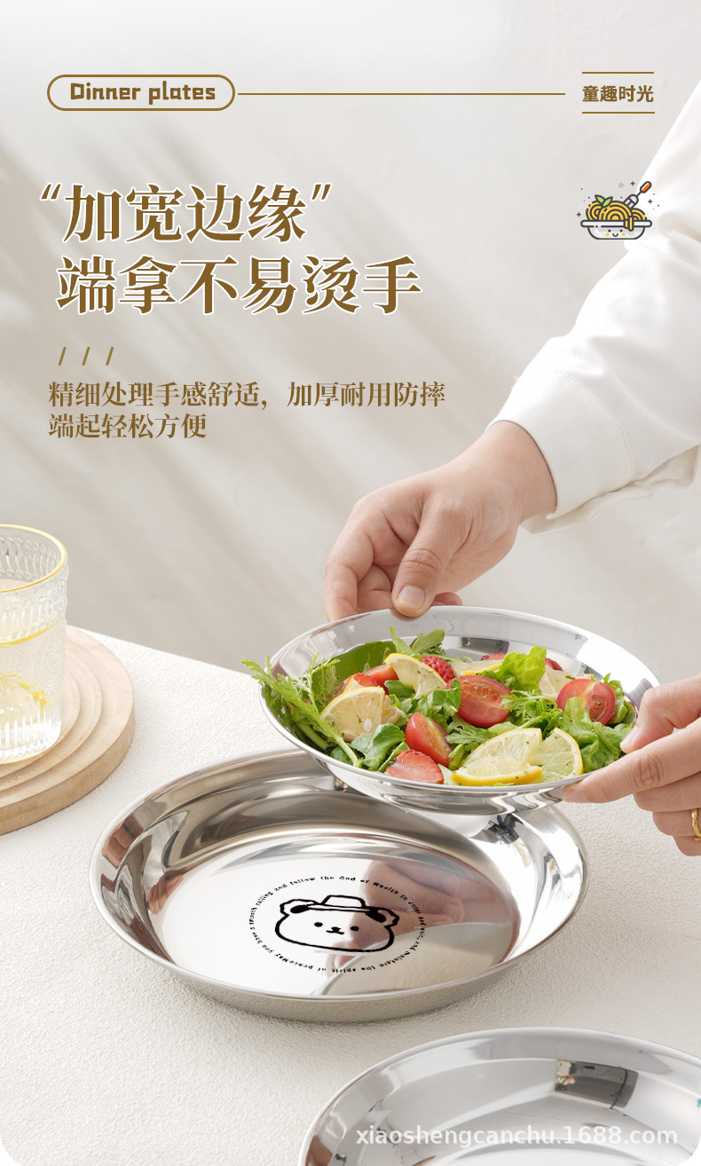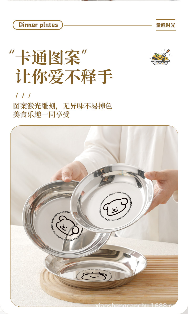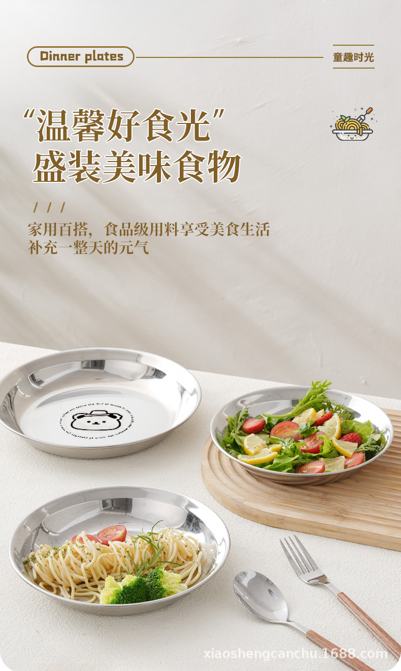 304 스테인레스 스틸 플레이트 귀여운 가정용 어린이 베이비 디너 플레이트 식품 학년 베이비 식기 두꺼운 디스크