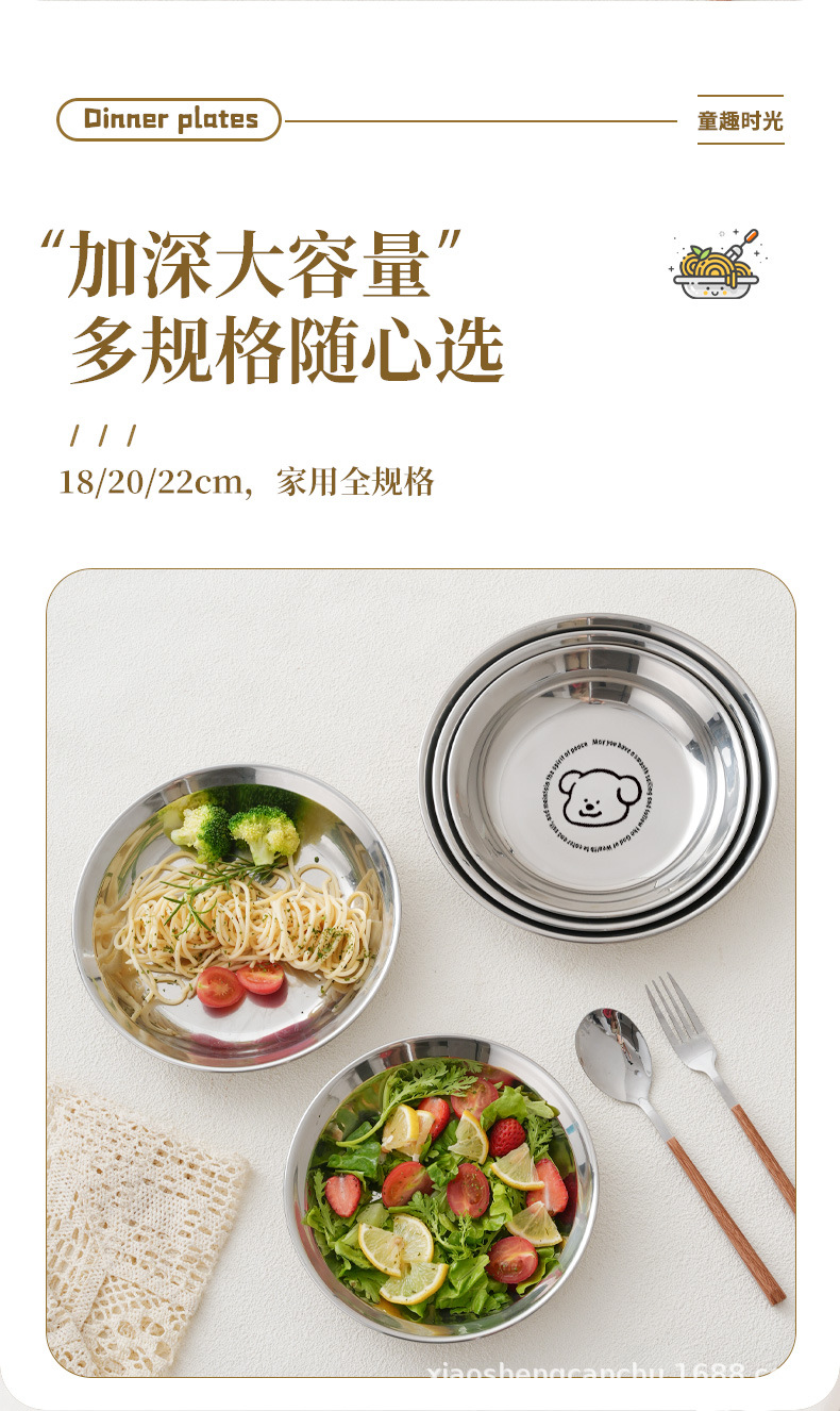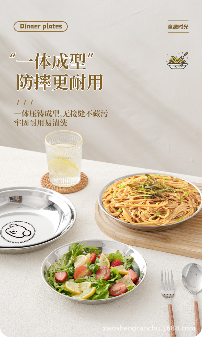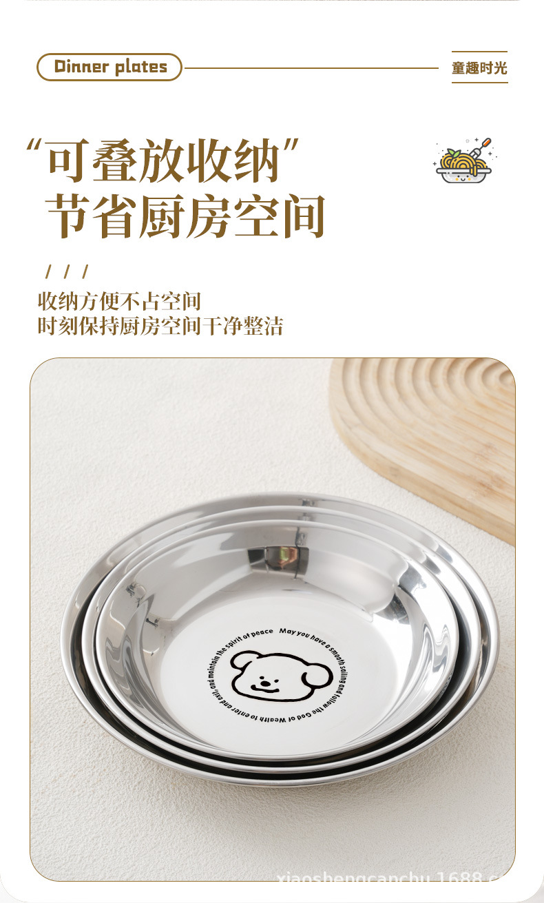 304 스테인레스 스틸 플레이트 귀여운 가정용 어린이 베이비 디너 플레이트 식품 학년 베이비 식기 두꺼운 디스크스토어 가기