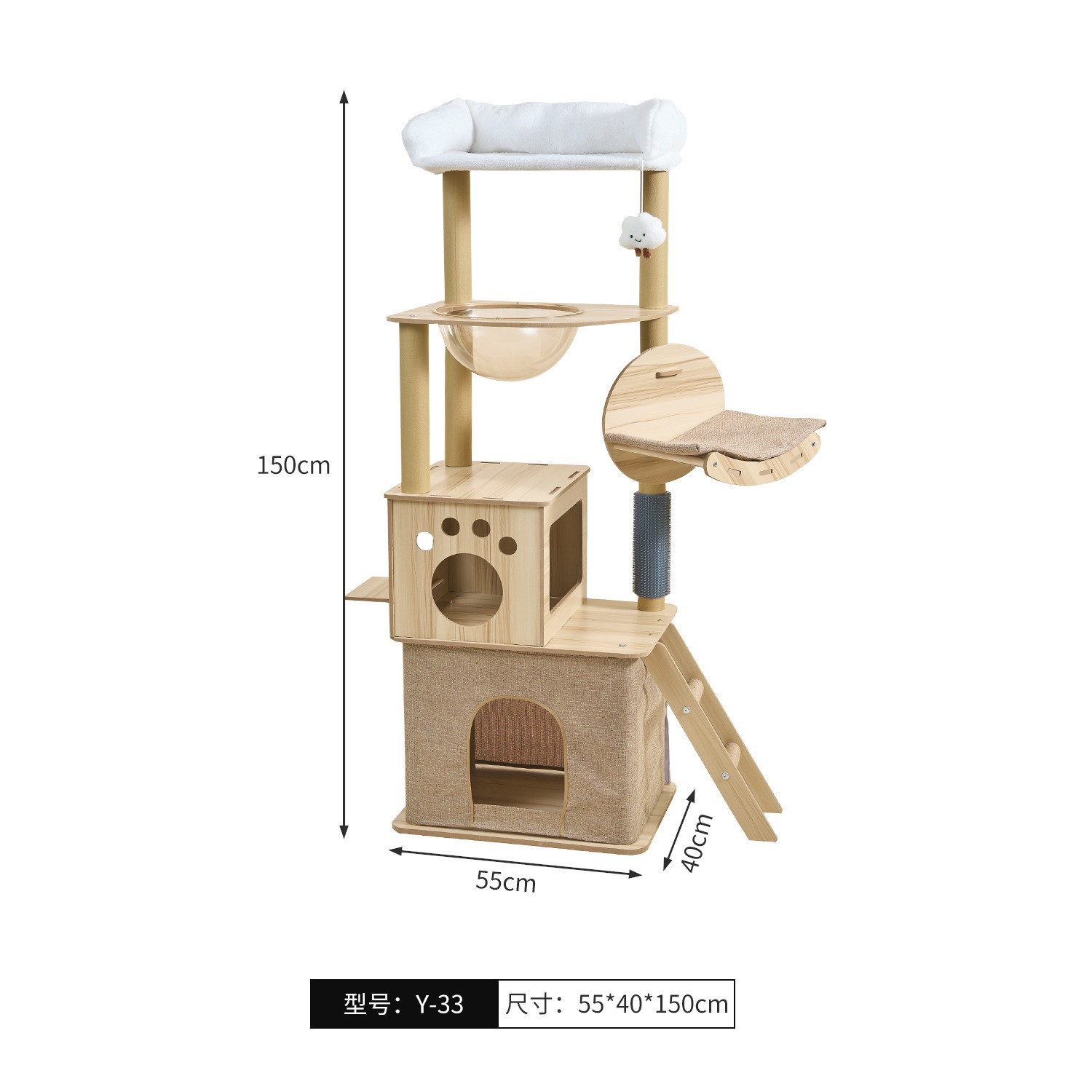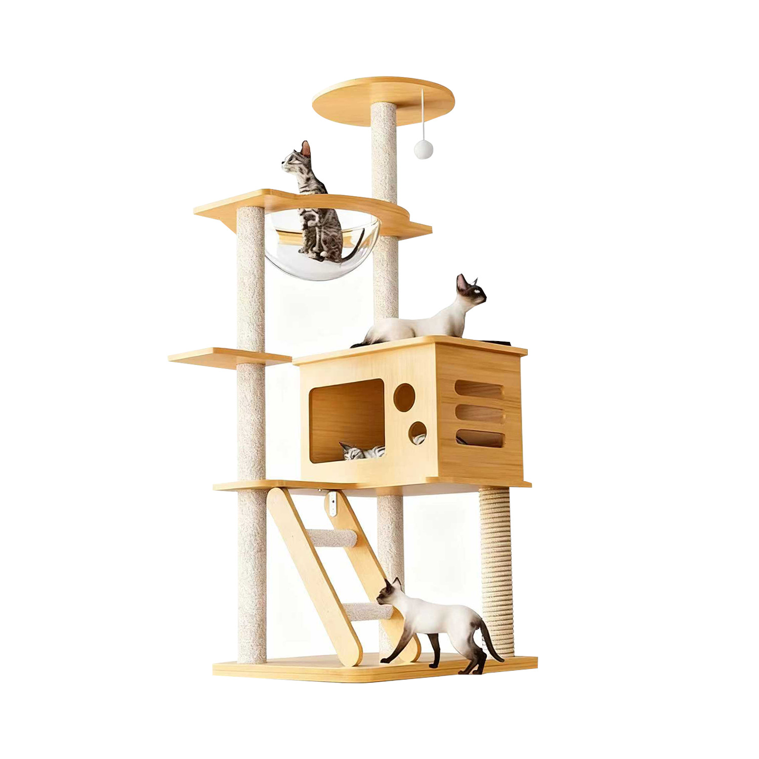 대형 대나무색 고양이 클라이밍 프레임, 고양이 나무, 고양이 집, 고양이 스크래치 보드, 우주 캡슐 고양이 점프 플랫폼, 고양이 타워, 고양이 장난감 도매