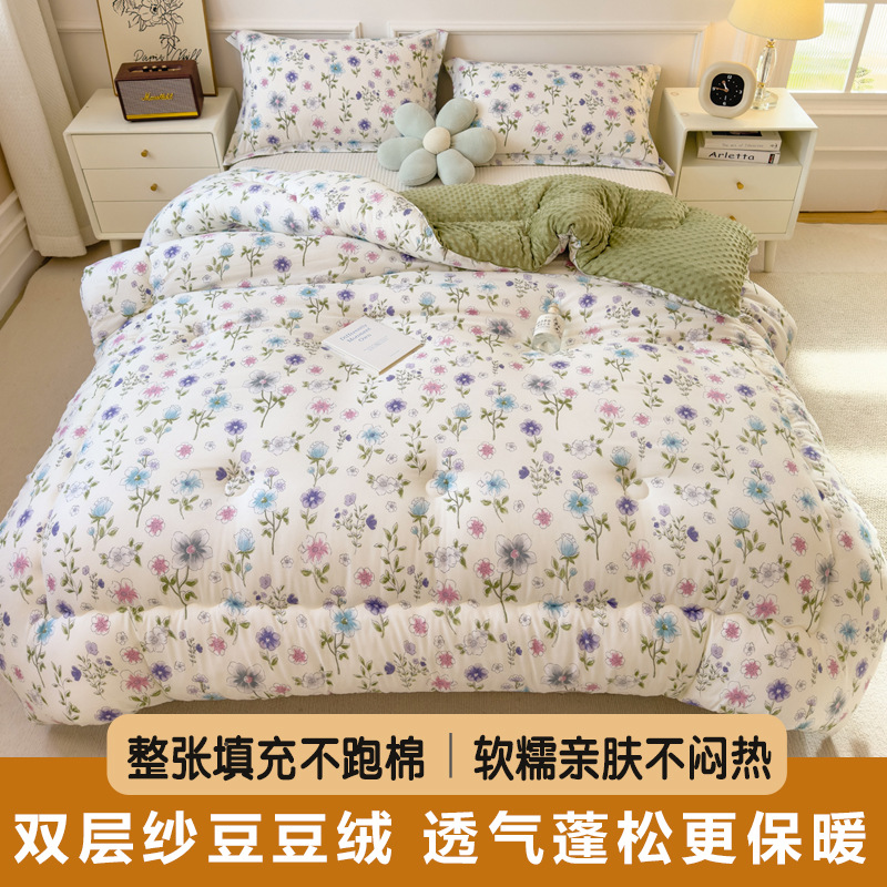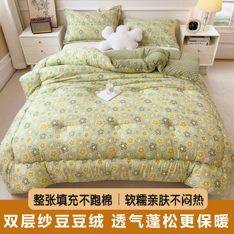 Doudou 벨벳 패딩 겨울 퀼트 코어 빠른 열 따뜻한 퀼트 싱글 학생 기숙사 봄과 가을 이불 두 배