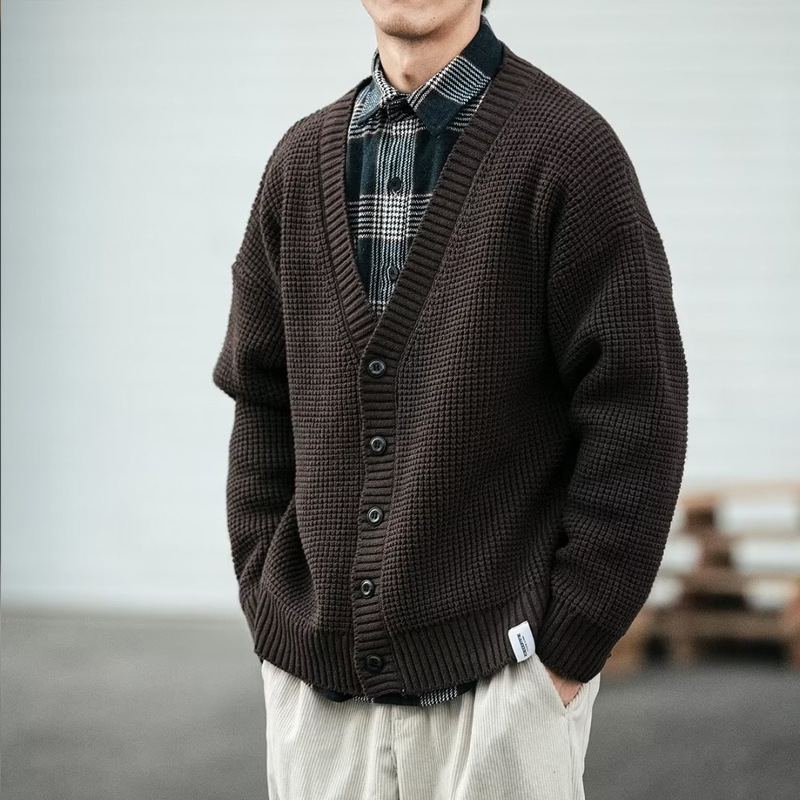 일본 스타일 가을과 겨울 단색 레트로 V 넥 카디건 남자 캐주얼 플러스 사이즈 코트 니트 스웨터 Ins 트렌디 한 외부 스웨터스토어 가기