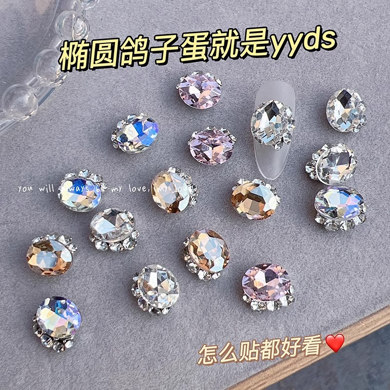 비둘기 계란 완성 네일 아트 더미 다이아몬드 쥬얼리 새로운 사이버 연예인 슈퍼 플래시 타원형 대형 다이아몬드 금속 합금 네일 아트 드릴 쥬얼리스토어 가기