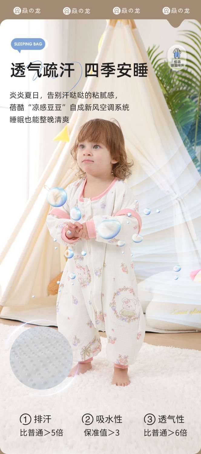 A급 아기 다리 분리형 수면조끼 신생아 봄 가을 얇은 방한 이불 어린이 여름 잠옷 시원한 느낌