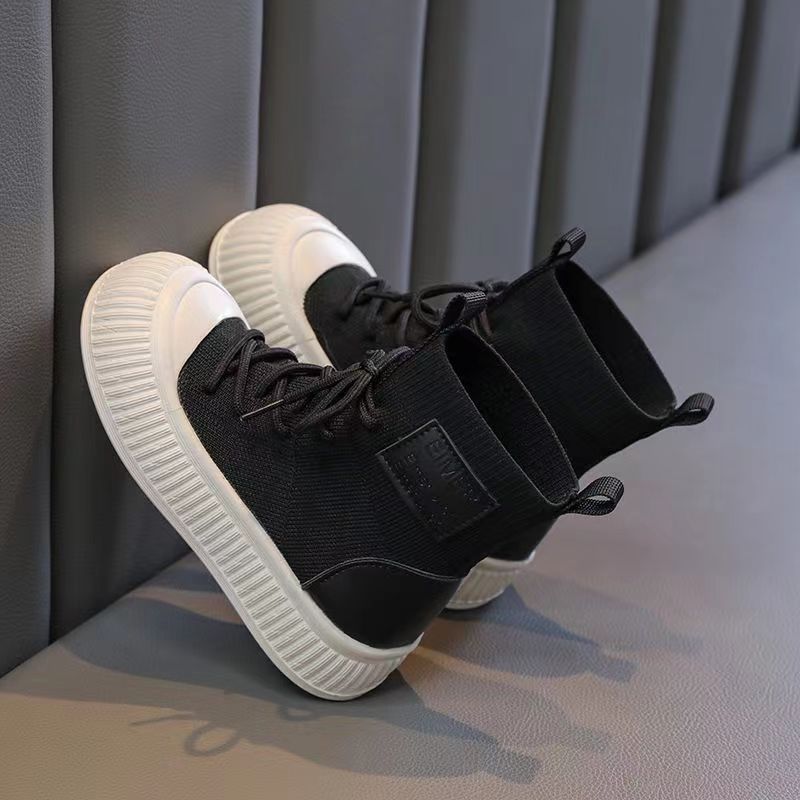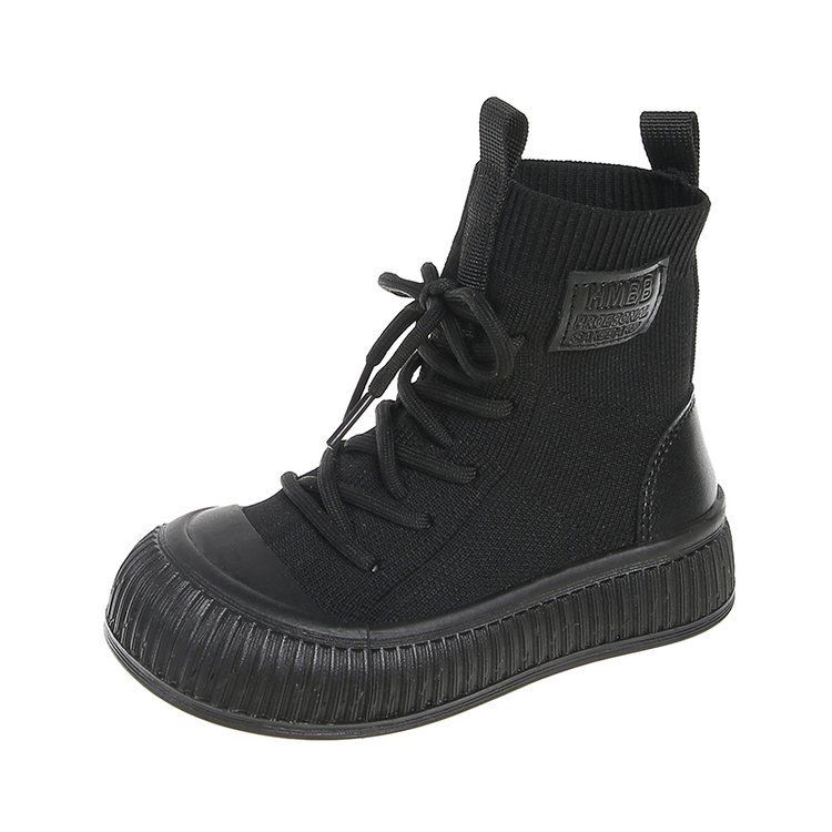 소녀 하이 탑 니트 신발 발목 부츠 2024 가을 새로운 미끄럼 방지 중대형 어린이 유행 캐주얼 신발 올매치 프론트 레이스 업스토어 가기