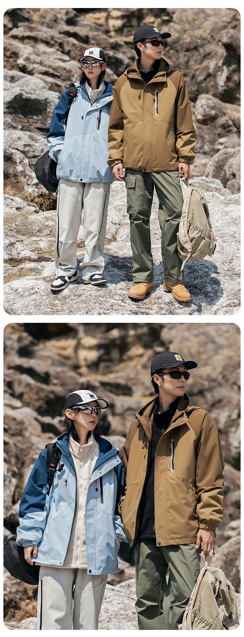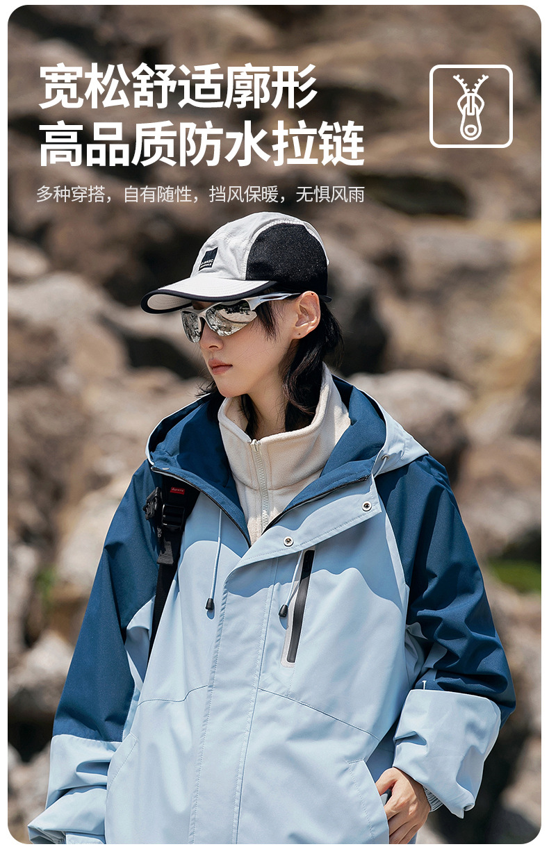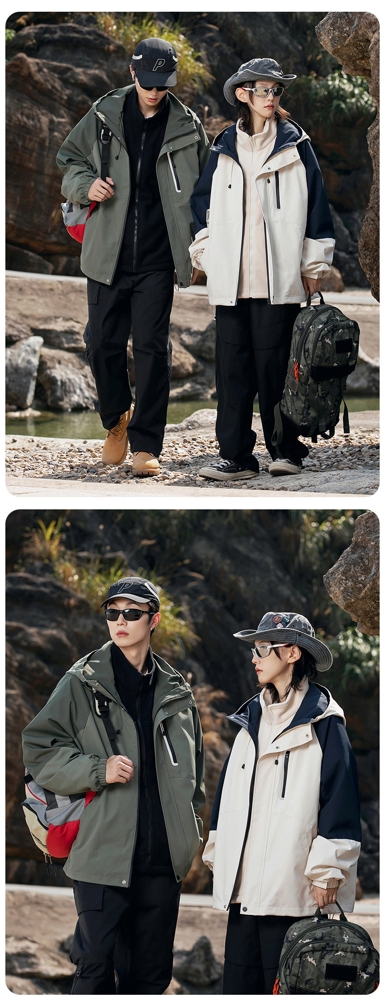 IZEXX 패션 브랜드 가을과 겨울 새로운 3 대 1 충전 재킷 남성 야외 방수 등산 세트 색상 차단 커플 재킷스토어 가기