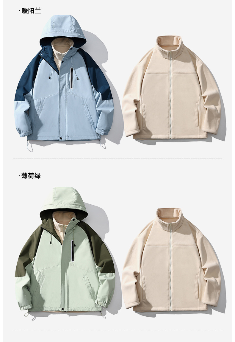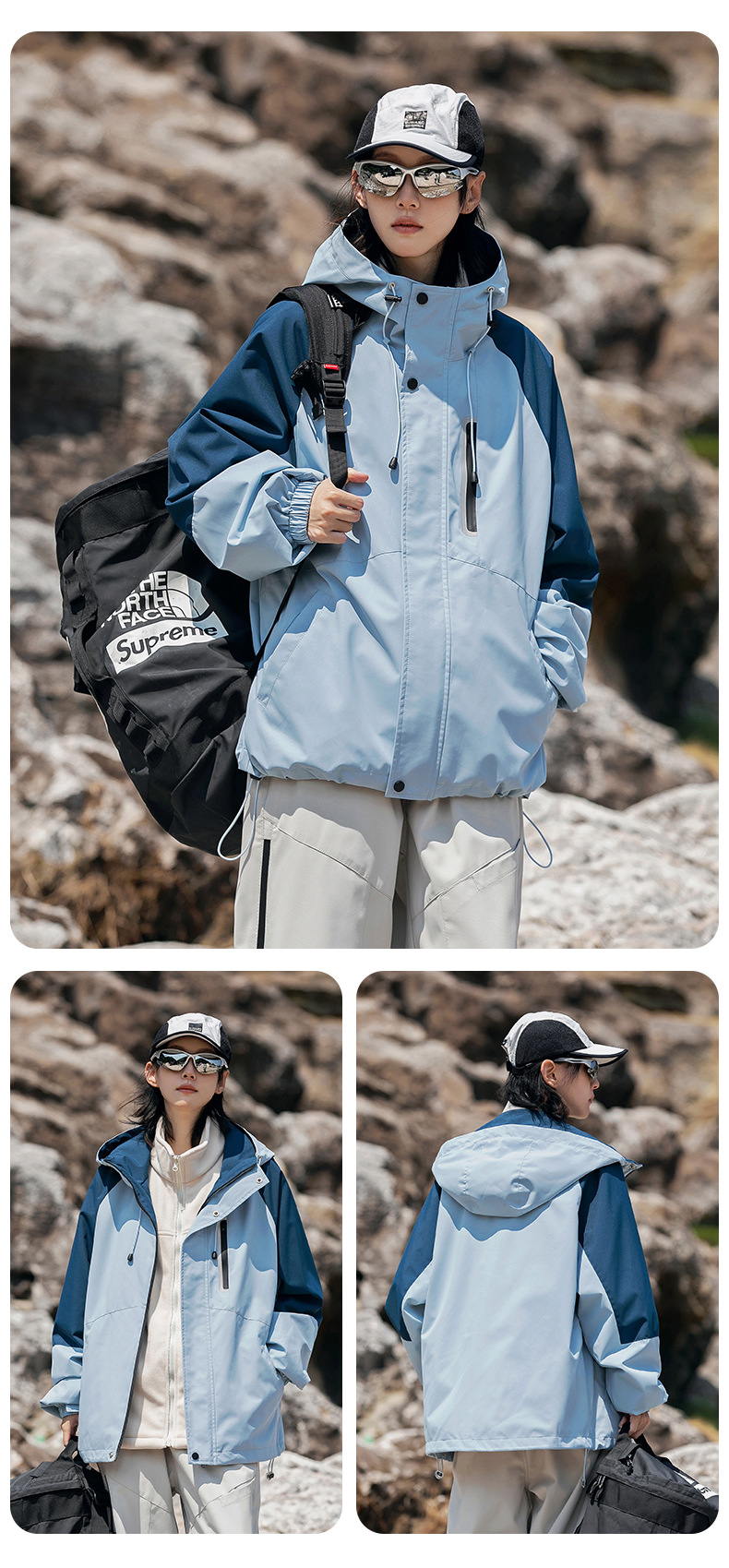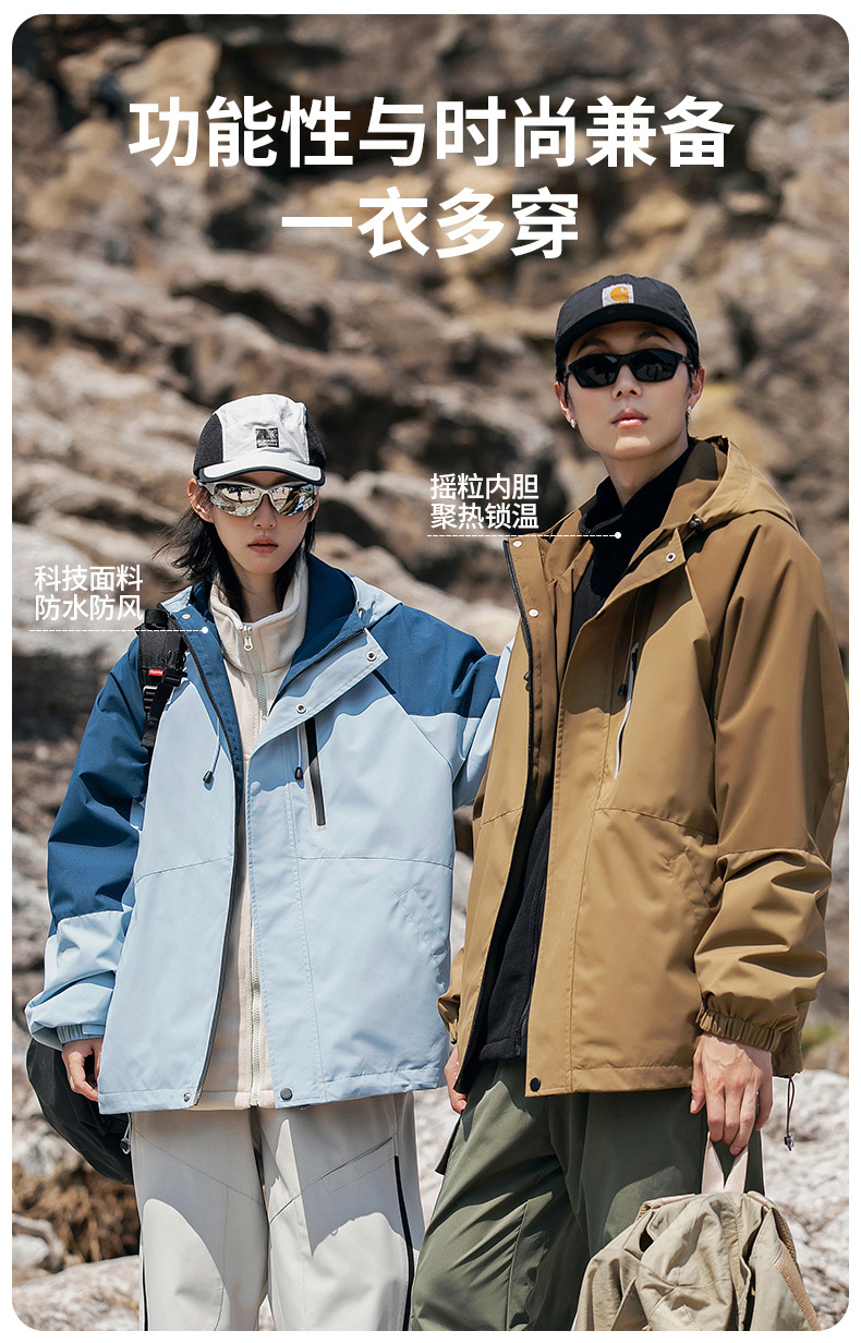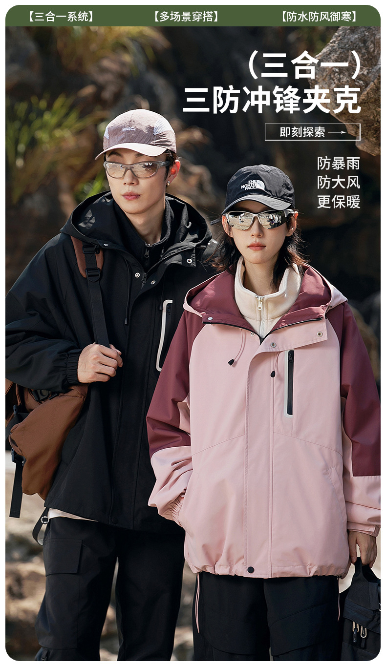 IZEXX 패션 브랜드 가을과 겨울 새로운 3 대 1 충전 재킷 남성 야외 방수 등산 세트 색상 차단 커플 재킷스토어 가기