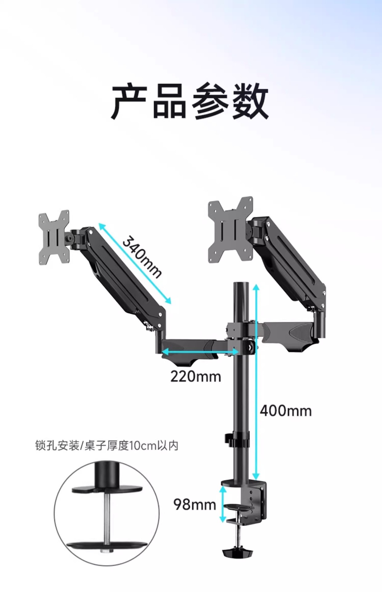 • 기둥 듀얼 스크린, 적재 용량 약 1-10kg, 17-28inch 지원