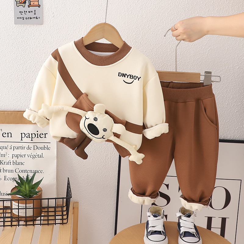 아기 소년 가을/겨울 세트 2024 새로운 어린이 의류 잘 생긴 소년 겨울 기모 두꺼운 운동복 투피스 유행스토어 가기