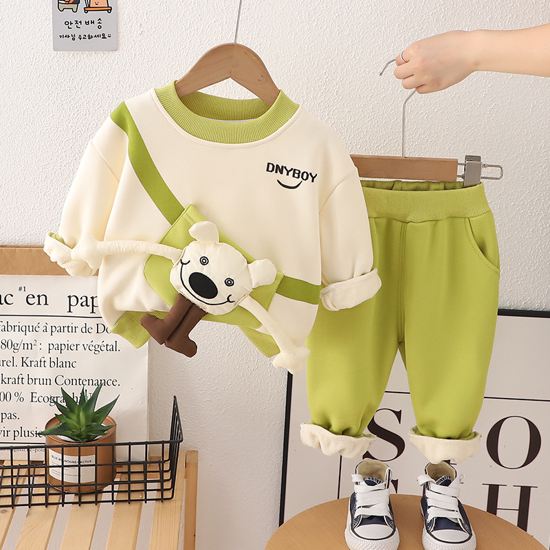 • 녹색 긴 팔 곰 플러스 벨벳 두꺼운 투피스 세트