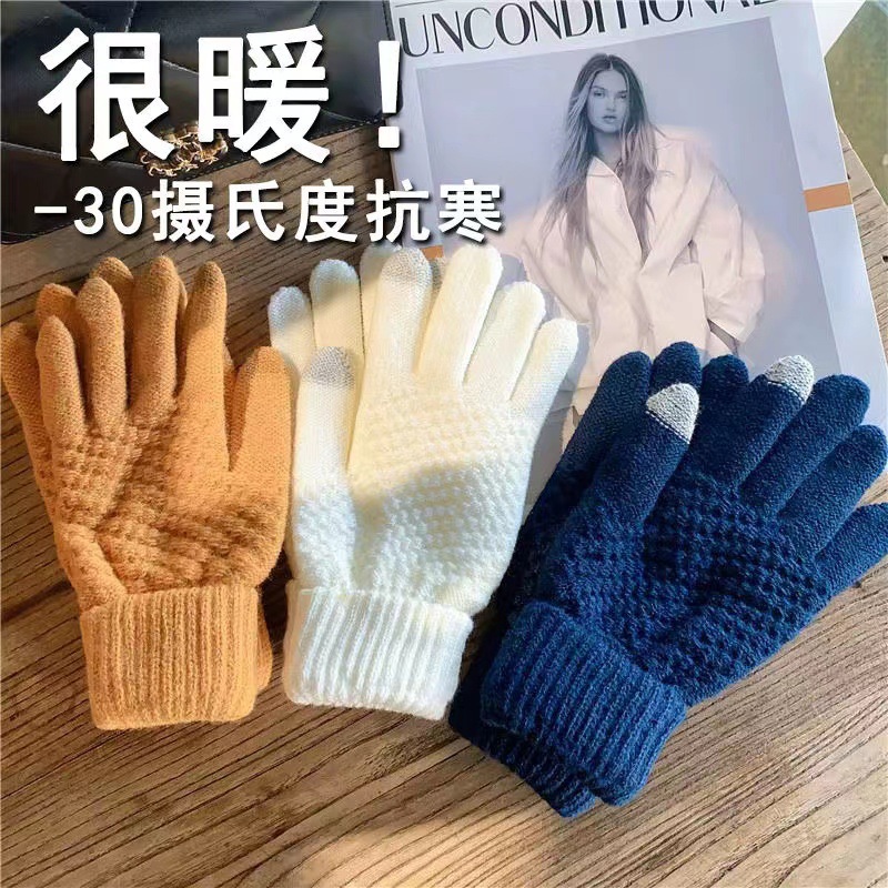 새로운 터치 스크린 장갑 남자와 여자의 가을과 겨울 기모 두꺼운 따뜻한 감기 방지 야외 승마 울 니트 장갑스토어 가기