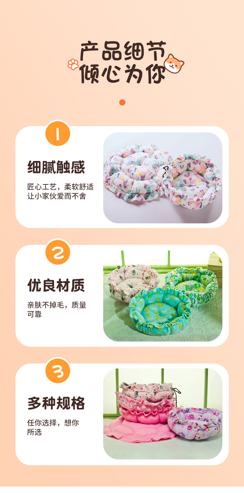 애완동물 둥지 고양이 둥지 강아지 둥지 호박 모양 둥지 끈이 있는 사계절용 애완동물 면 둥지 원형 매트 중형 대형스토어 가기