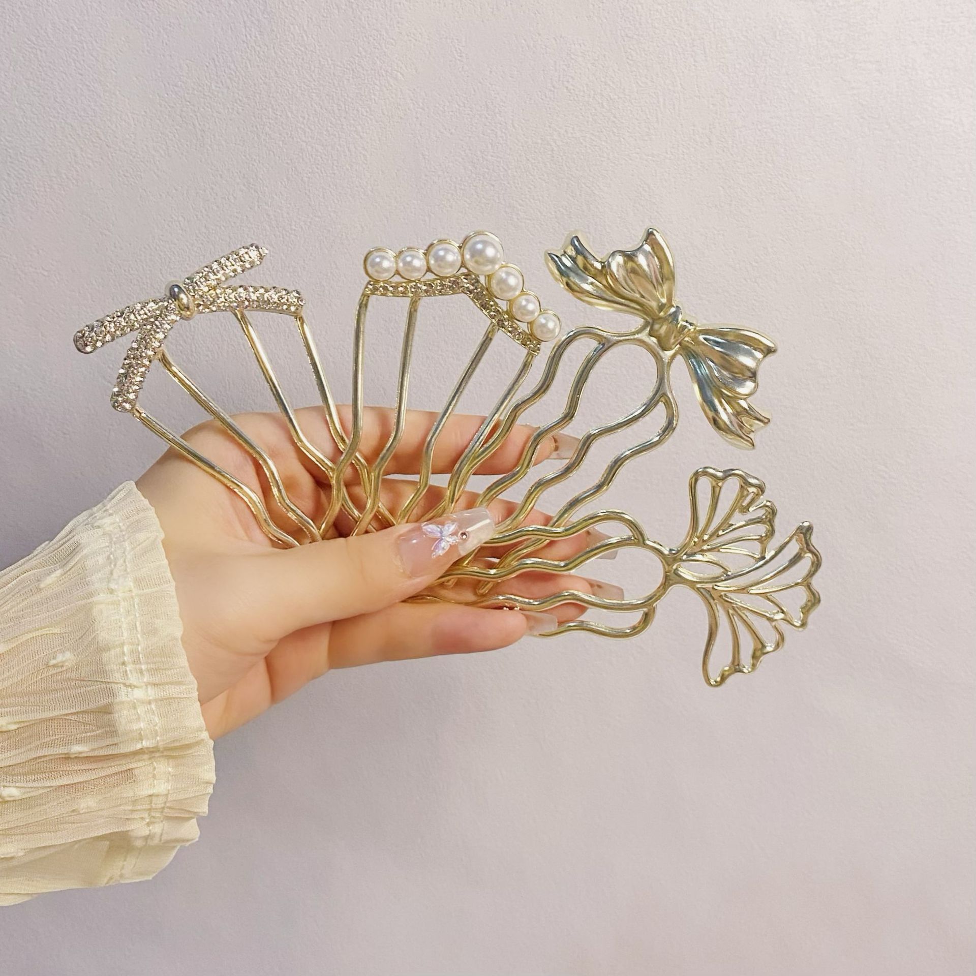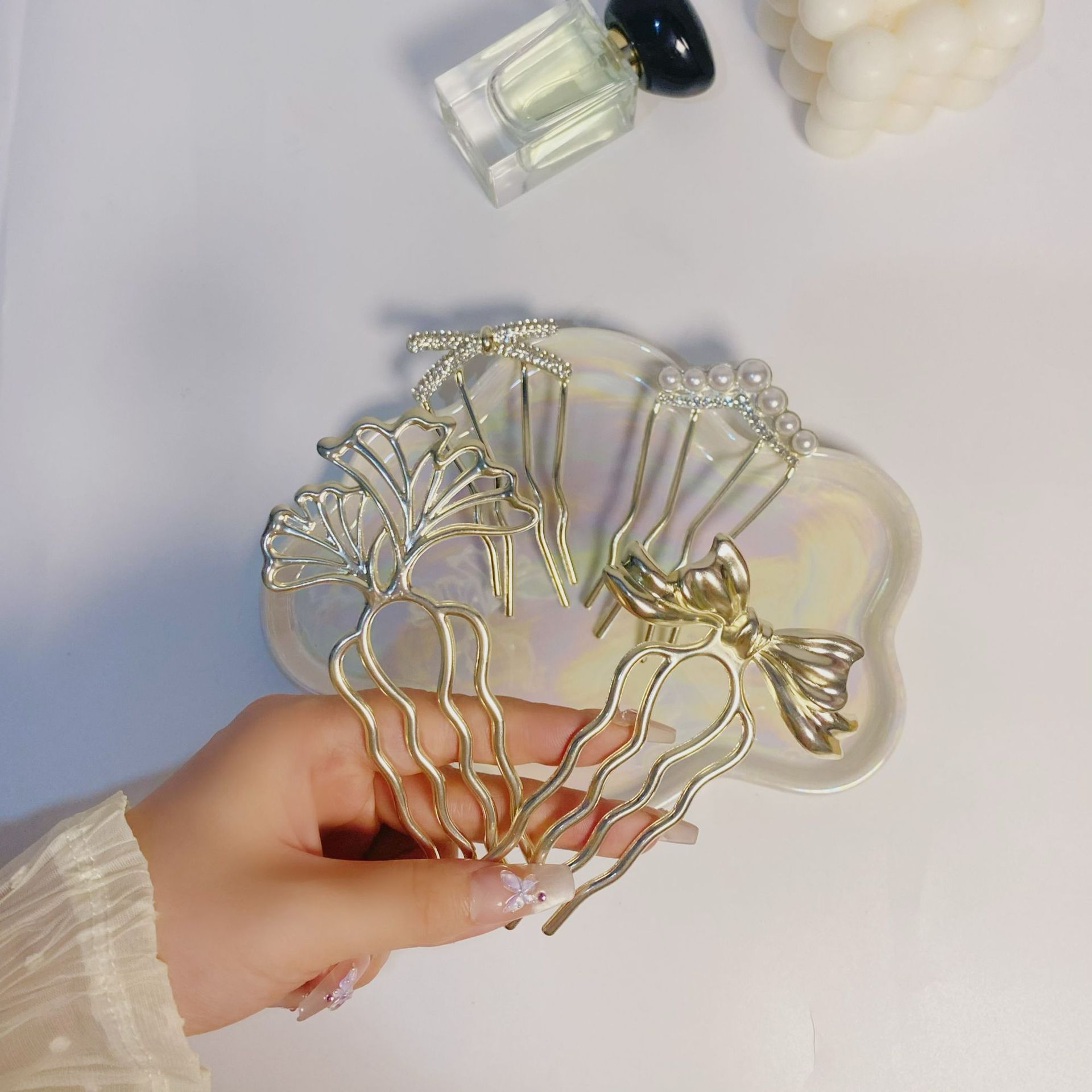 4 개의 치아 진주 헤어핀 새로운 중국 스타일 하이 엔드 우아한 볼 헤드 헤어핀 헤어 액세서리 Carb 헤어핀 디스크 헤어 아티팩트