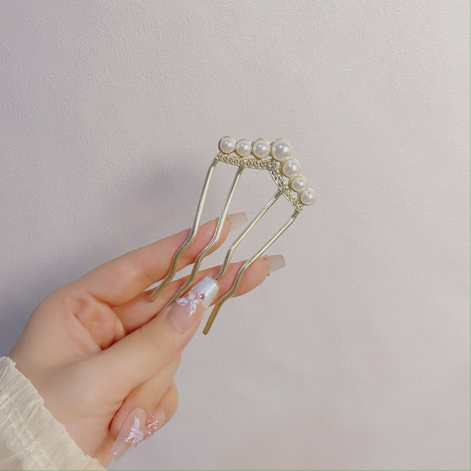 4 개의 치아 진주 헤어핀 새로운 중국 스타일 하이 엔드 우아한 볼 헤드 헤어핀 헤어 액세서리 Carb 헤어핀 디스크 헤어 아티팩트스토어 가기