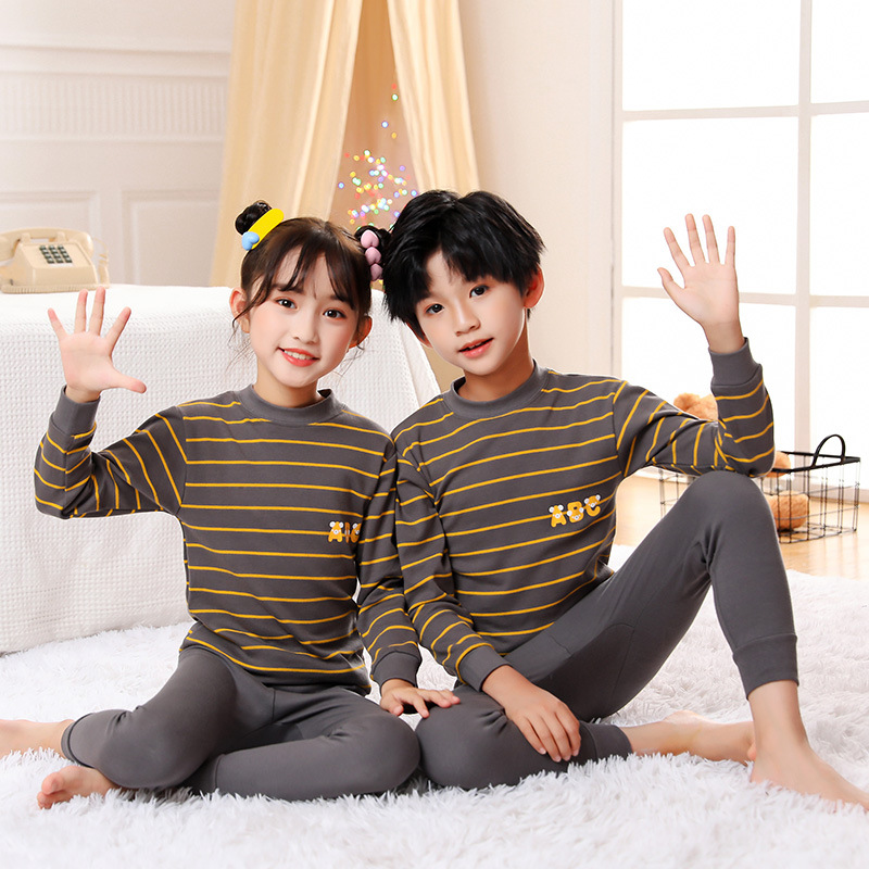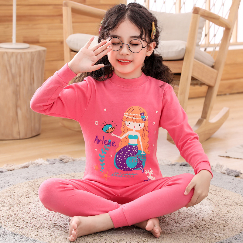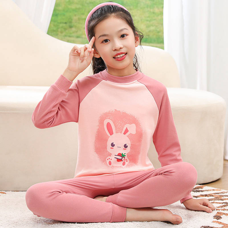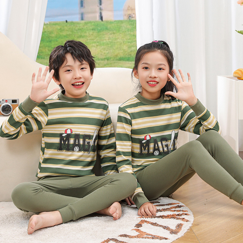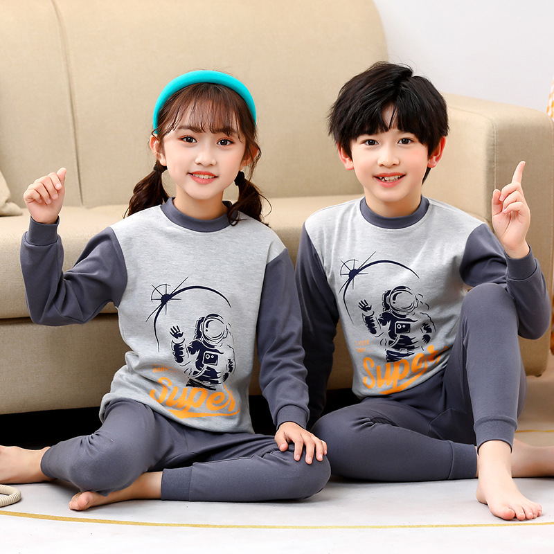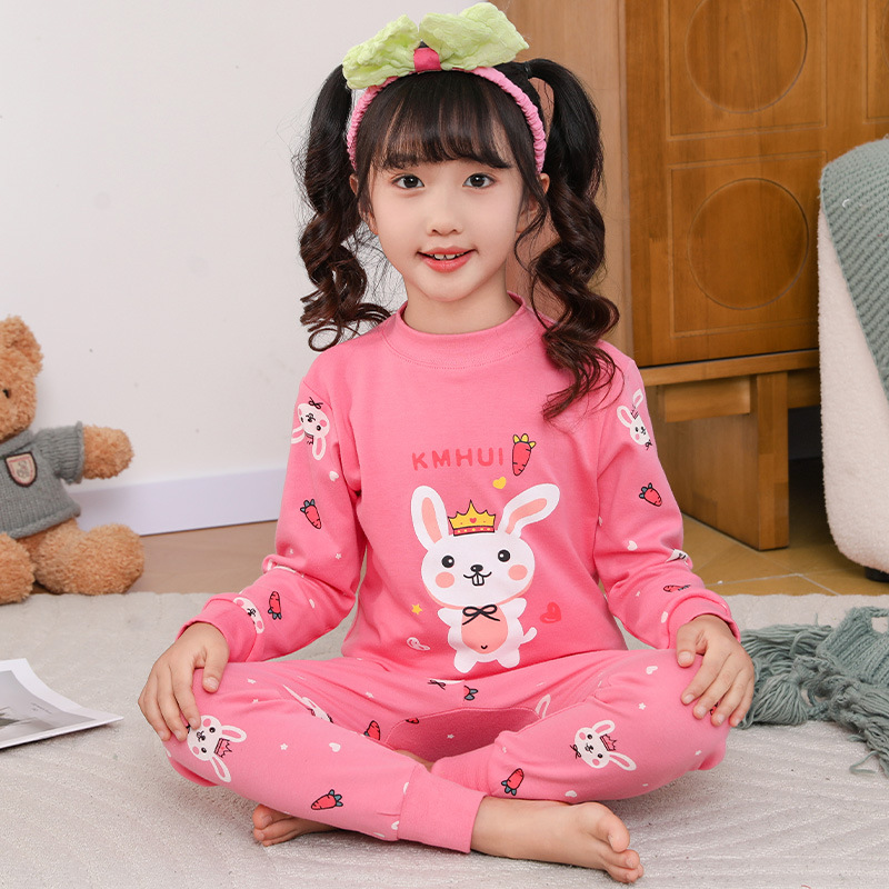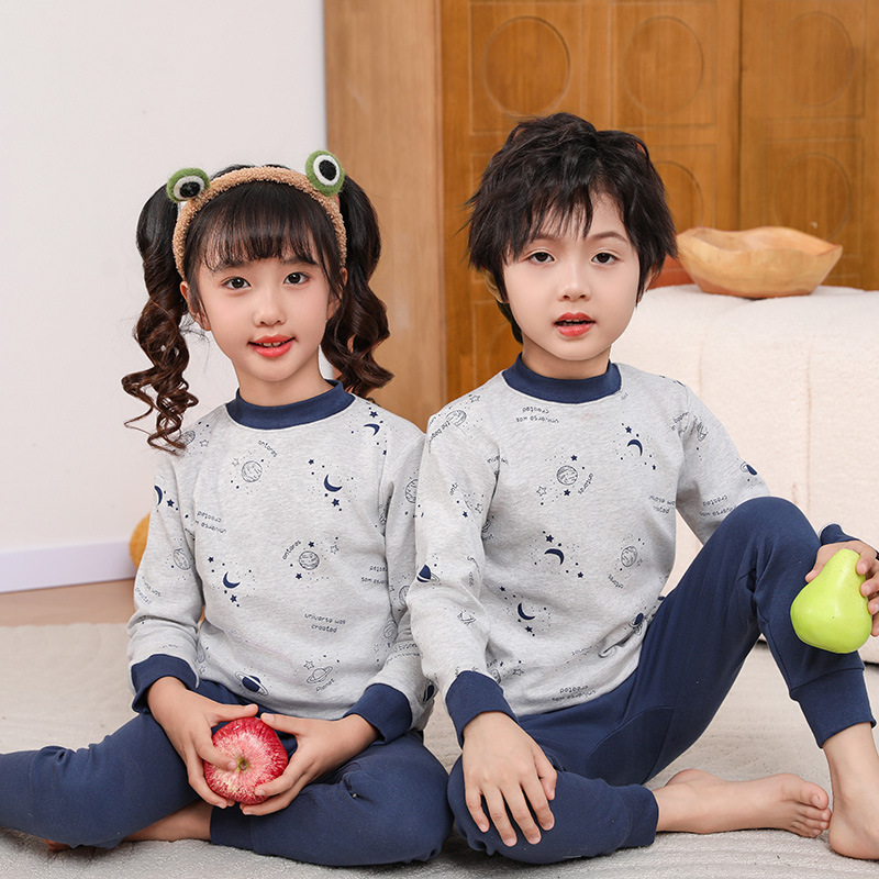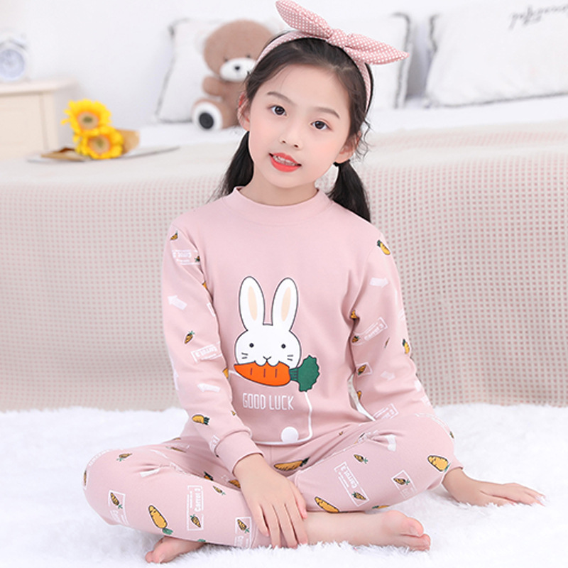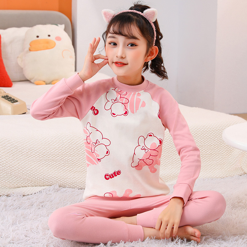 어린이 중간 칼라 순면 가을 옷 긴 바지 속옷 세트 젊고 중간 소녀 봄 및 가을 긴 소매 잠옷 소년 홈 옷