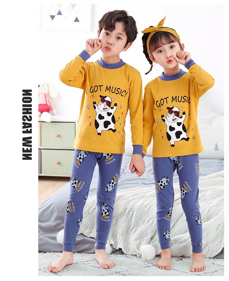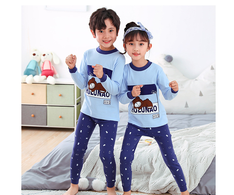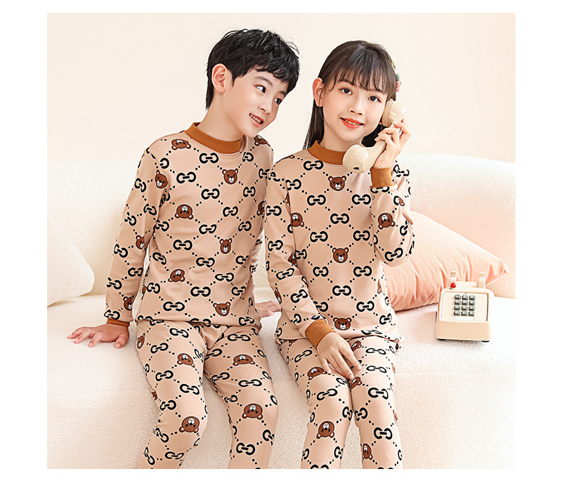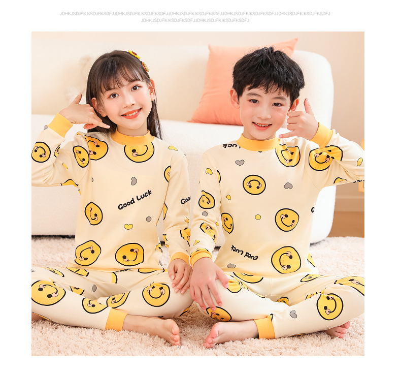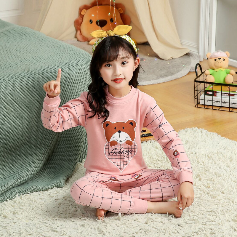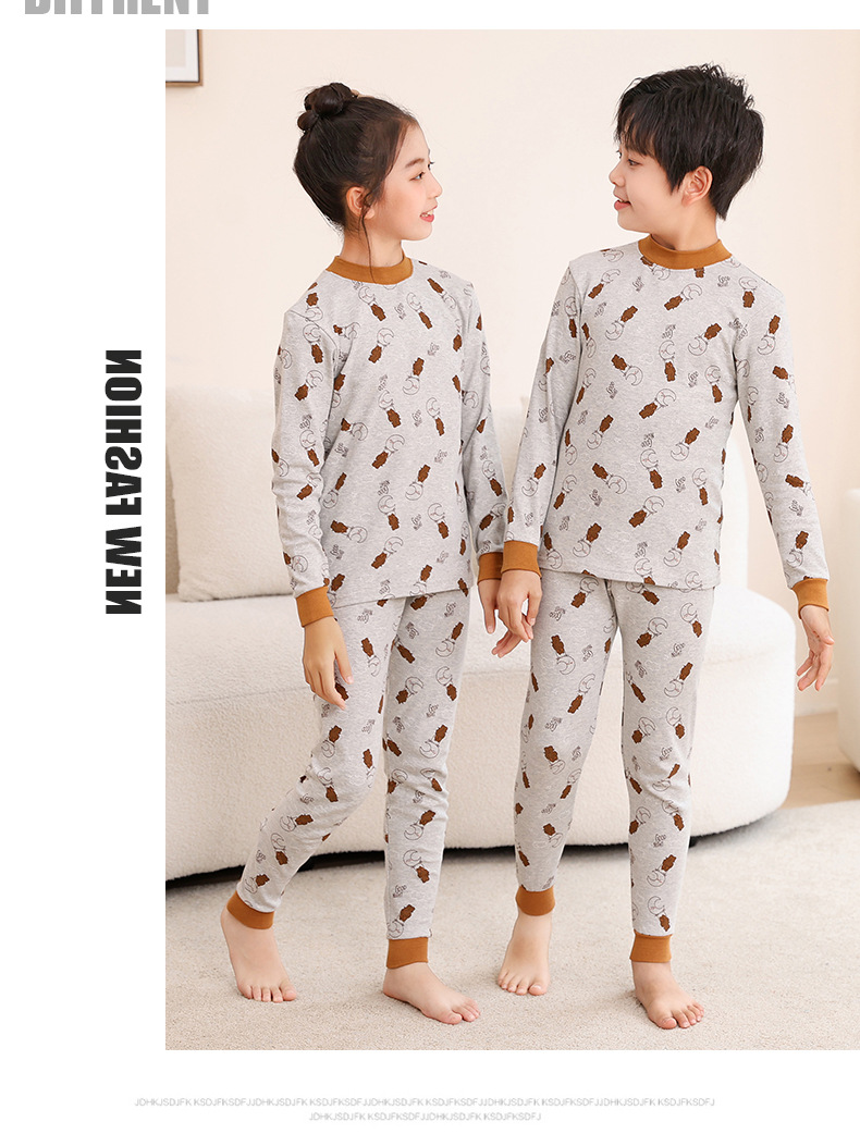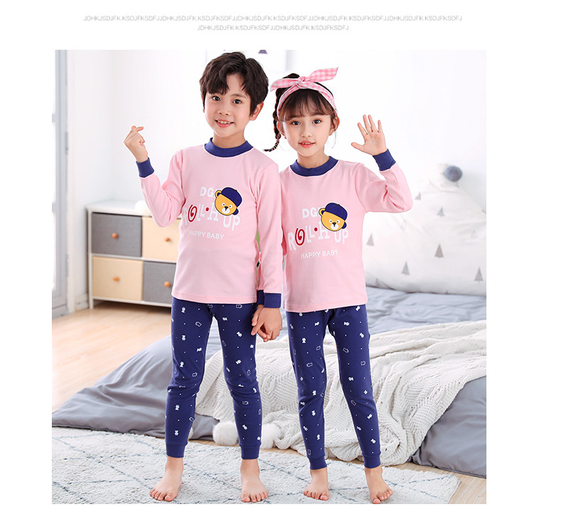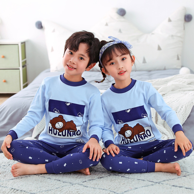 어린이 중간 칼라 순면 가을 옷 긴 바지 속옷 세트 젊고 중간 소녀 봄 및 가을 긴 소매 잠옷 소년 홈 옷스토어 가기