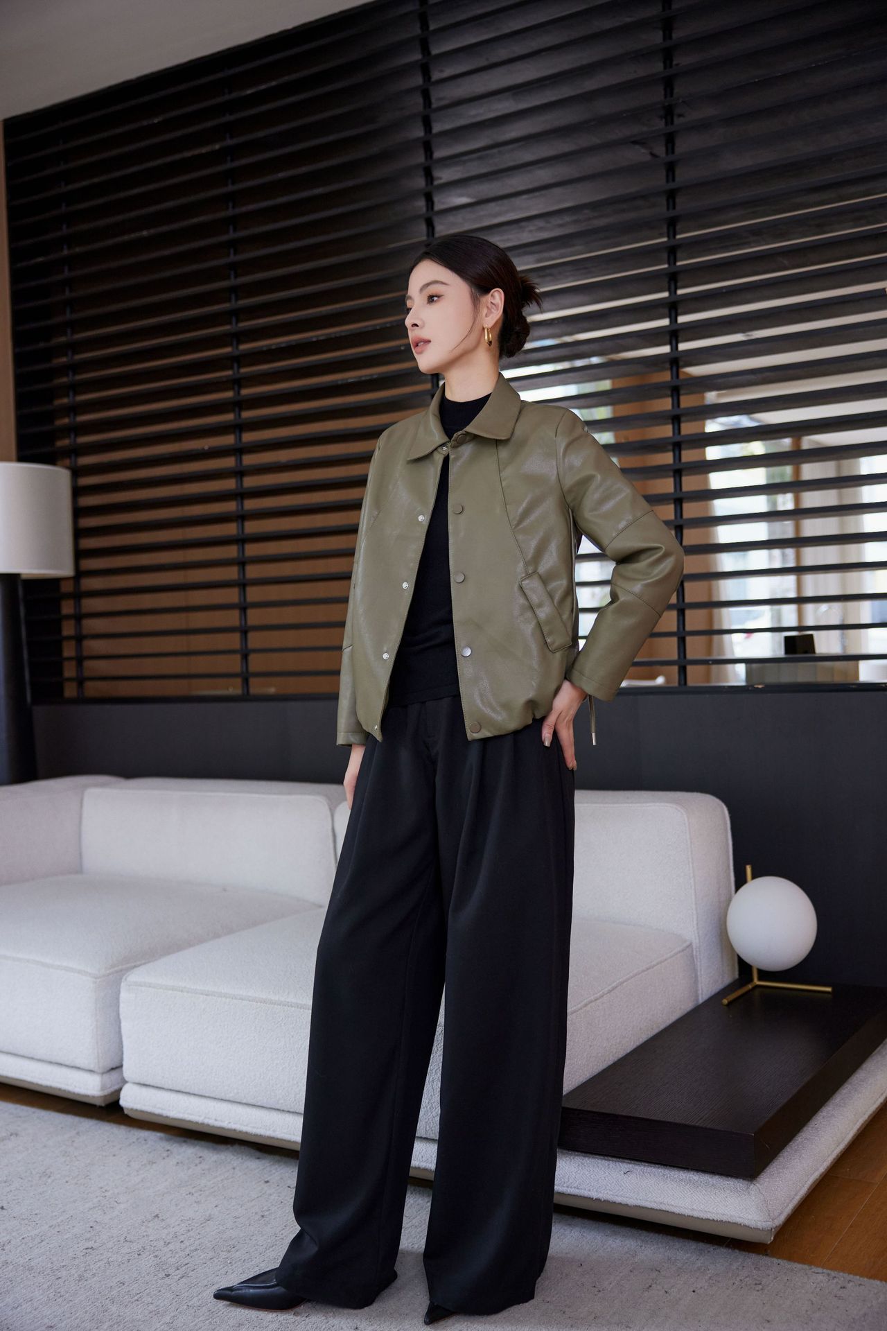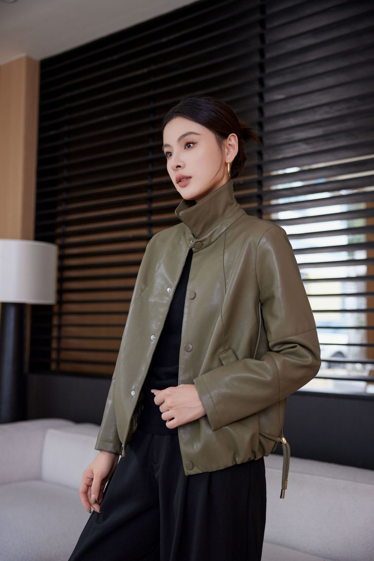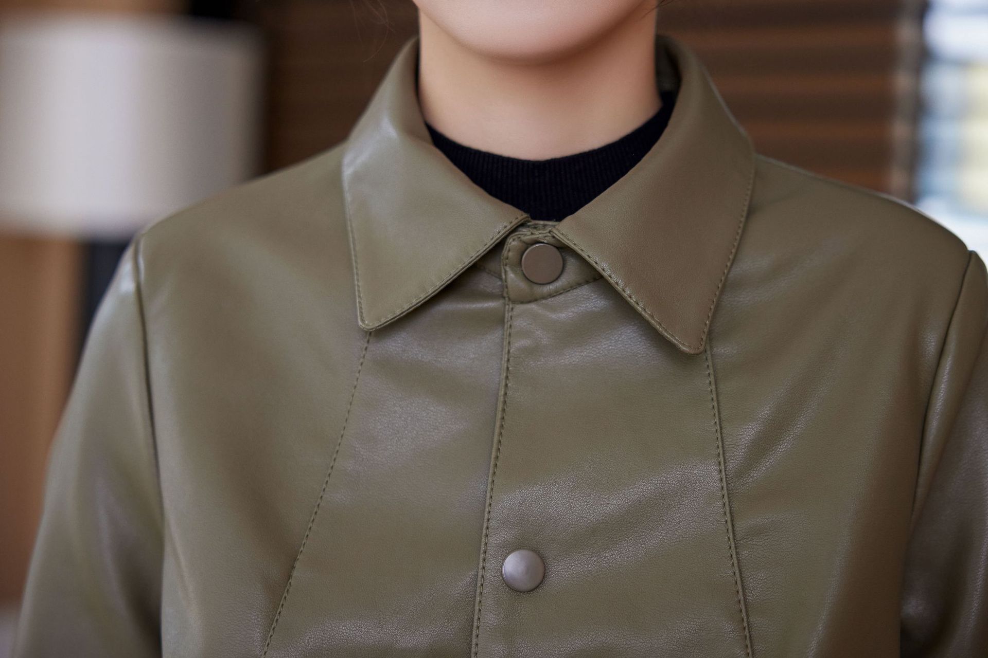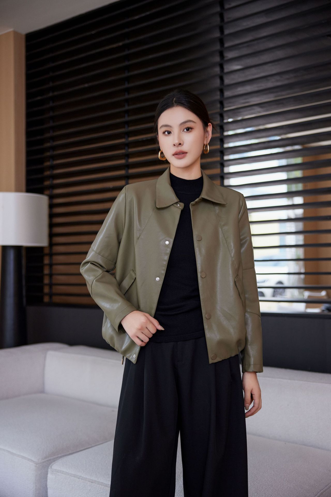 짧은 가죽 자켓 여성의 2024 봄 새로운 패션 우아한 슬림 룩 쁘띠 올 매치 가죽 자켓 탑스토어 가기
