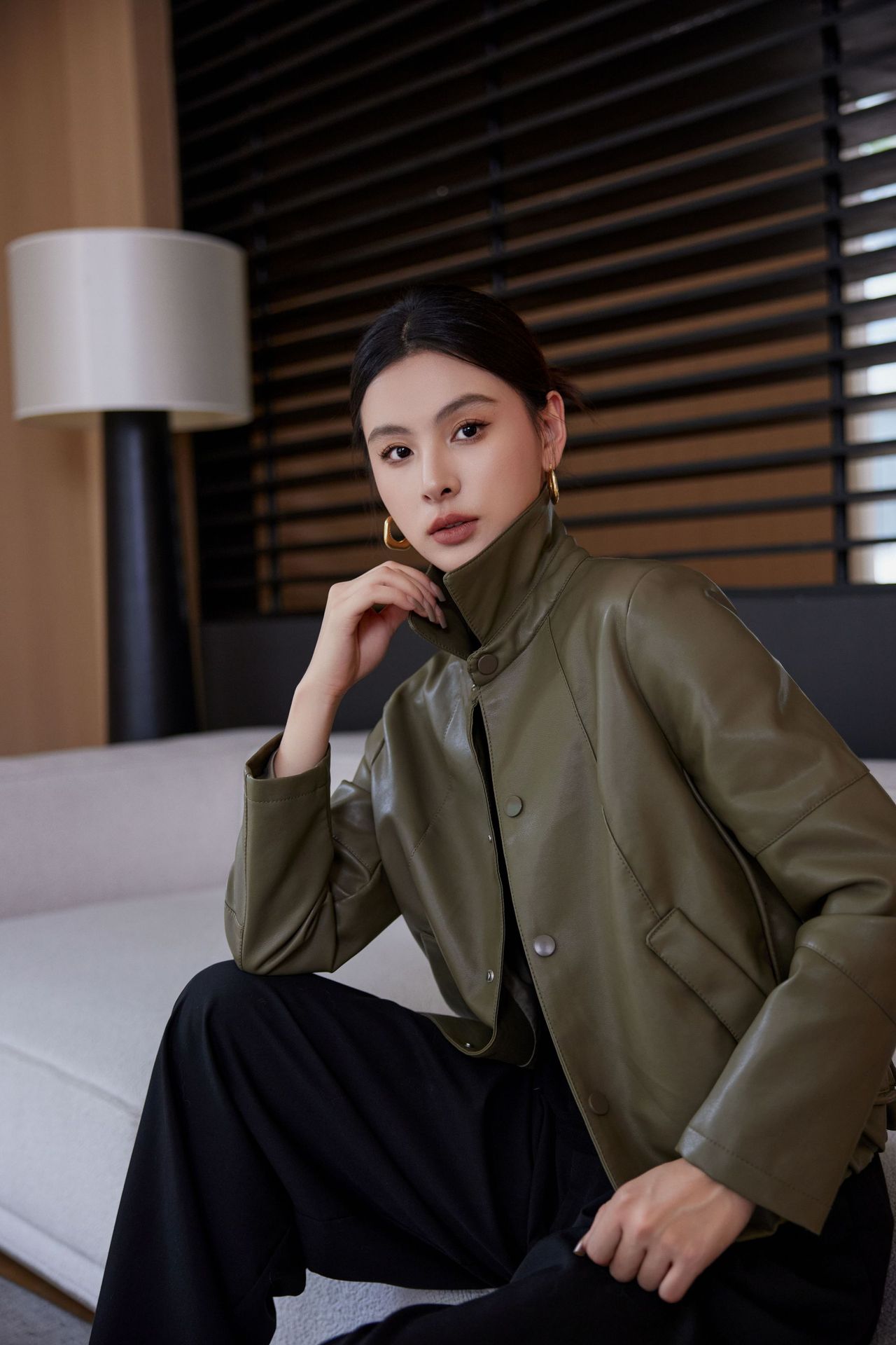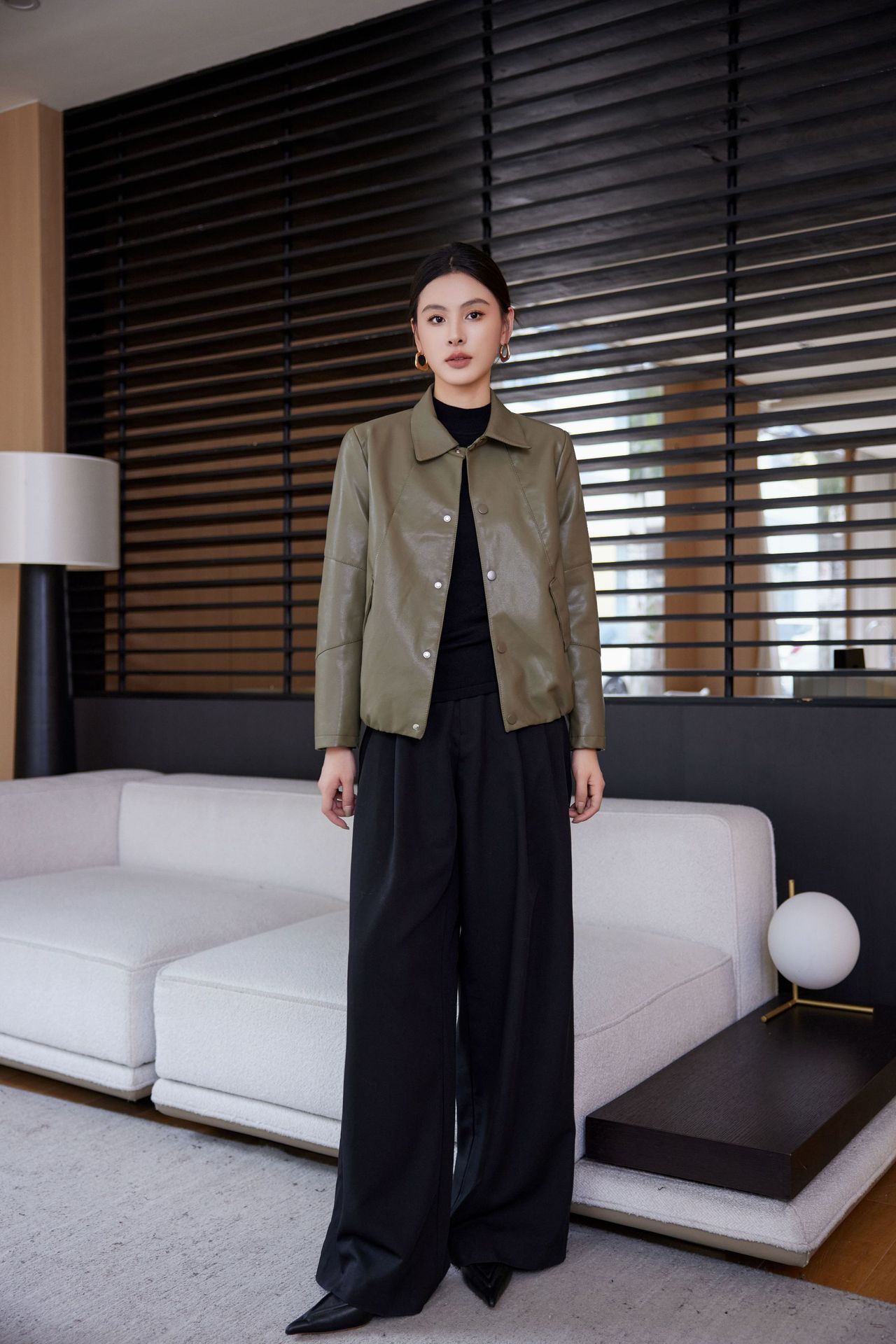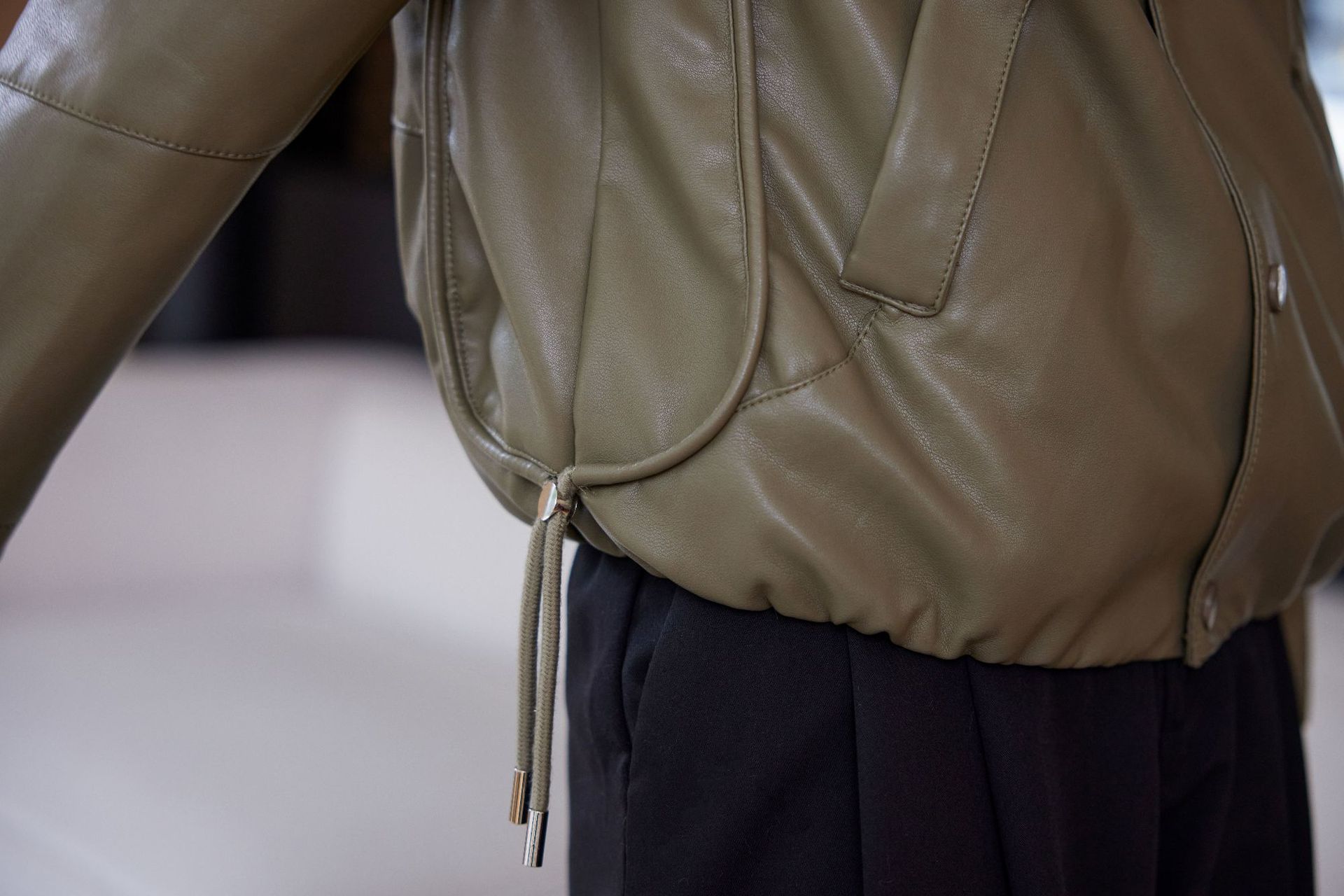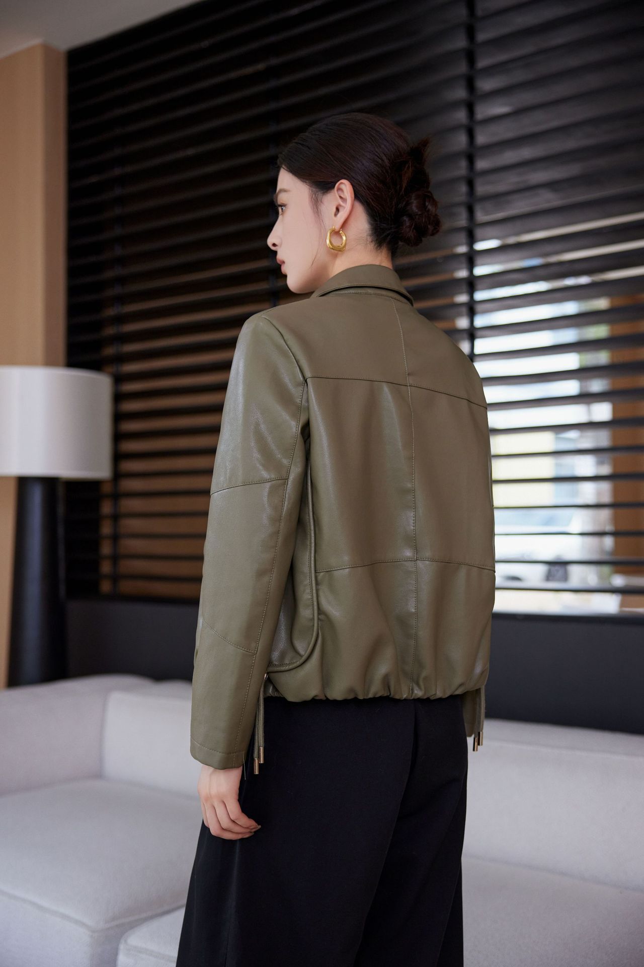 짧은 가죽 자켓 여성의 2024 봄 새로운 패션 우아한 슬림 룩 쁘띠 올 매치 가죽 자켓 탑스토어 가기