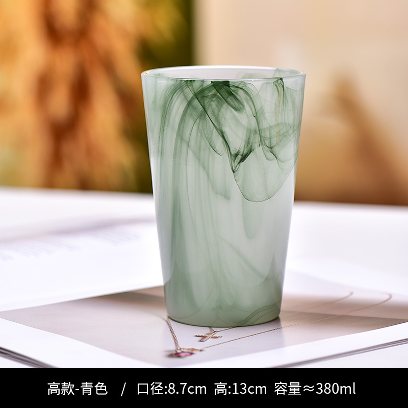 가정용 유리 잉크 패턴 유리 컵 창조적 인 골동품 호텔 양치질 컵 두꺼운 투명 컵 도매스토어 가기