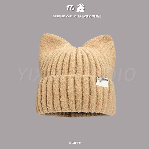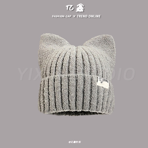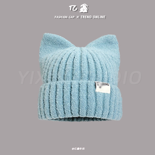 겨울 신상 일본식 고양이 귀 모양 모직 모자 한국 스타일 패션 귀여운 캐주얼 따뜻한 다용도 니트 모자 여성용스토어 가기