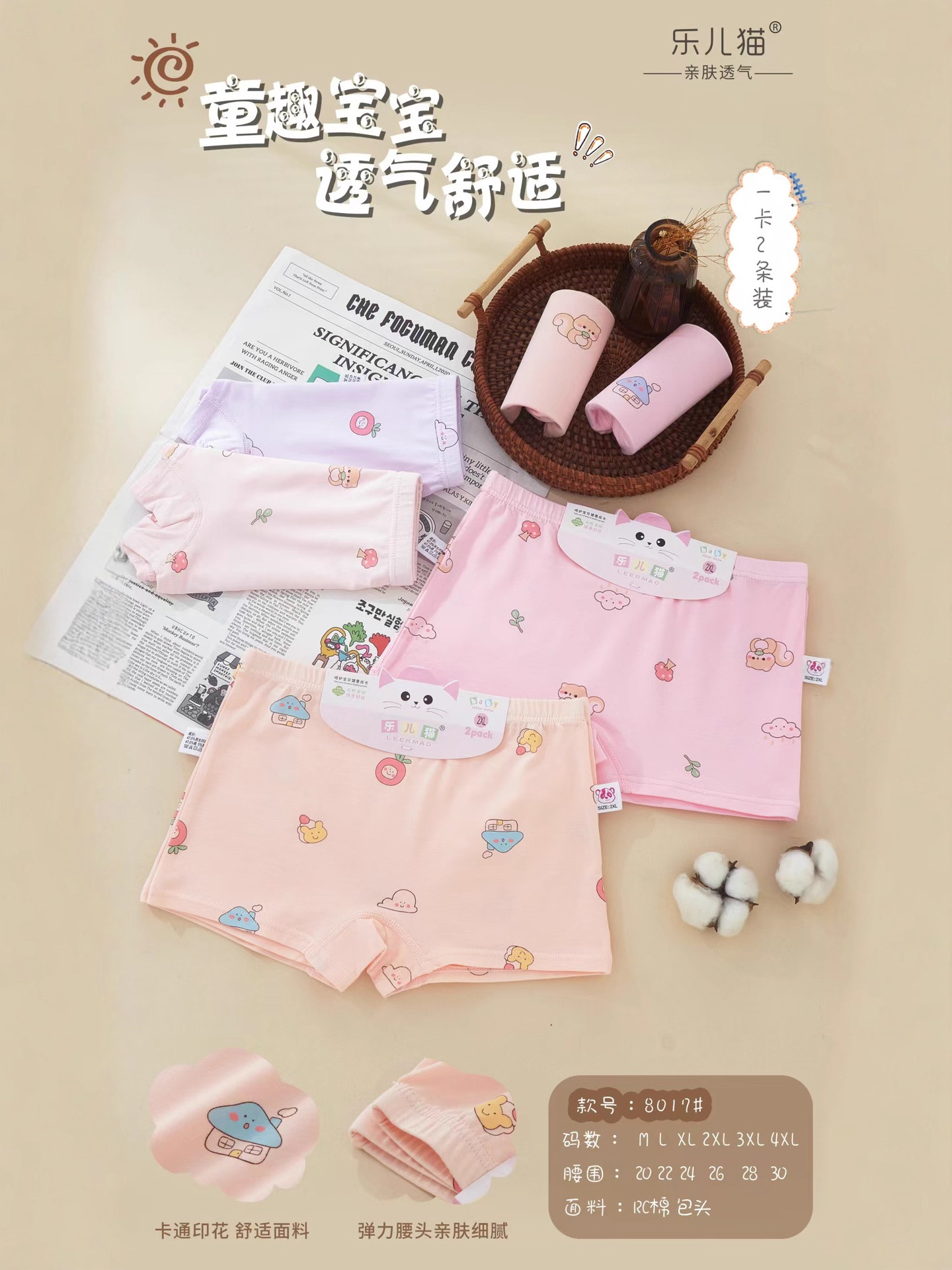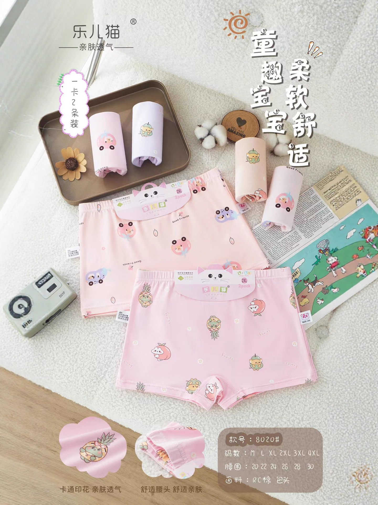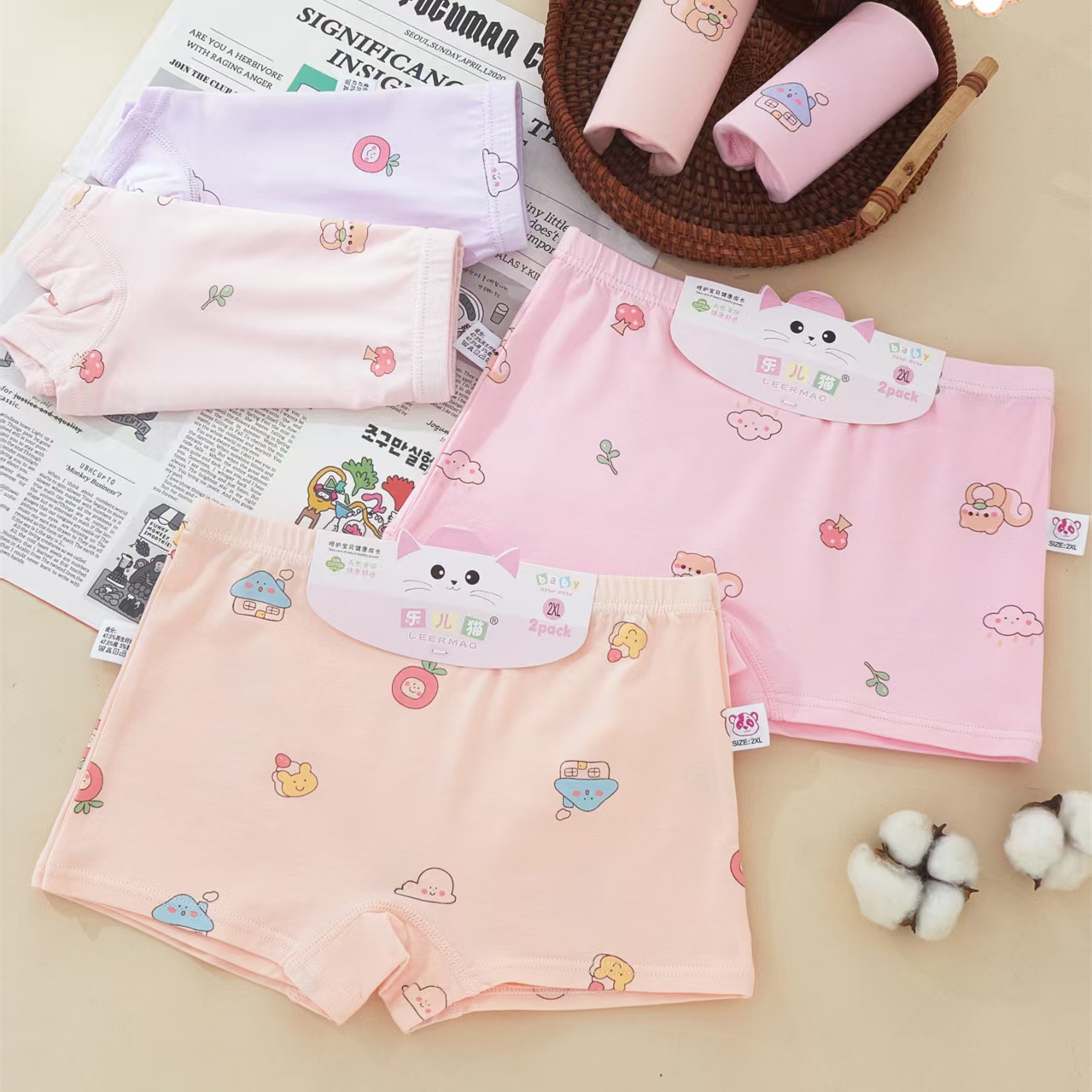 Leer Cat Girl Boxer Briefs RC 면 편안한 통기성 만화 인쇄 된 피부 친화적 인 복서 반바지 면화 카트 보드스토어 가기