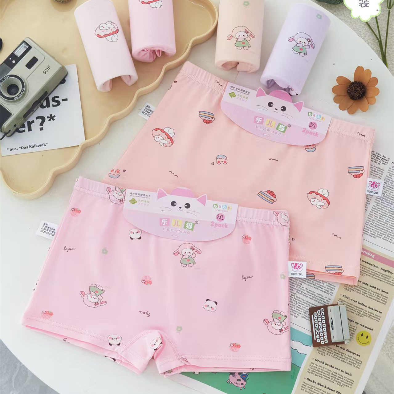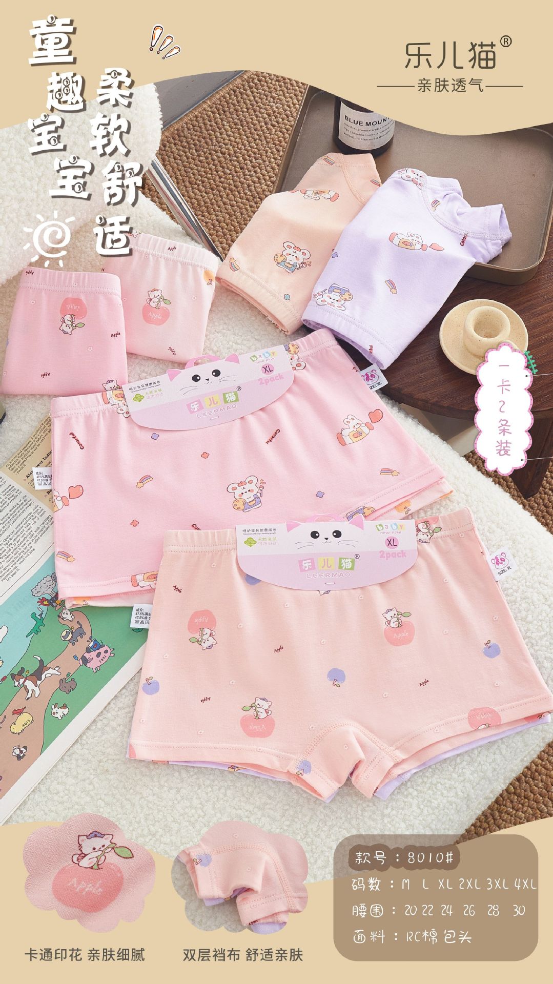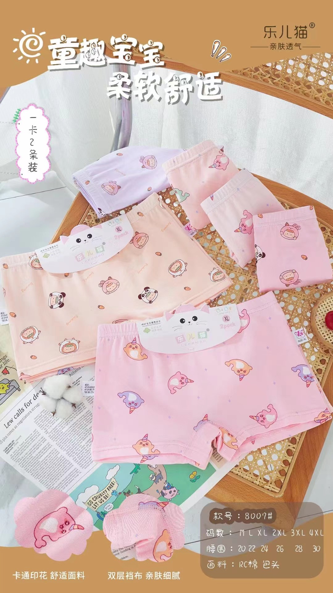 Leer Cat Girl Boxer Briefs RC 면 편안한 통기성 만화 인쇄 된 피부 친화적 인 복서 반바지 면화 카트 보드스토어 가기