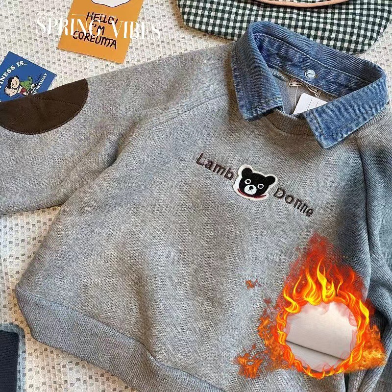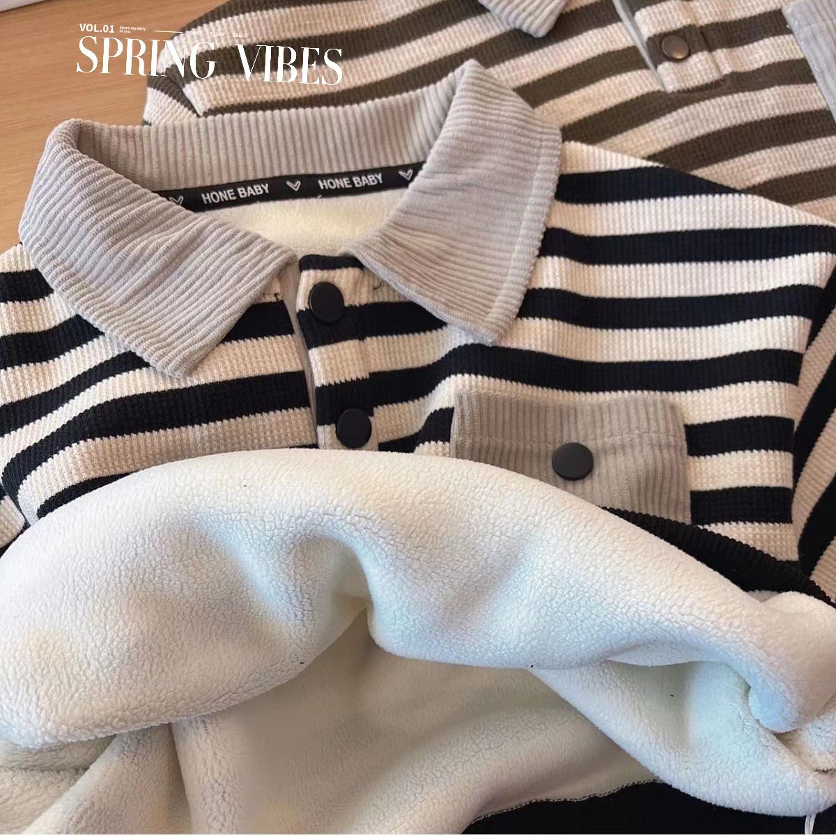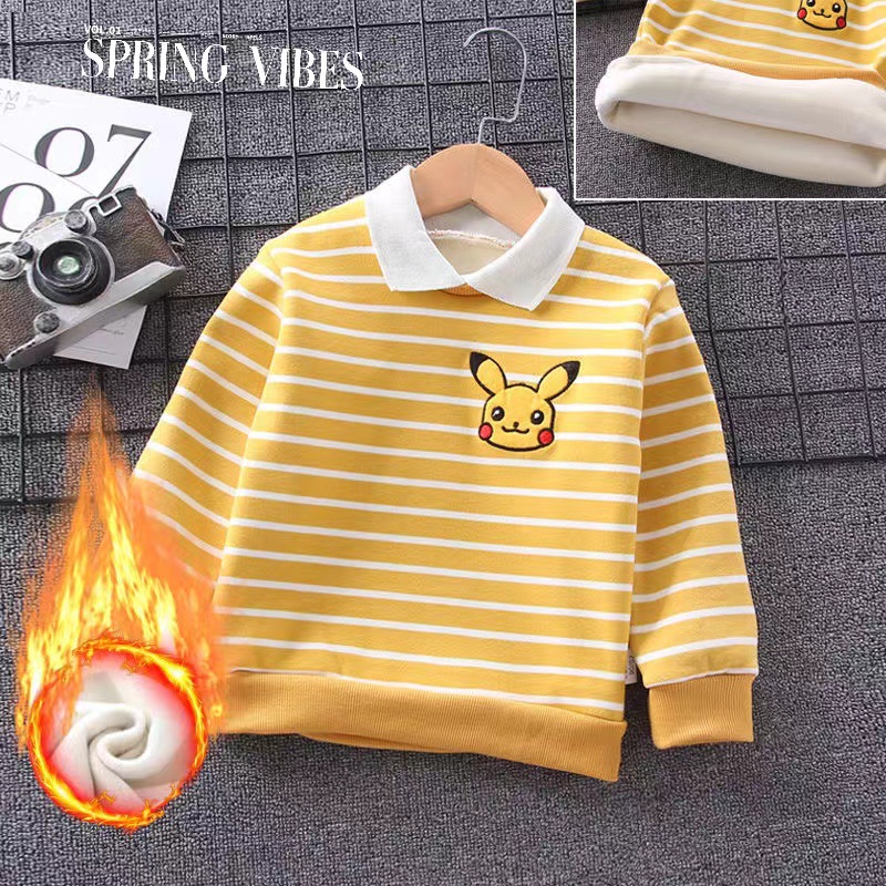 소년 겨울 기모 스웨터 2024 새로운 아기 긴팔 POLO 셔츠 한국 줄무늬 어린이 원피스 벨벳.스토어 가기