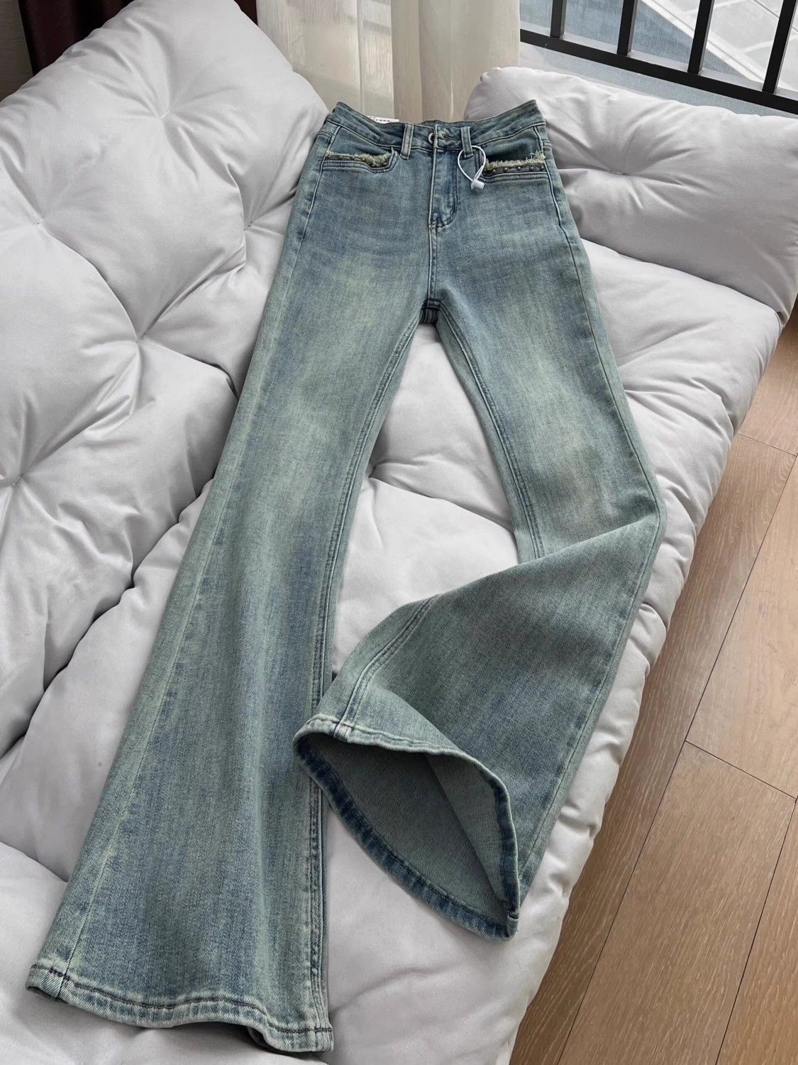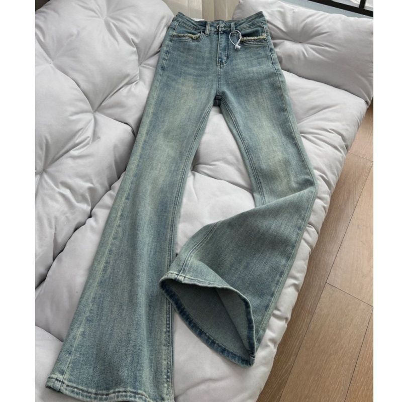 레트로 부츠컷 청바지 여성용 2025년 가을 신상품 작은 키에도 잘 어울리는 하이웨이스트 슬림핏 다용도 플레어 롱 팬츠스토어 가기
